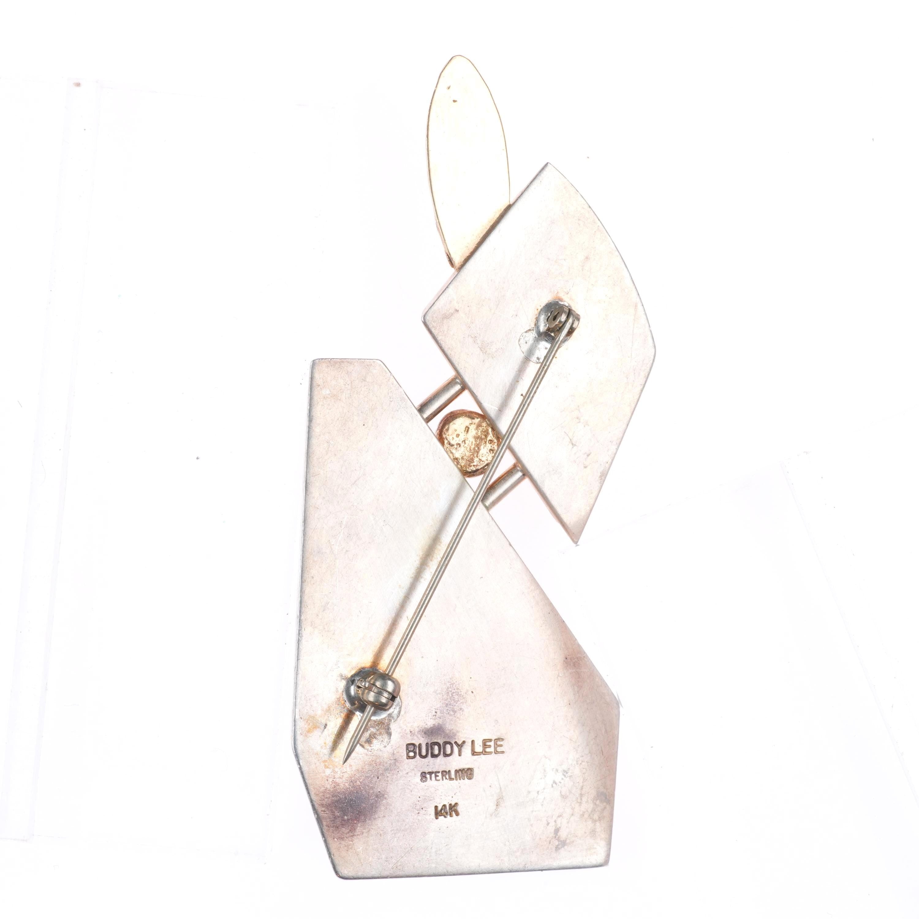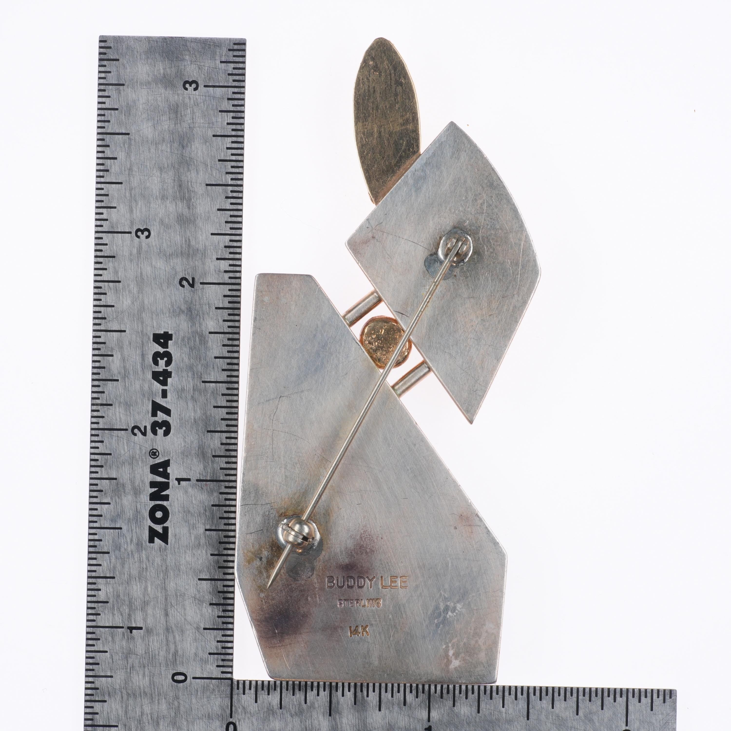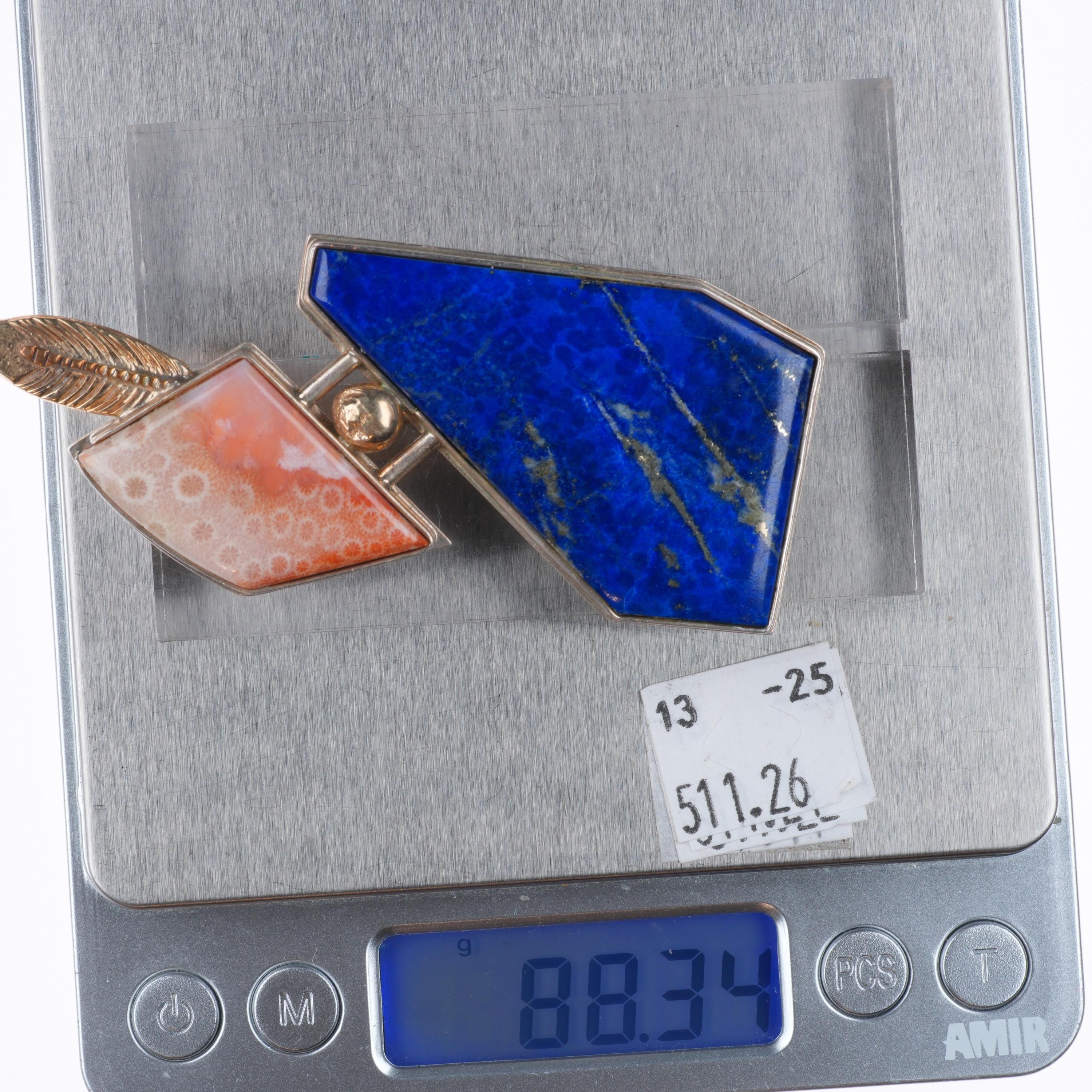 Buddy Lee Mossman Choctaw 14k gold, sterling silver lapis, fossilized coral pin. Solid 14k gold feather and center accent bead, solid sterling silver tested and guaranteed with weight and measurements in the pictures. No issues, Circa last quarter of the 20th century. 37 grams