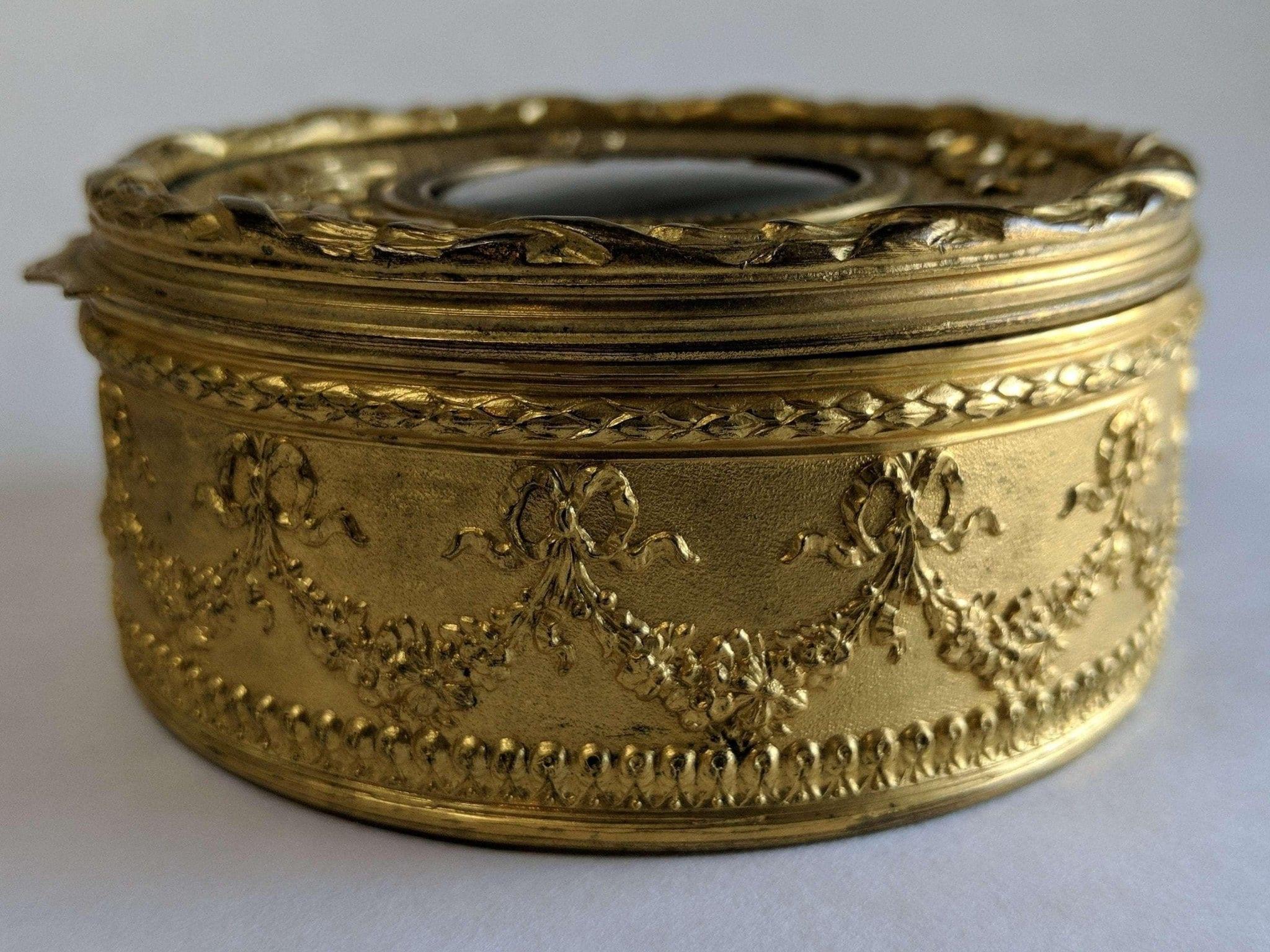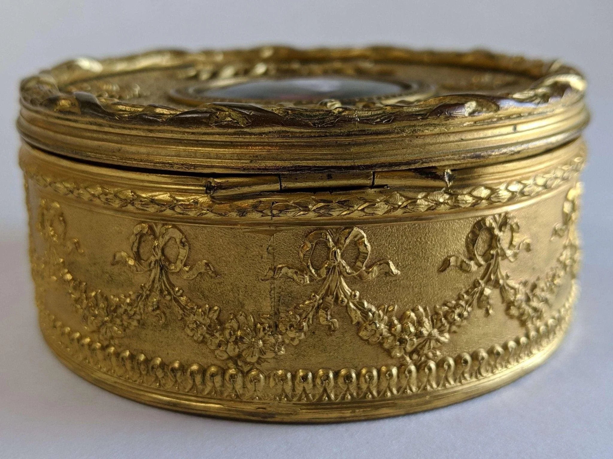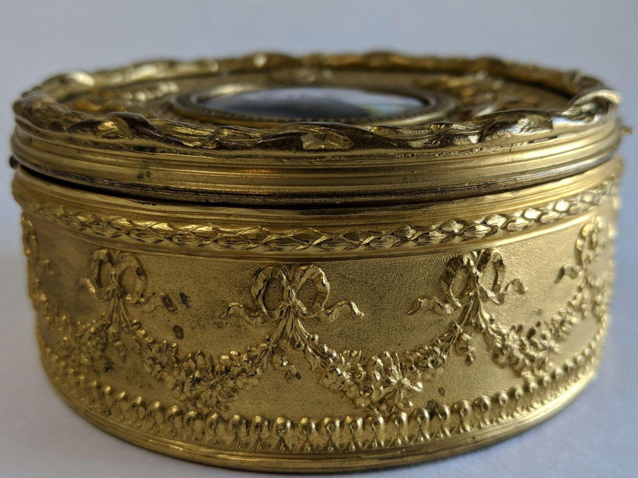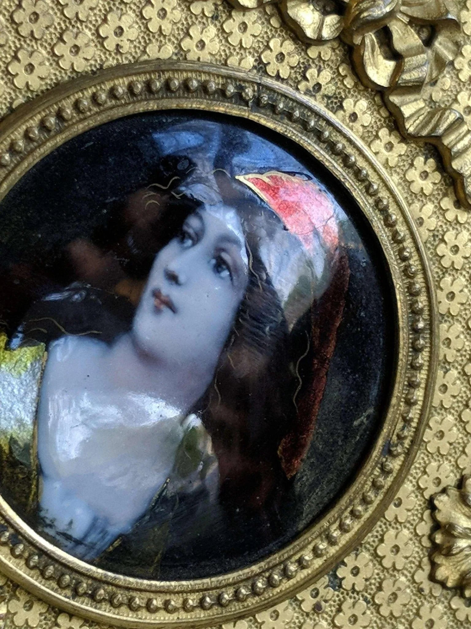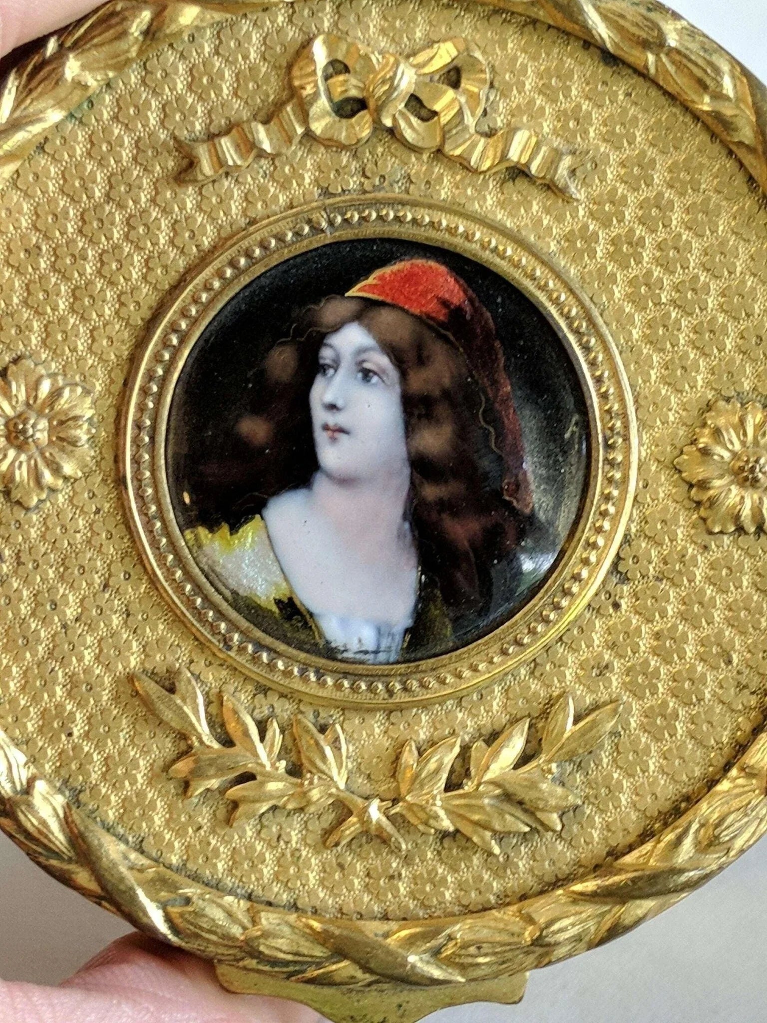 c1890 French Gilt Bronze Mounted French Enamel Portrait Plaque Jewelry Box