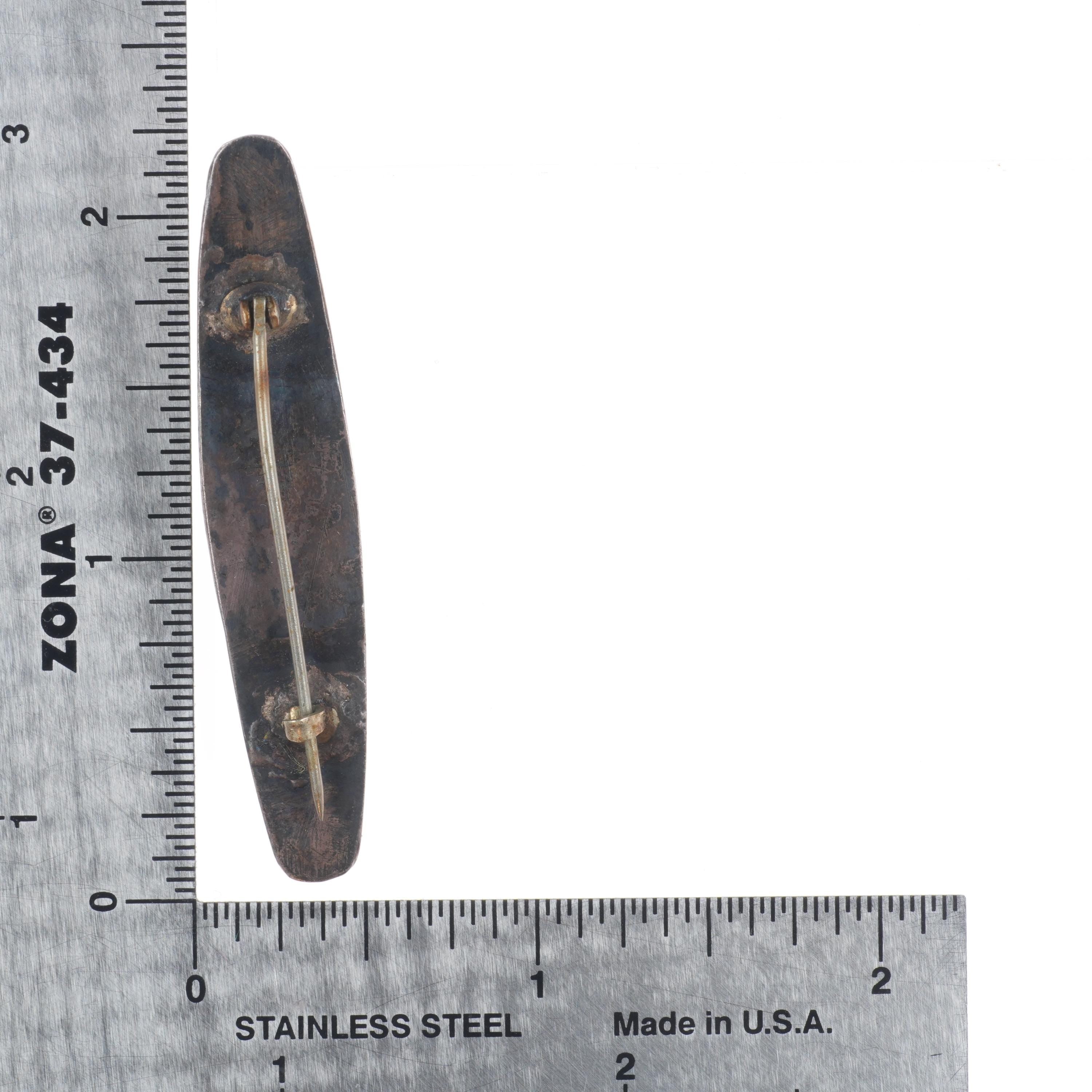 c1930‘s Navajo ingot/sterling silver red spiderweb turquoise pin/brooch. Solid sterling silver tested and guaranteed with weight and measurements in the pictures. No issues, Circa second quarter of the 20th century,