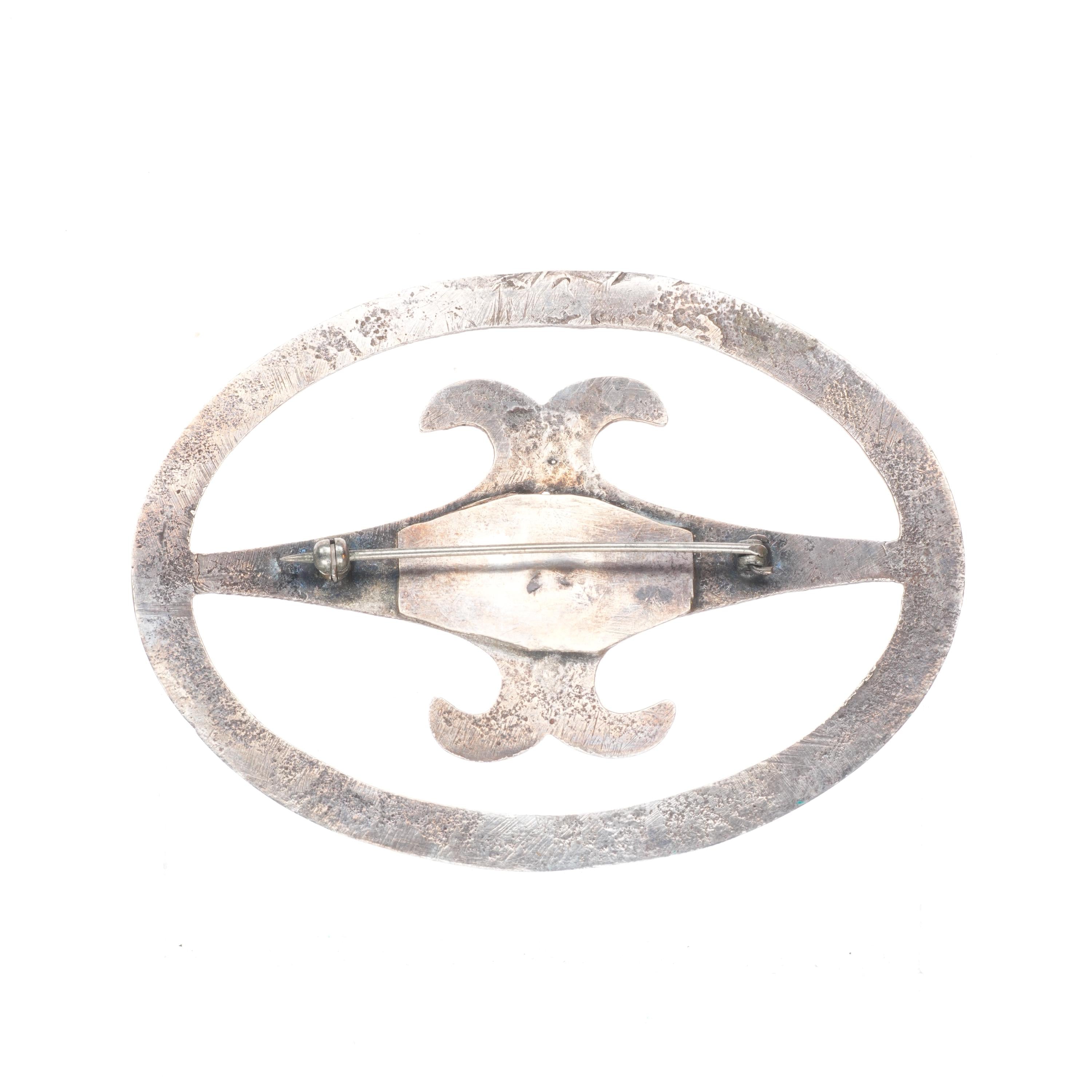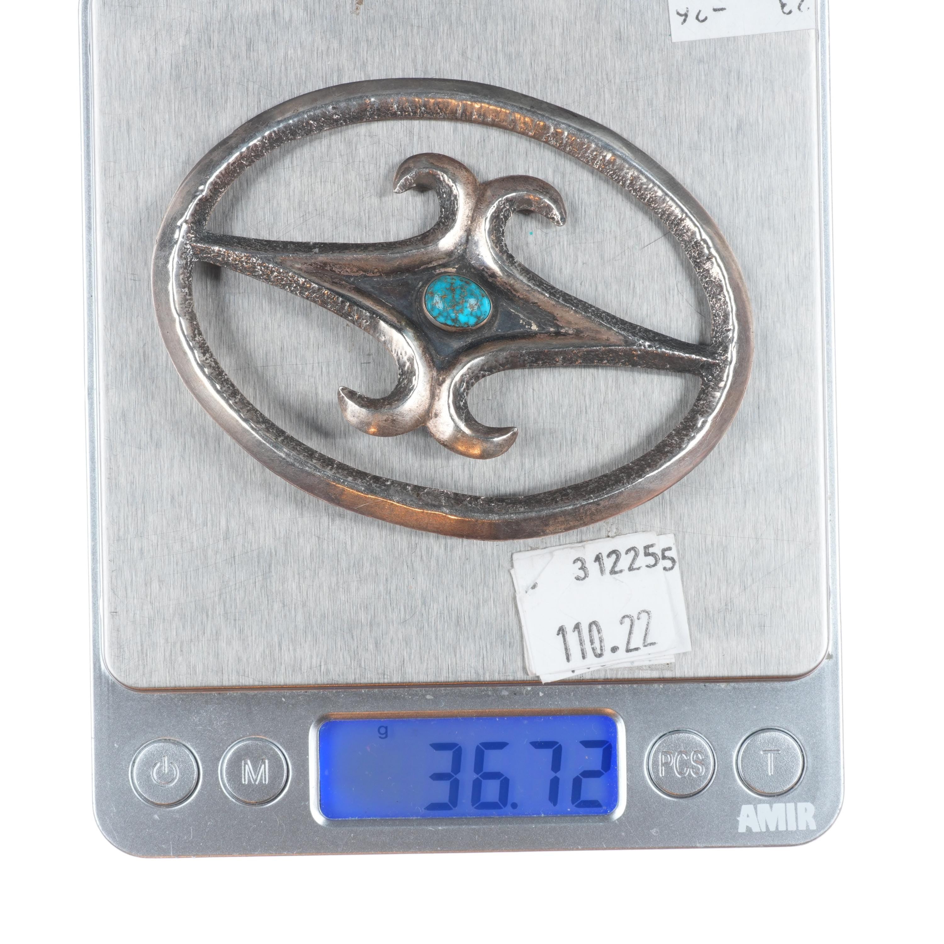 c1940 Large Lone Mountain turquoise Tufa Cast sterling silver Navajo pin/brooch. Solid sterling silver tested and guaranteed with weight and measurements in the pictures. No issues, Circa mid 20th century, unmarked.