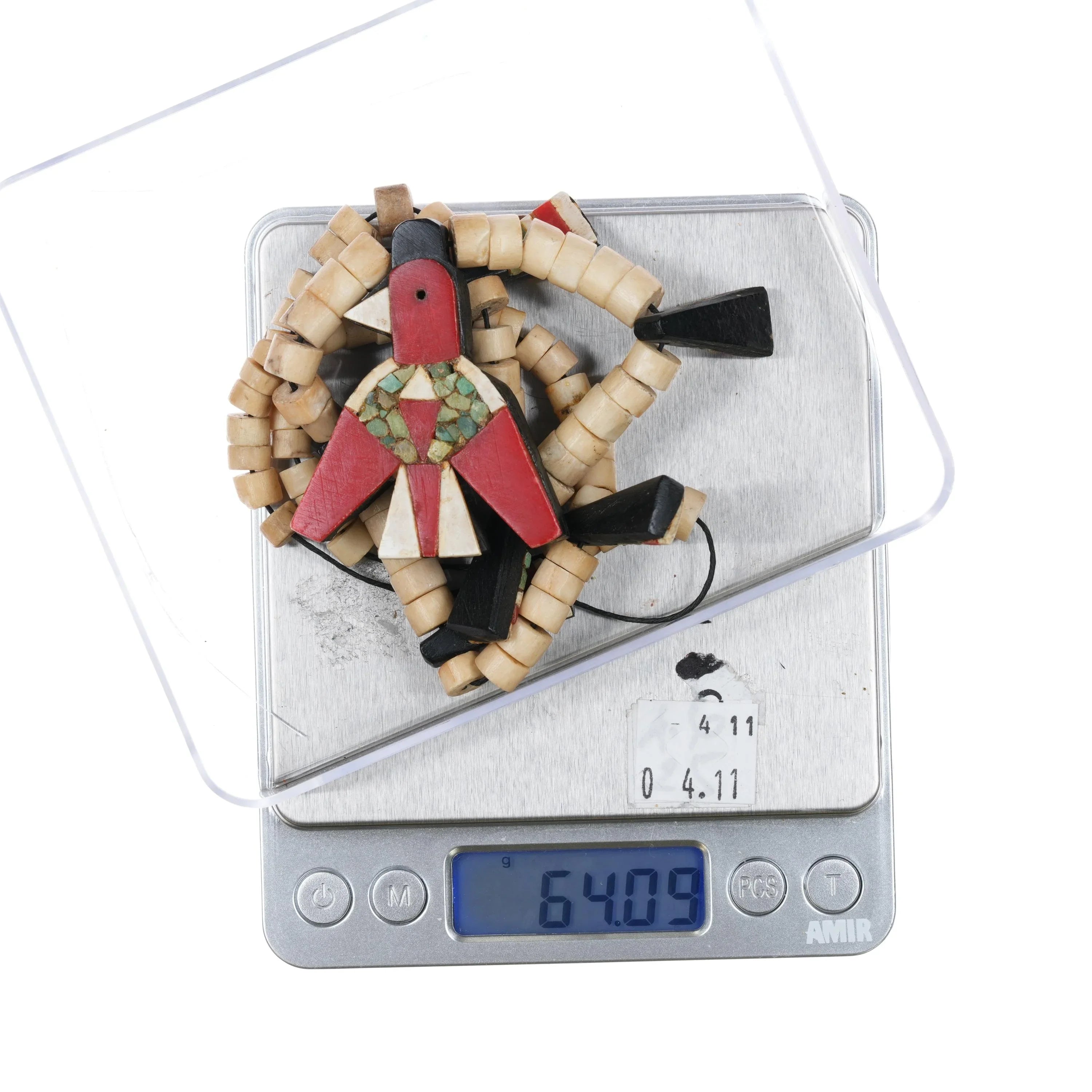c1940 Santo Domingo Battery bird Necklace 22.5" long, no damage, weight and measurements in pictures.