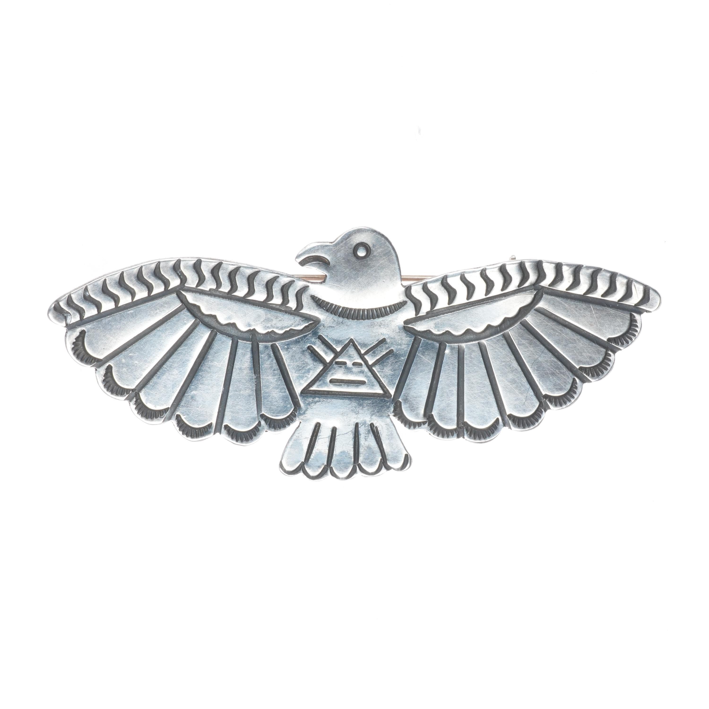 c1940's Big Navajo sterling silver Fred Harvey style thunderbird pin/brooch