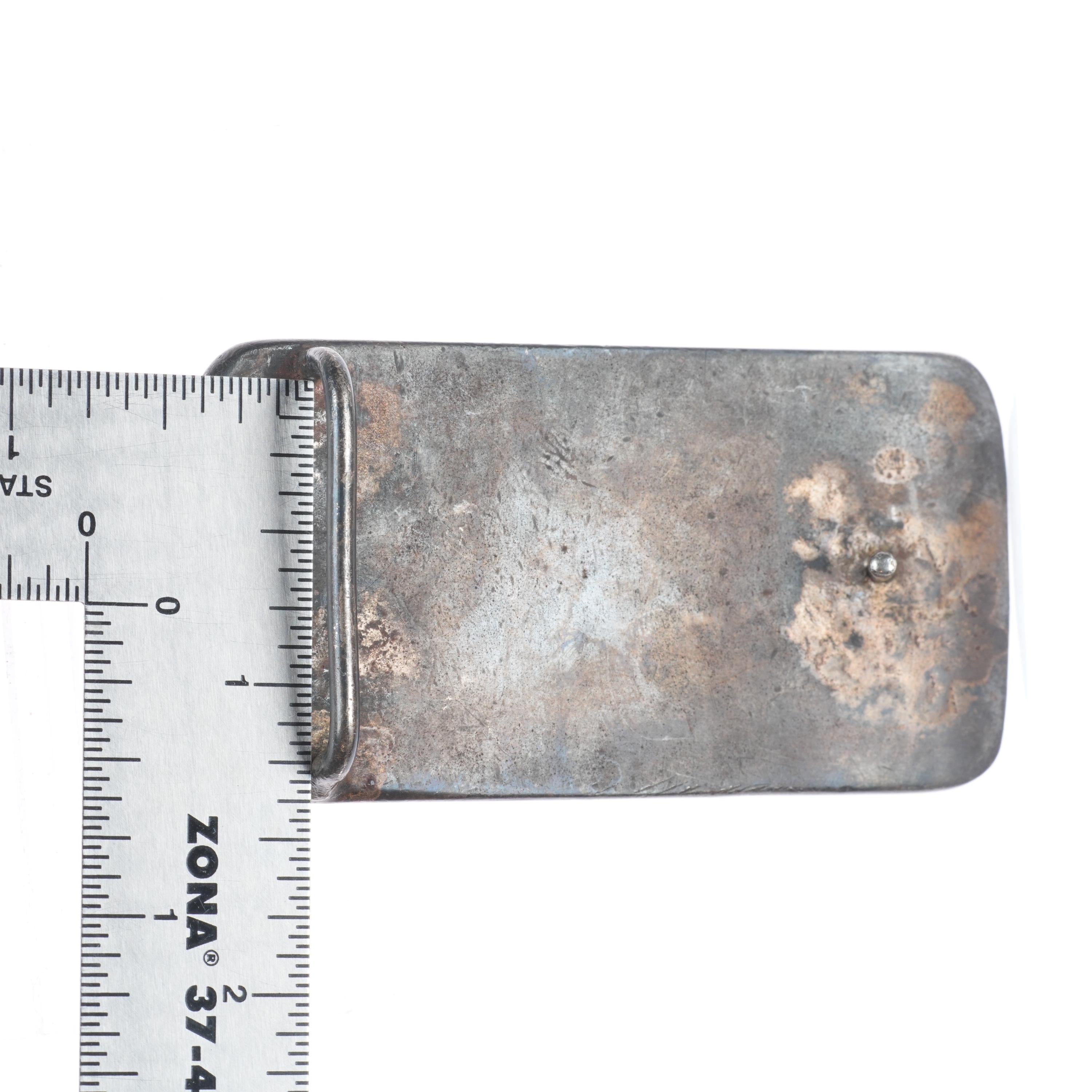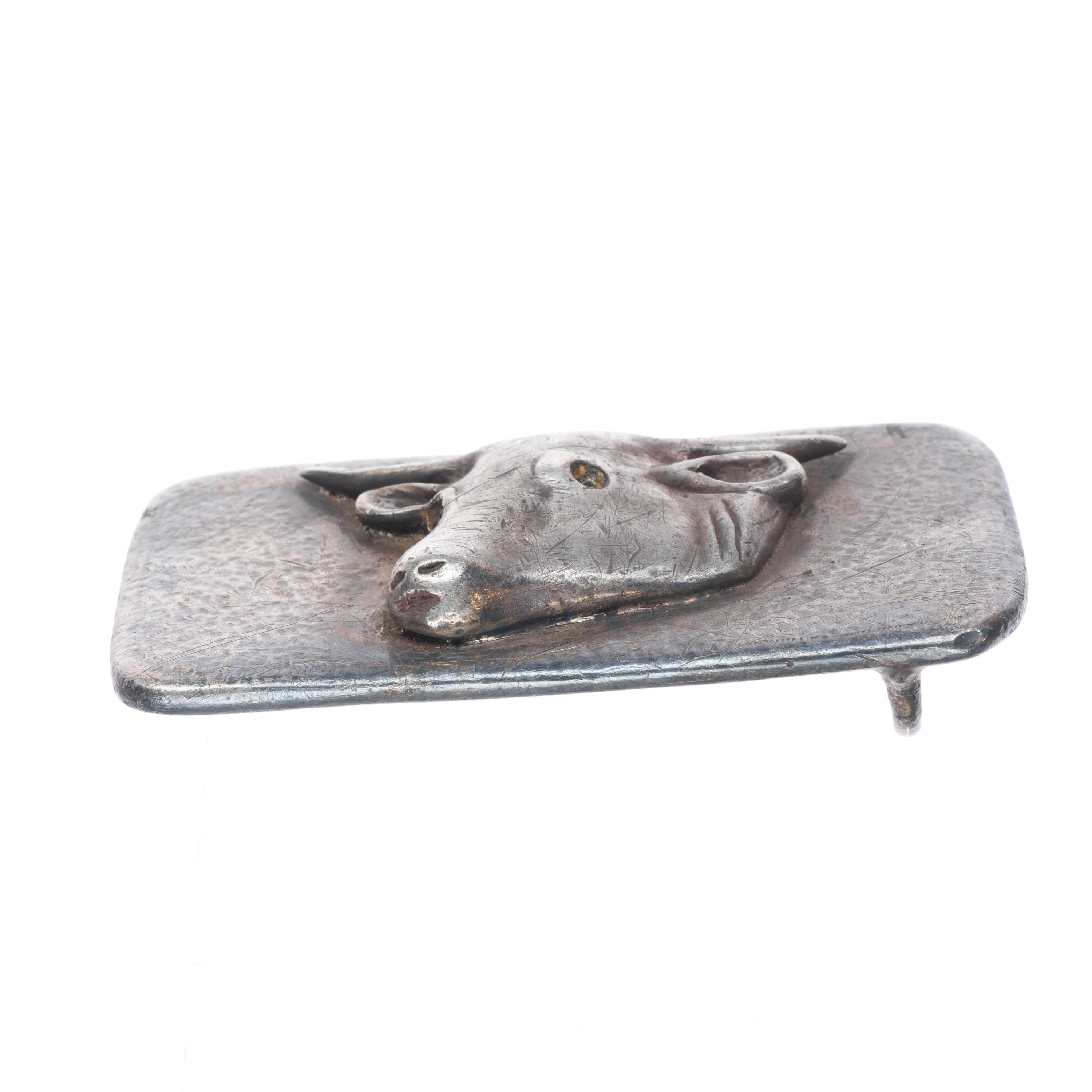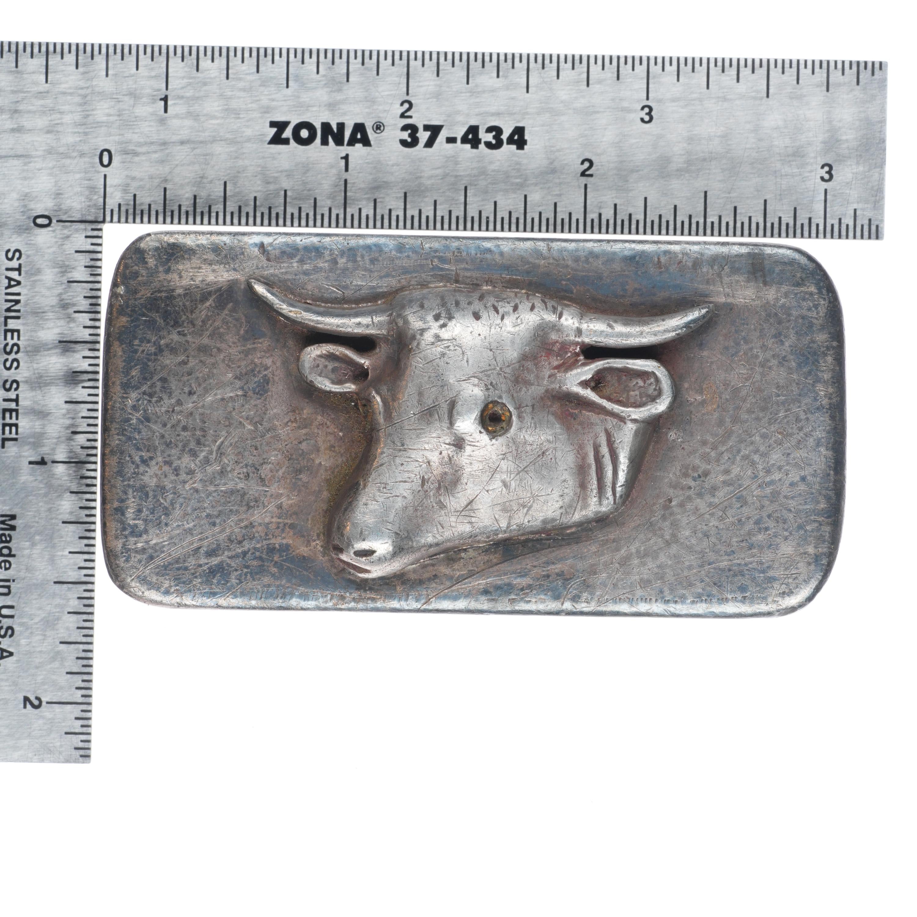 c1940's Heavy vintage sterling silver 3D Bull belt buckle. Unmarked, Fits up to a 1.25" belt. Tested and guaranteed solid sterling silver with weight and measurements in pictures. Fully functional. All items will likely have some age appropriate/expected wear, the older they are the more wear they should have. Circa mid 20th century.. Apparently unmarked. Looks like it may have had a gem or some sort of eye which could be easily be replaced with a gem of your choice.