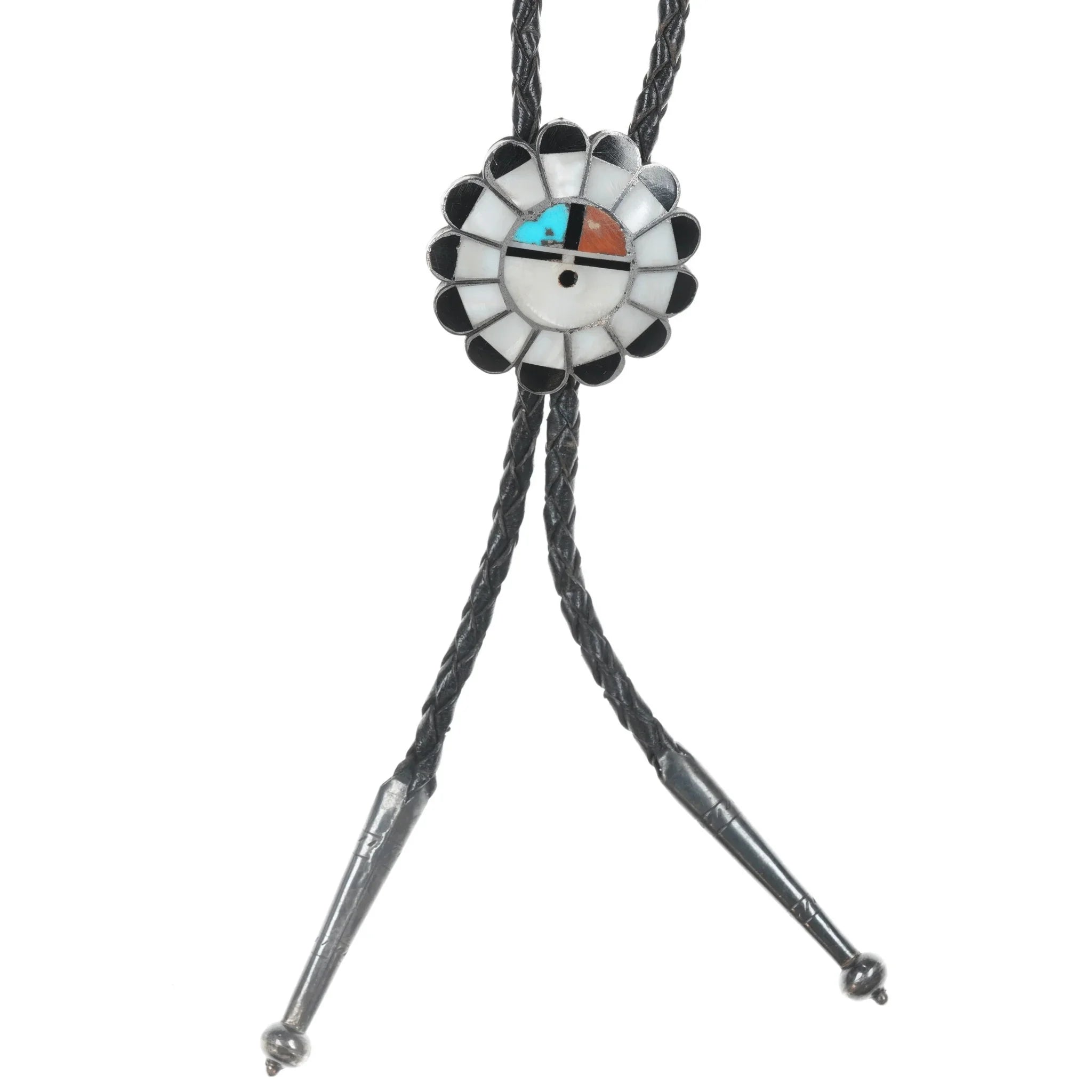 c1960 c-31 Zuni Suniface sterling channel inlay bolo tie