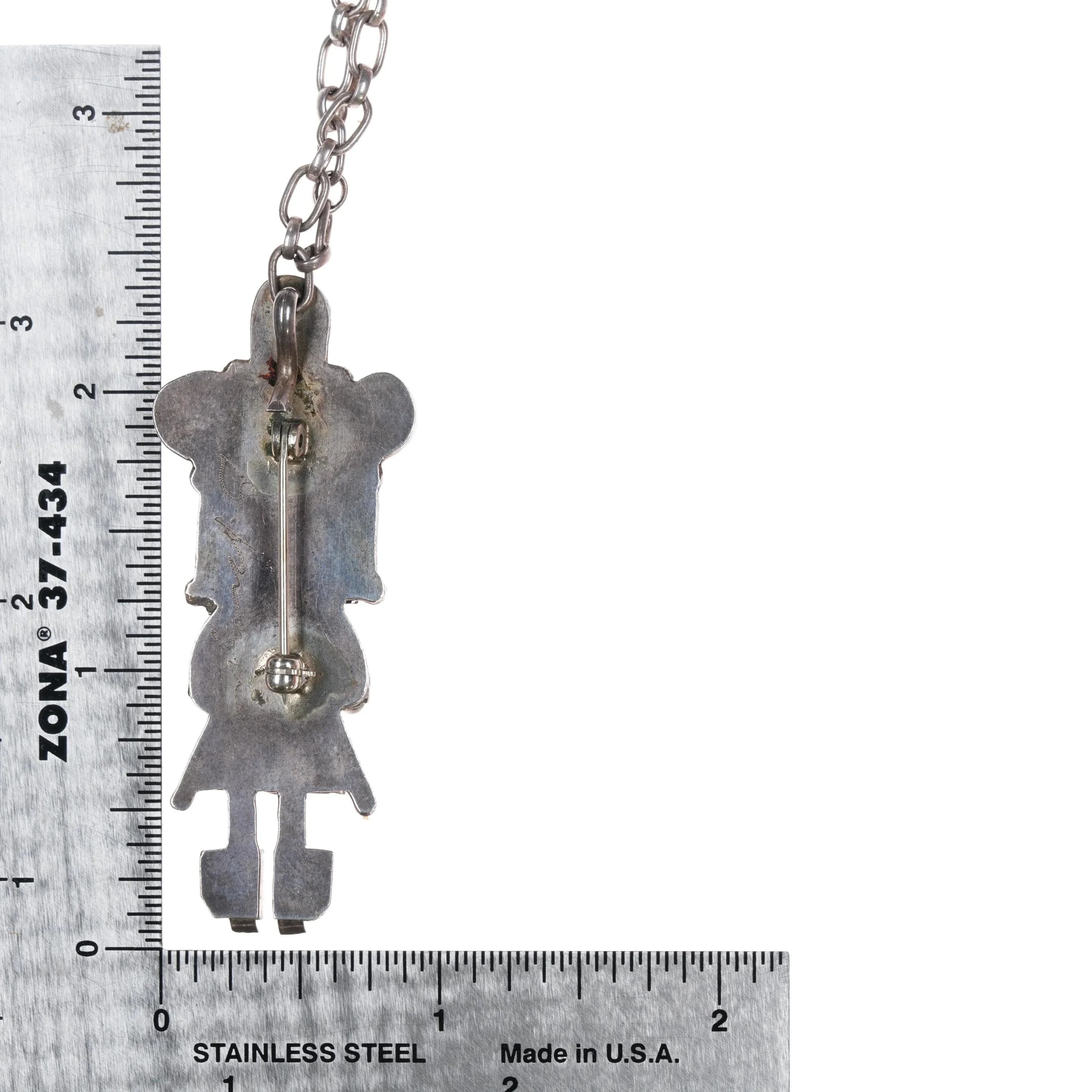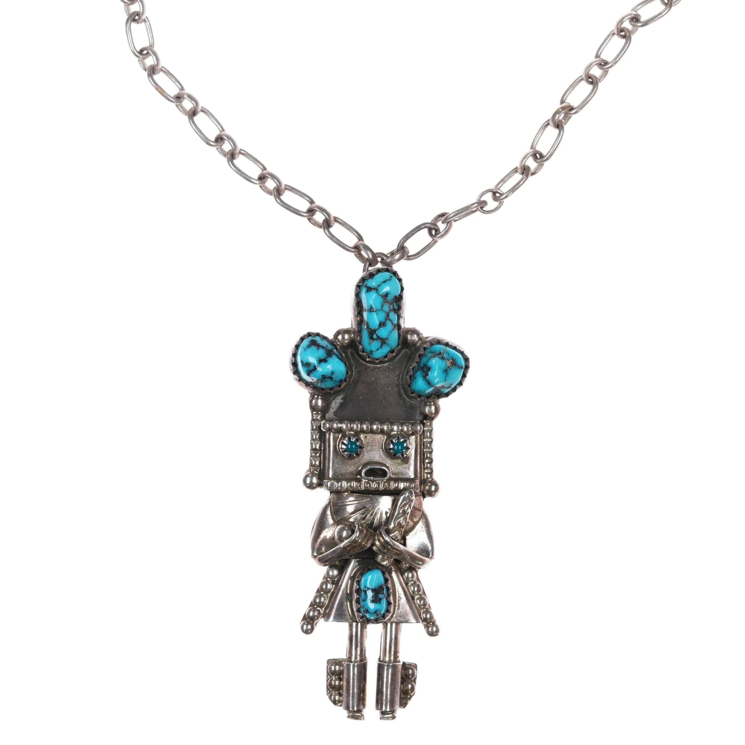 Doris Smallcanyon Navajo sterling Kachina pendant/pin w/Kingman turquoise 24" long necklace included. Weight and measurements in pictures, all solid sterling silver.