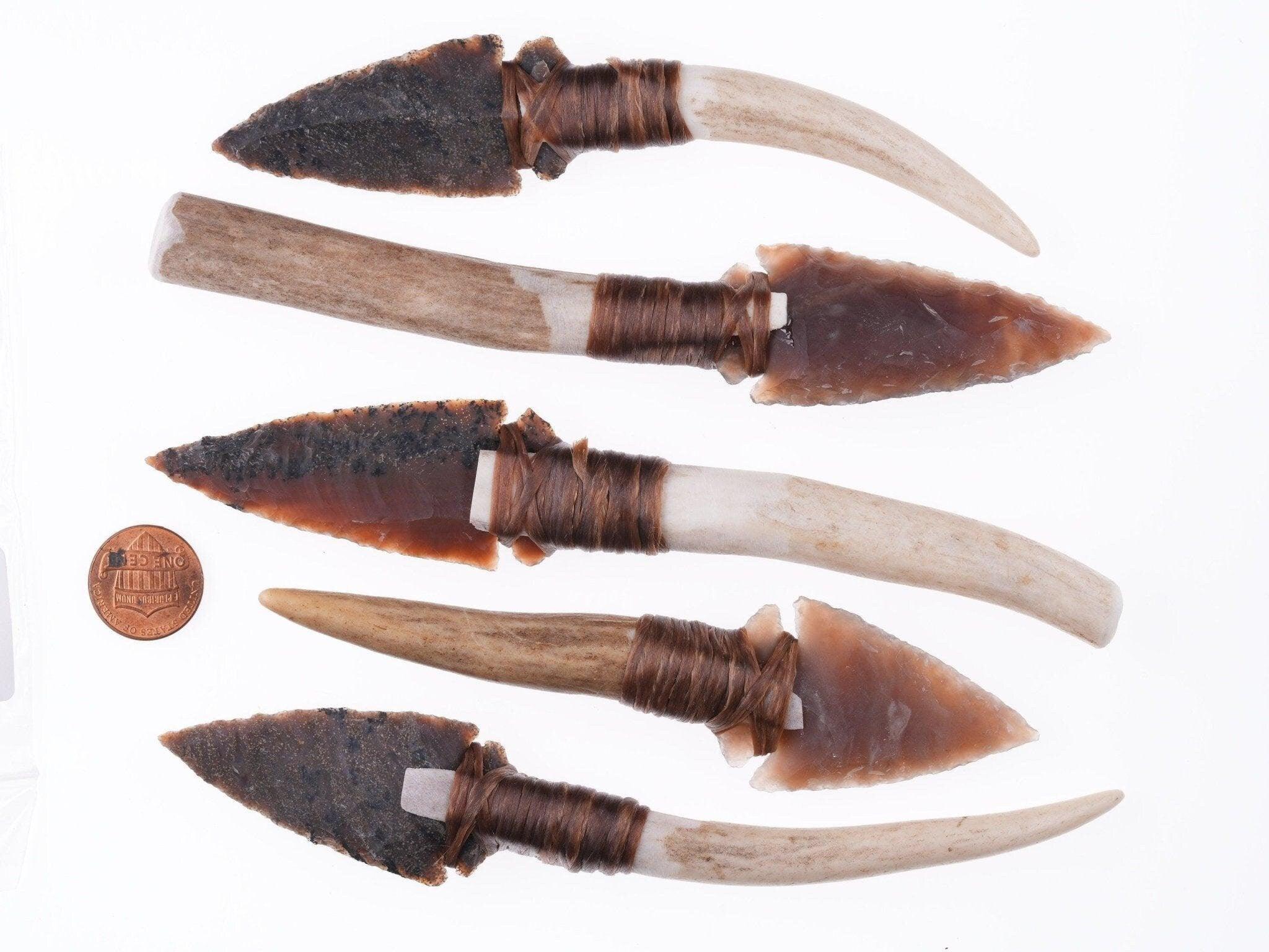 5 Modern Texas Knapped Arrowhead Stag horn knives