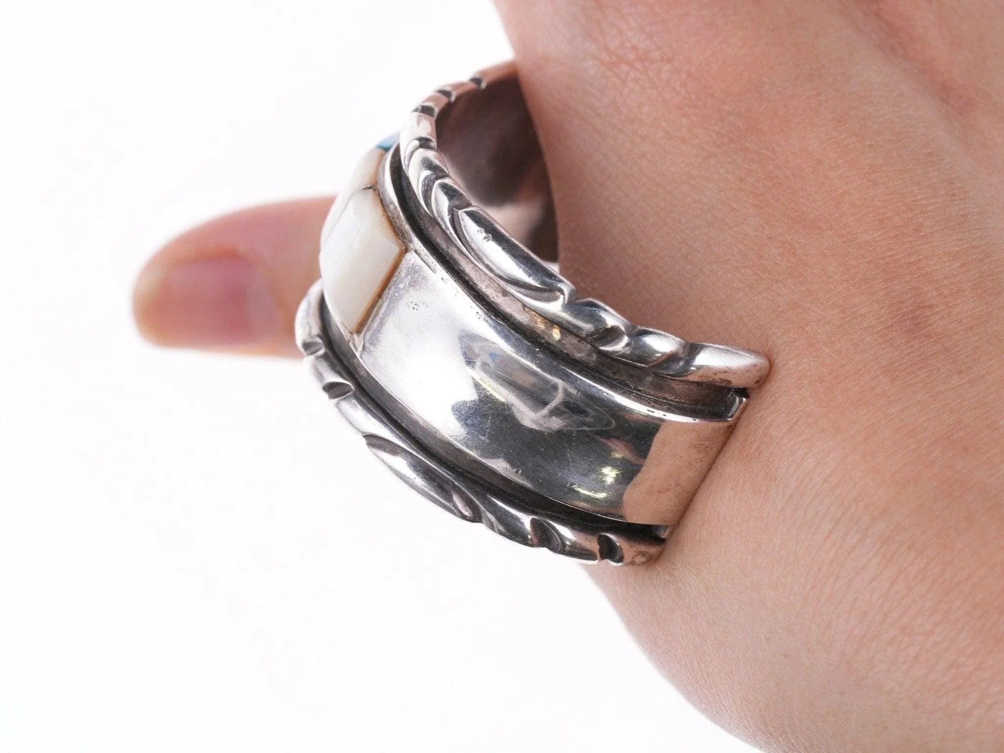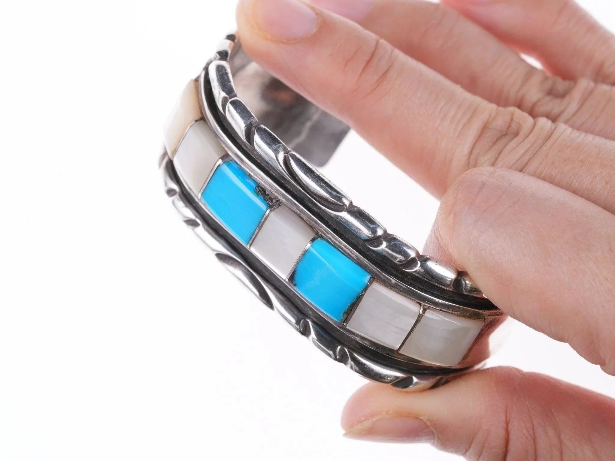 6.5" Vintage Navajo turquoise/shell sterling silver cuff bracelet