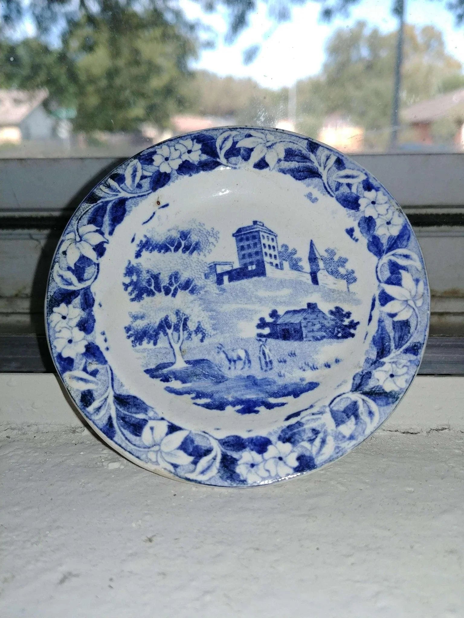 Mid 19th century Pearlware Blue Transferware Staffordshire Child's Plate Hackwoo