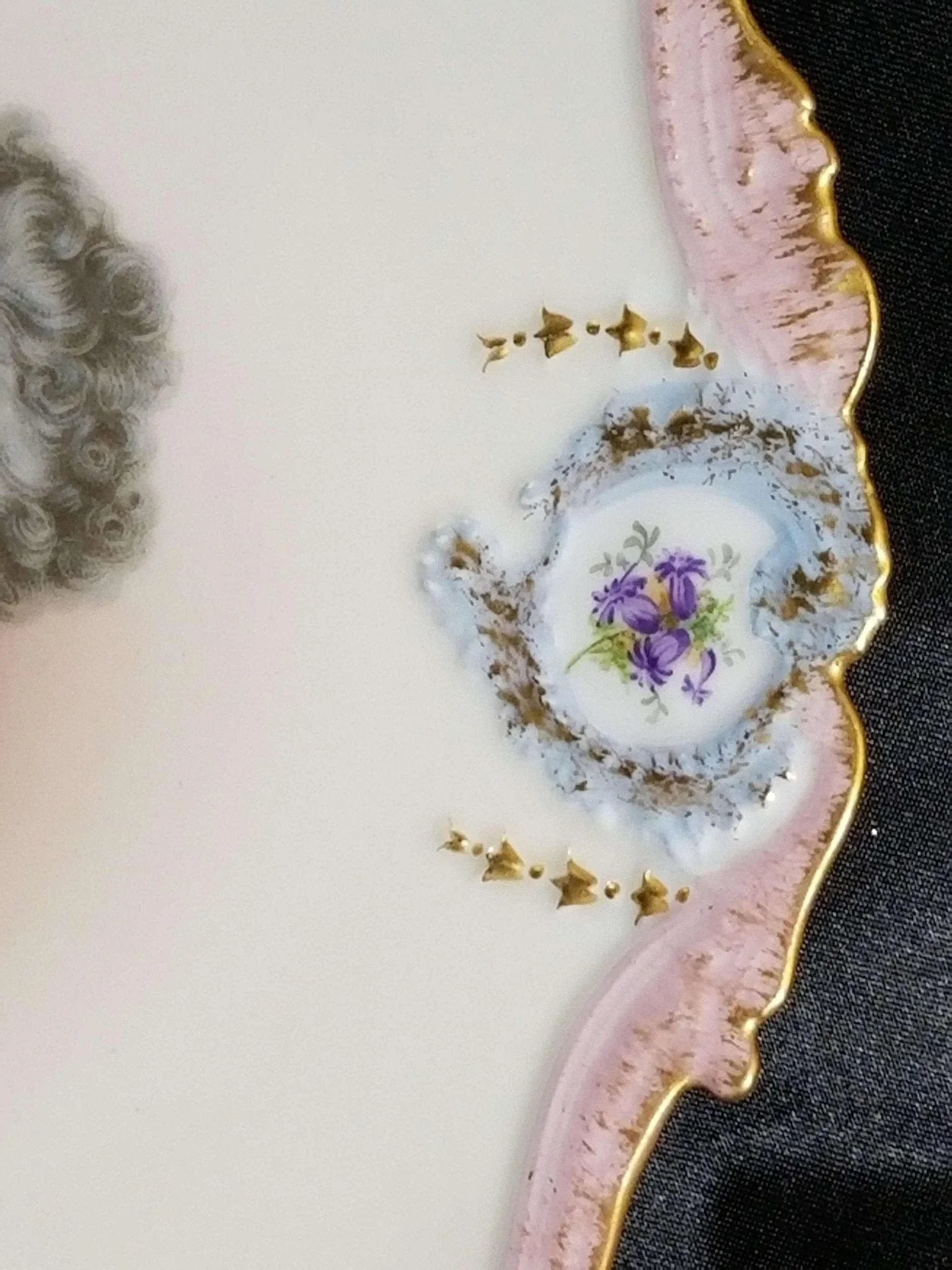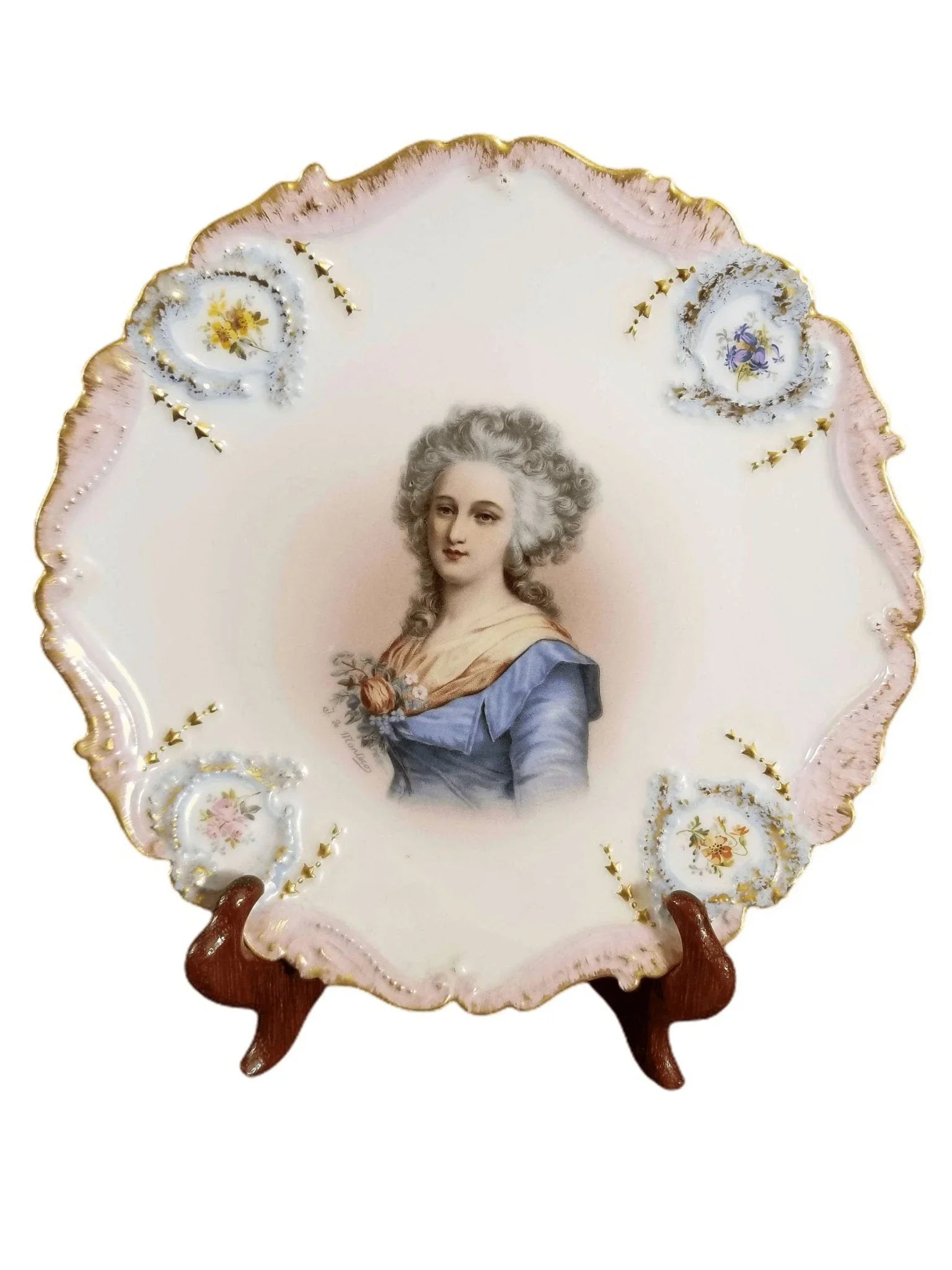 No cracks, chips, or restorations. No Gilding wear on rim. The gold and border is hand decorated, the portrait I believe is a transfer. Late 19th to early 20th century.
