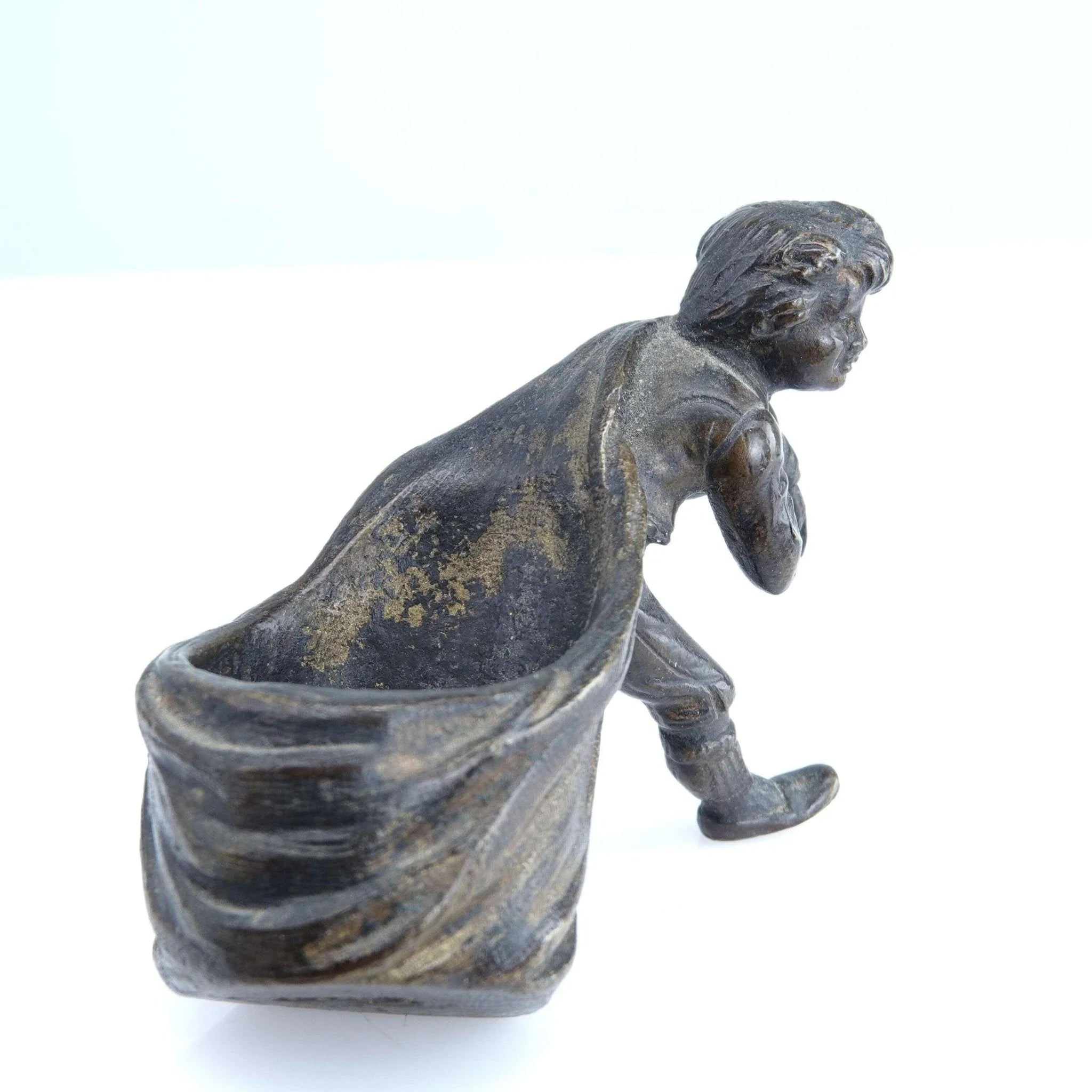 c1900 Austrian bronze Figural Toothpick/Match holder Boy carrying bag