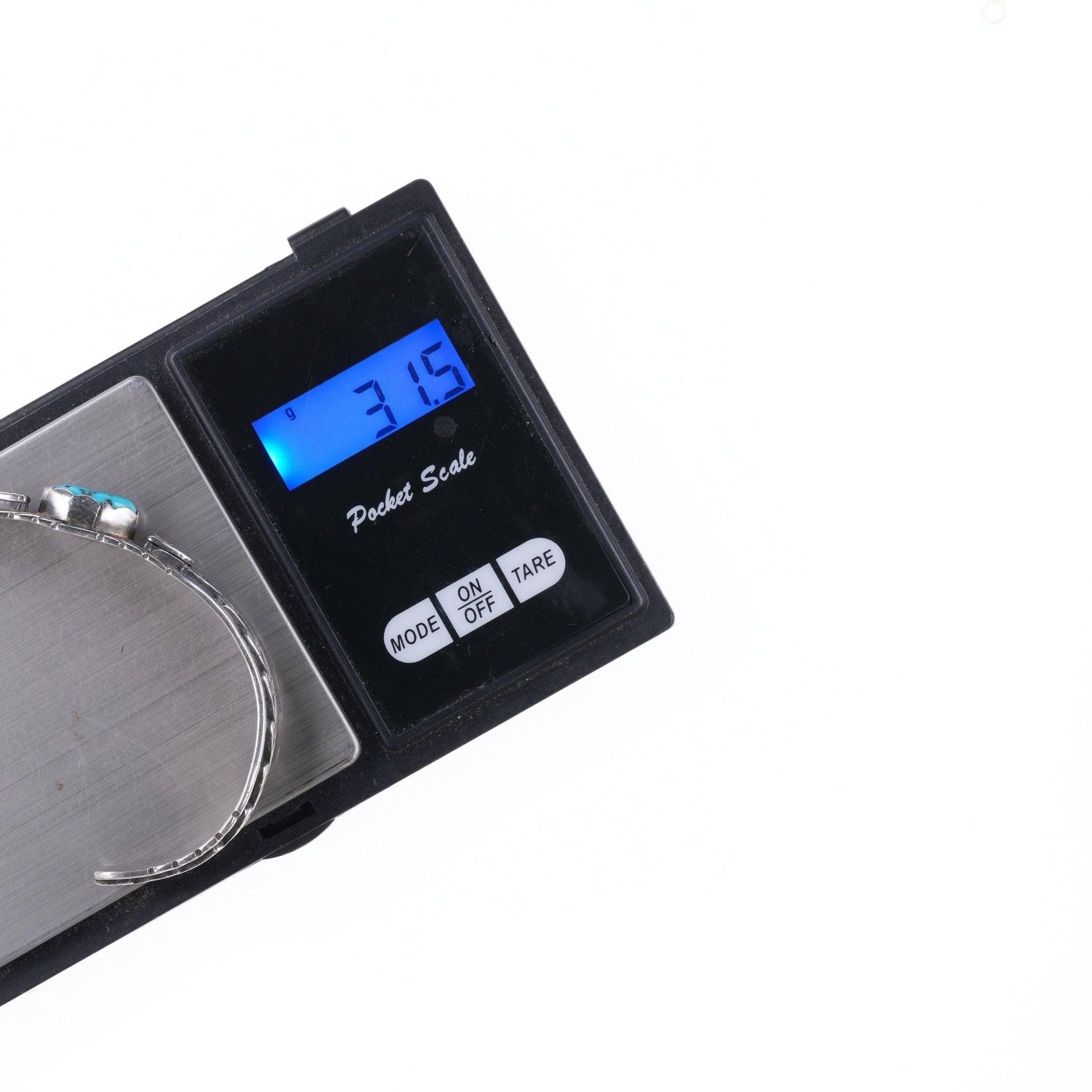 7" Vintage Navajo sterling and turquoise bracelet 15mm wide. All precious metals are tested and guaranteed,