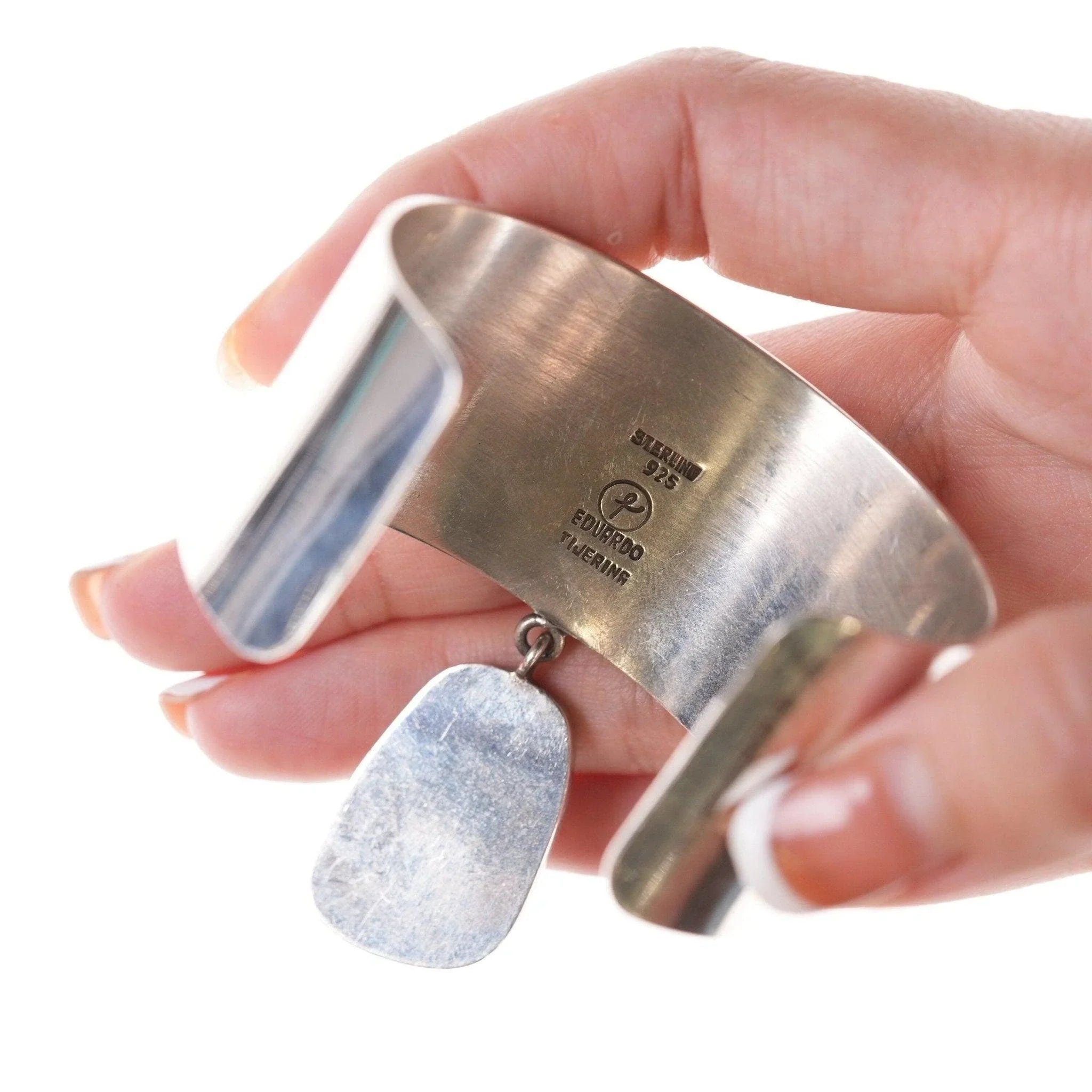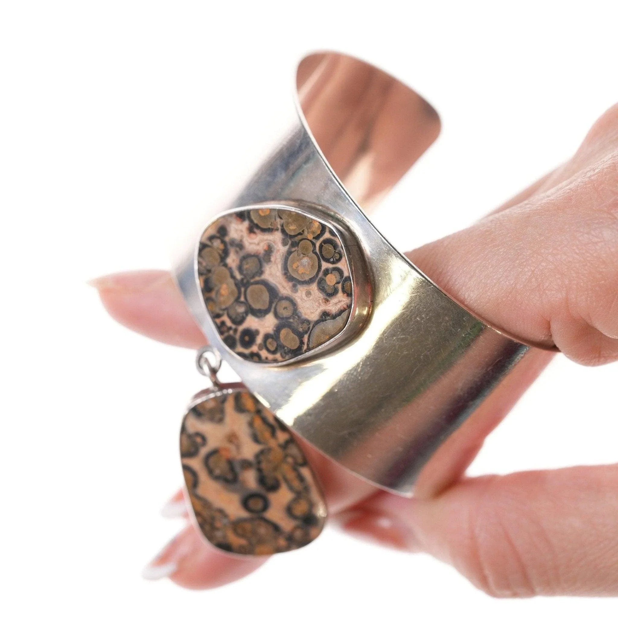6.5" Eduardo Tijerina Modernist Sterling and Jasper bracelet , band is 32mm wide not including the dangle.