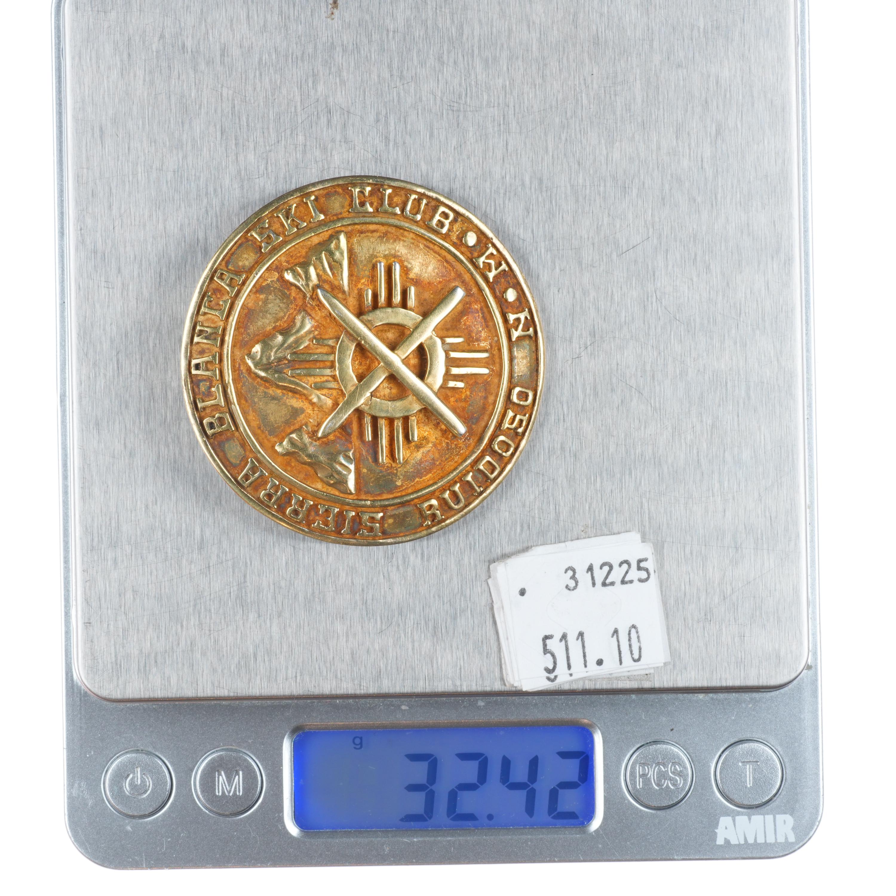 Frank Patania Sr Sierra Blanca Ski Club Ruidoso NM sterling gold filled pin. Solid sterling silver tested and guaranteed with weight and measurements in the pictures. No issues, Circa mid 20th century, thick gold filled on sterling silver.