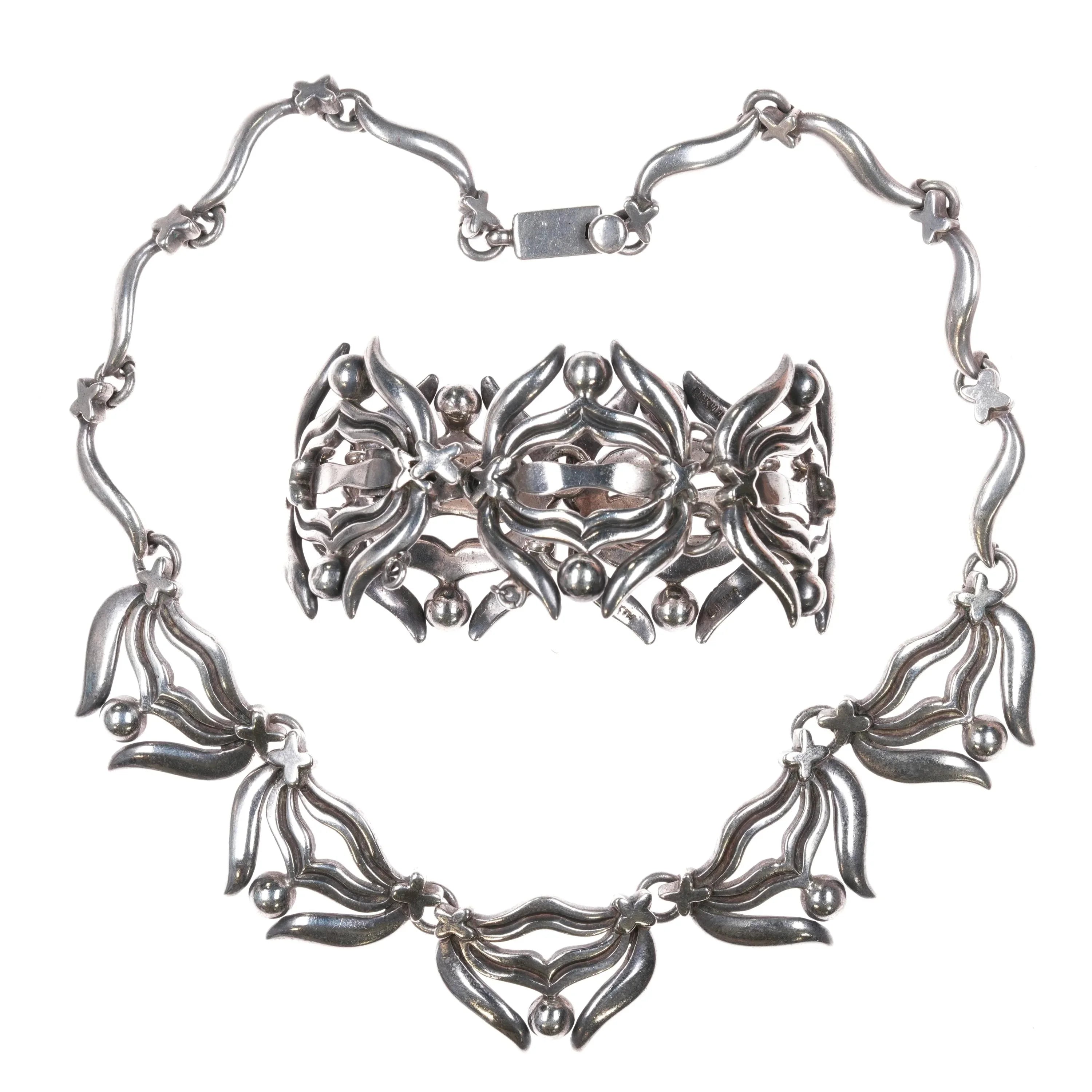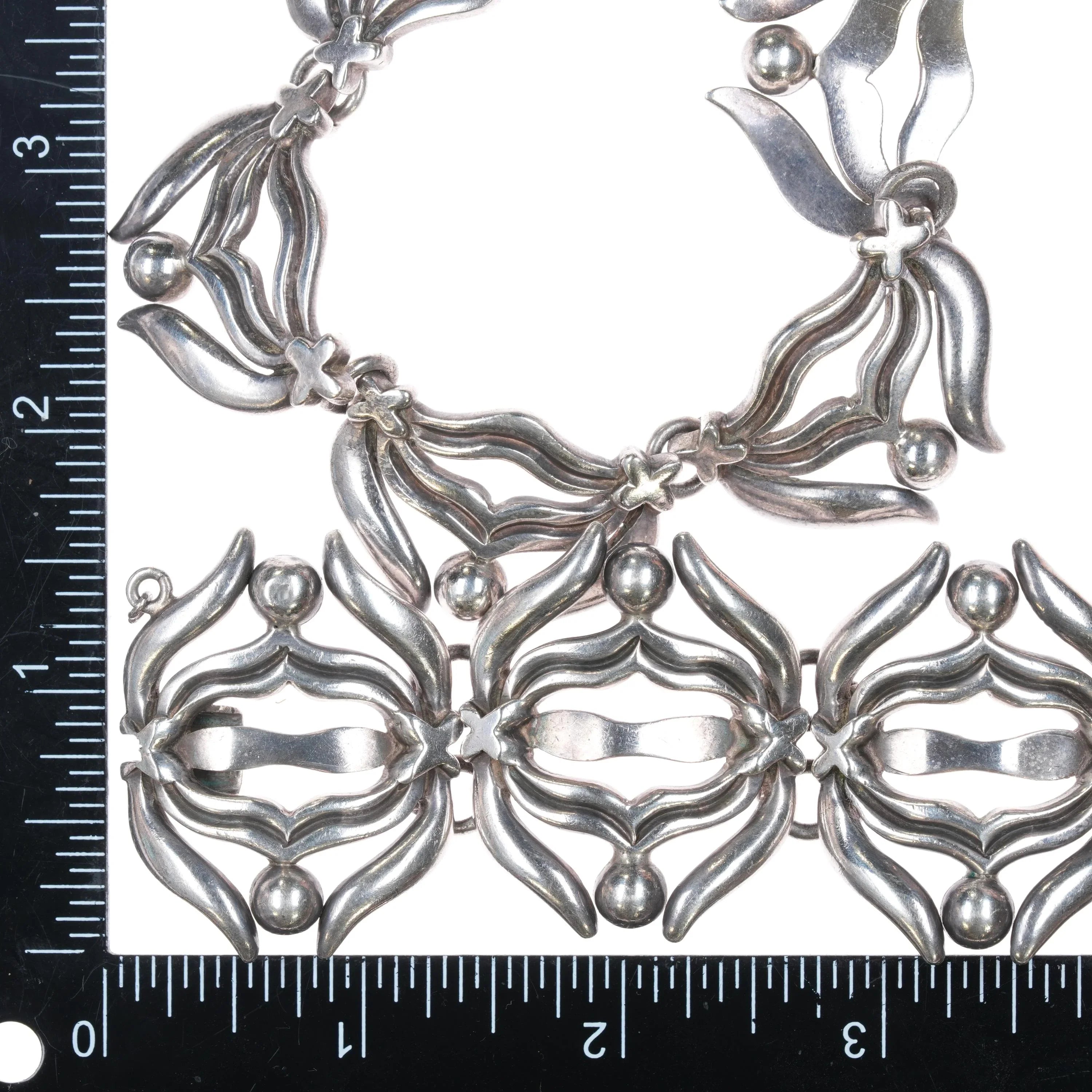 Heavy Retro Rancho Alegre Mexican Modernist sterling silver bracelet/necklace . 16" Necklace, 6.75" bracelet. Both solid sterling silver with no issues, weight and measurements in the pictures.