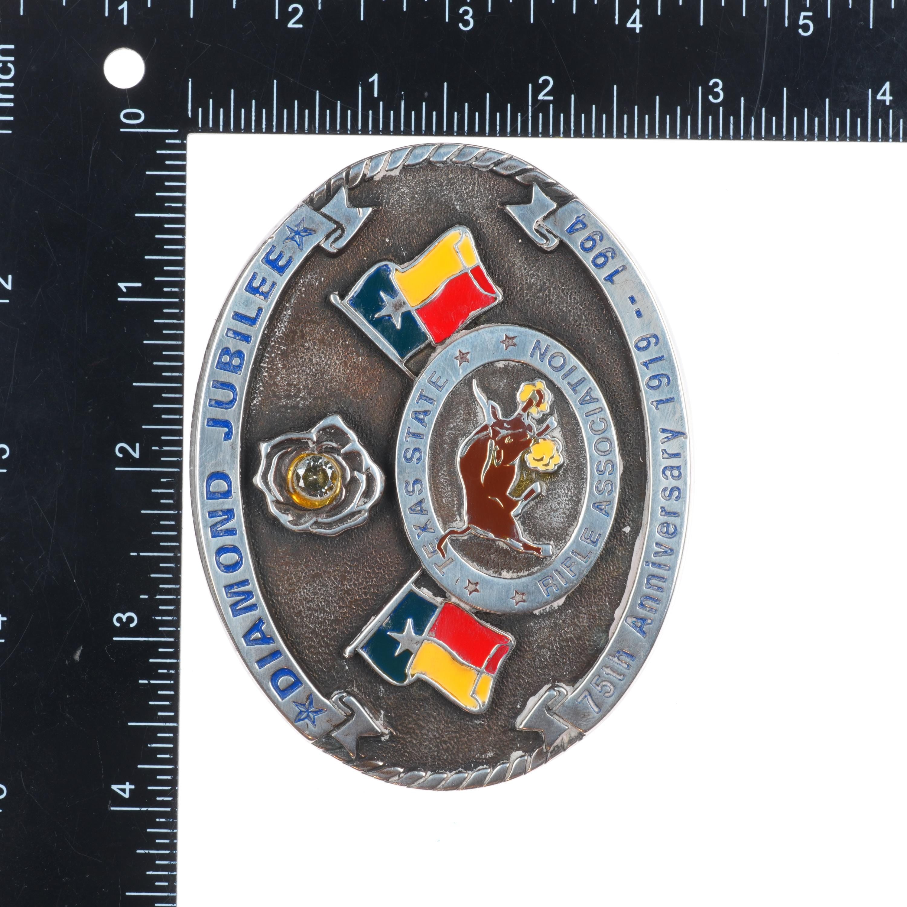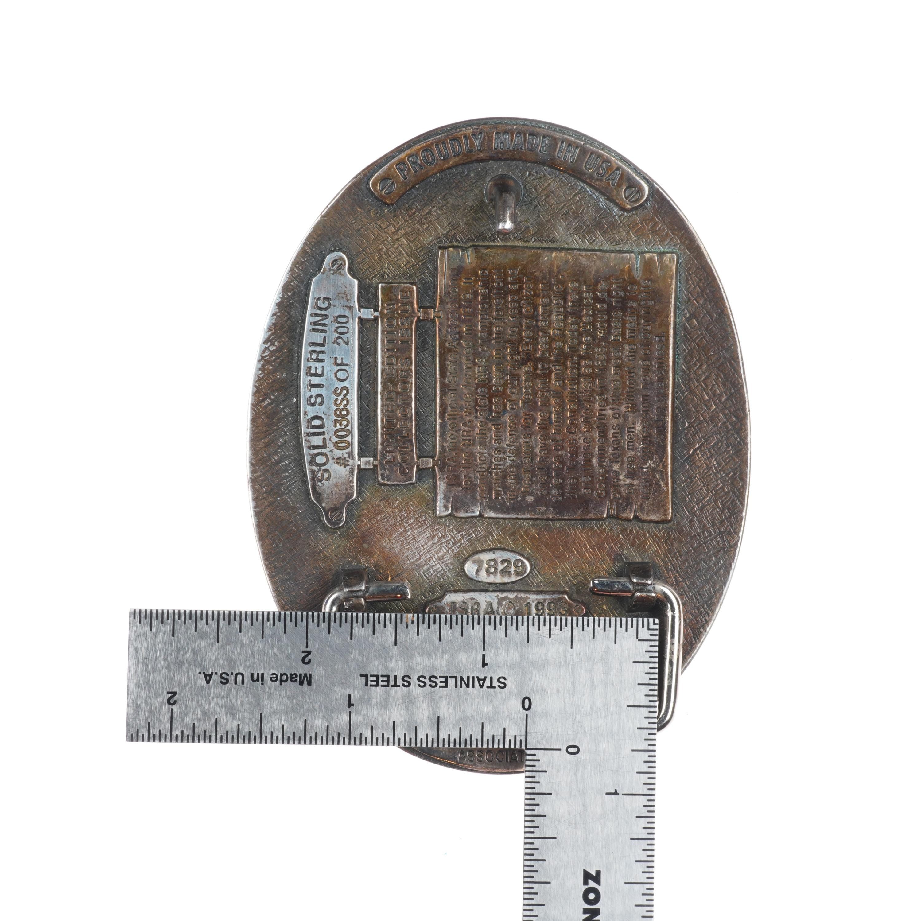 Heavy Sterling silver Texas State Rife Association belt buckle 1993