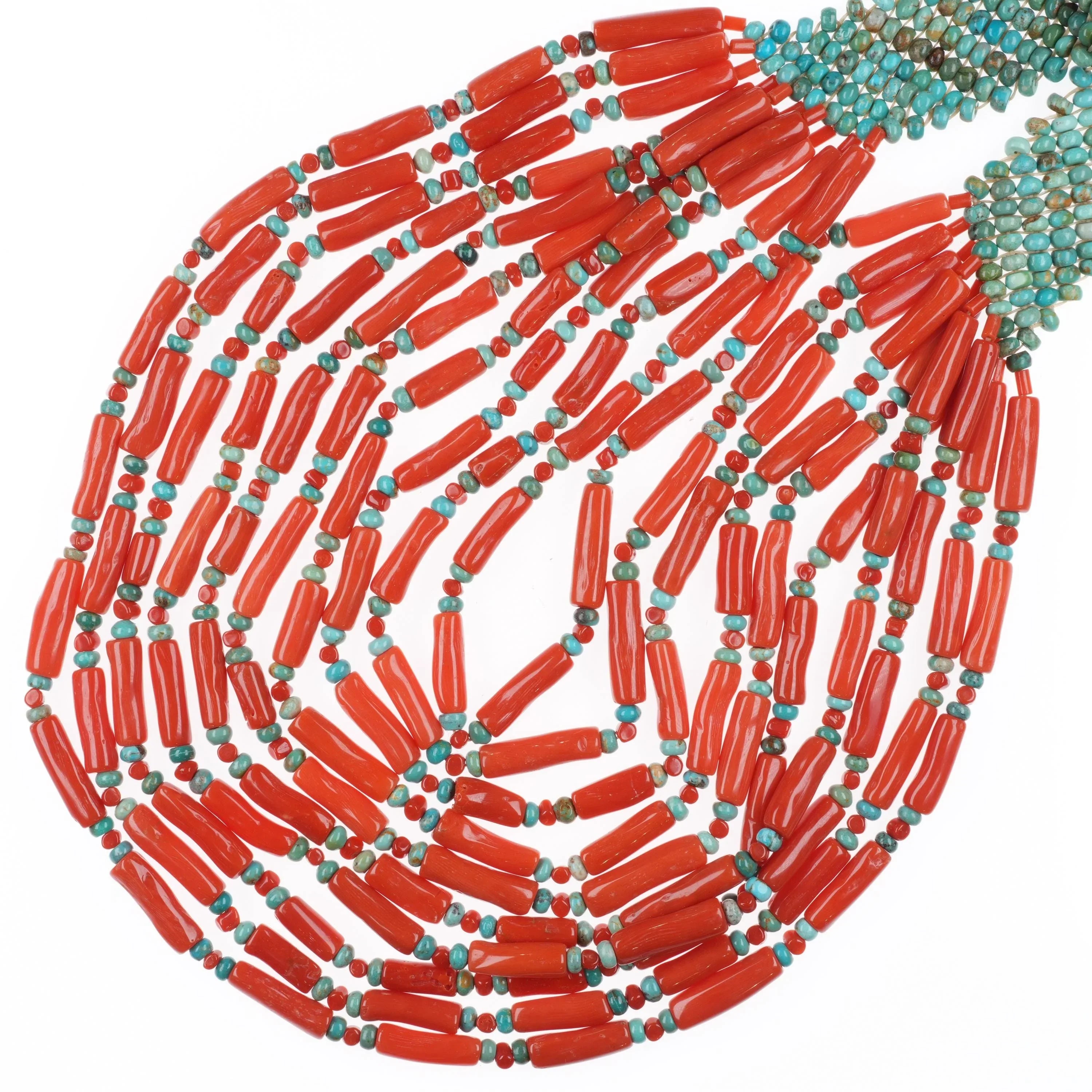 Jimmy Calabaza "Ca-Win" Santo Domingo Coral, turquoise sterling beaded necklace