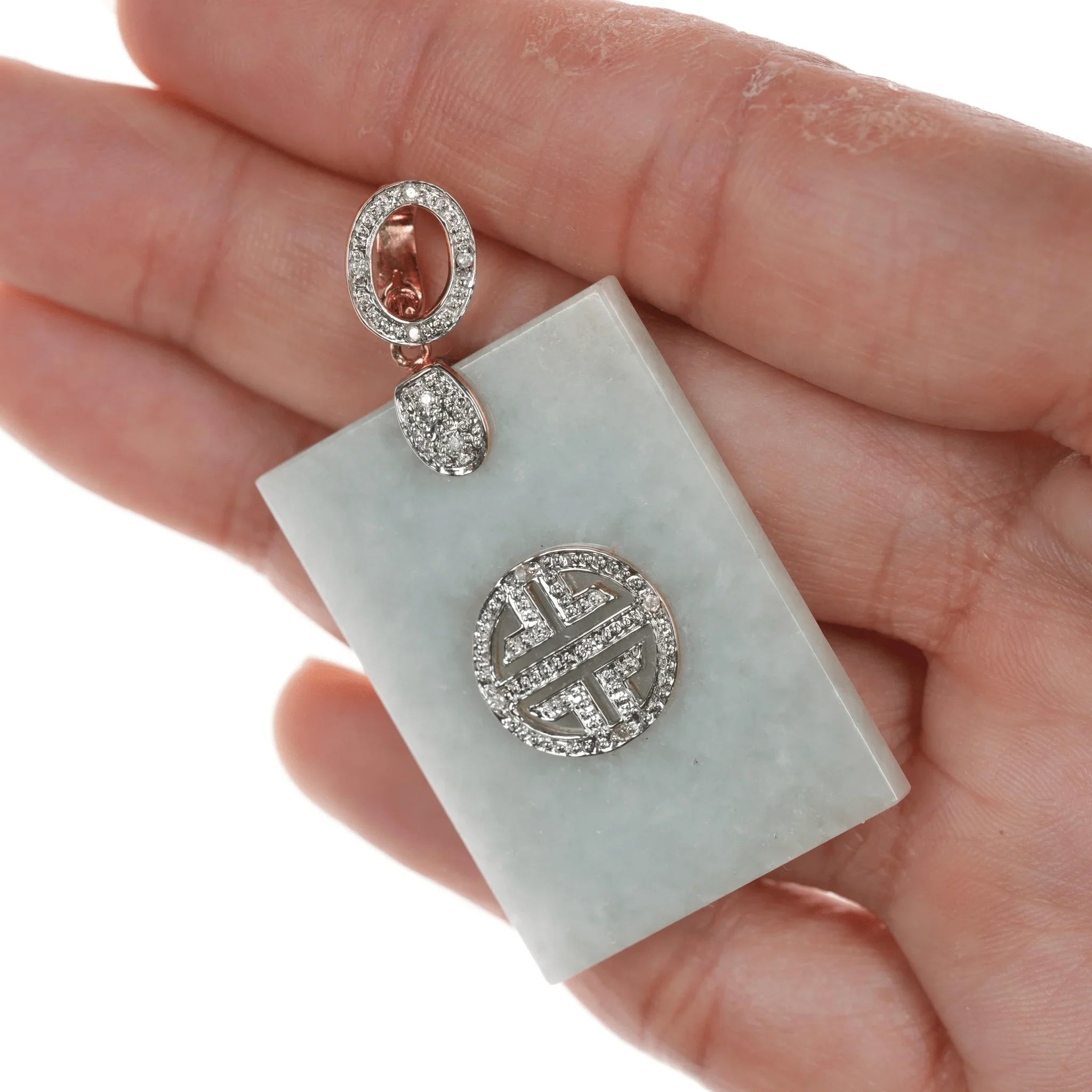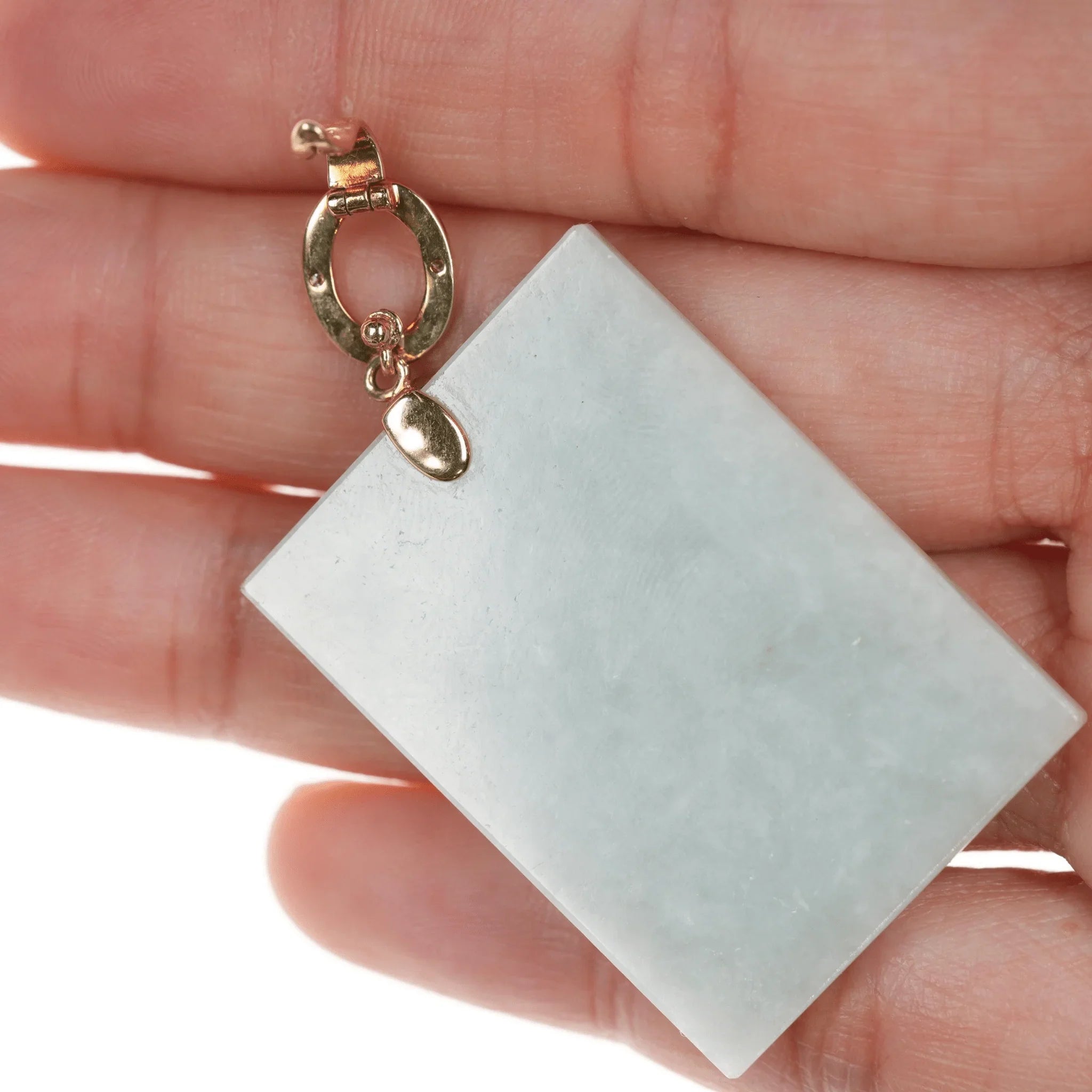 Large Retro 14k gold Jade pendant with diamonds. Nice sized Jade pendant, marked and tested 14k gold. Diamonds are small but real diamonds. High quality Jadeite and Setting estate fresh so I don't know if it's type A, etc.