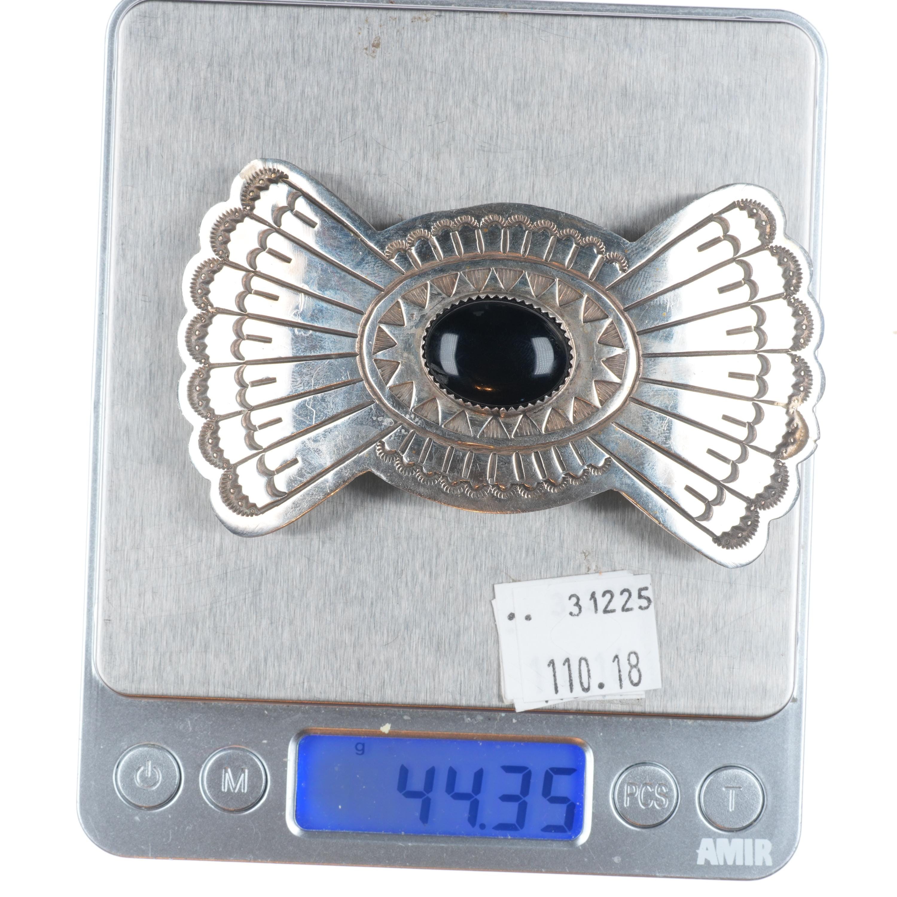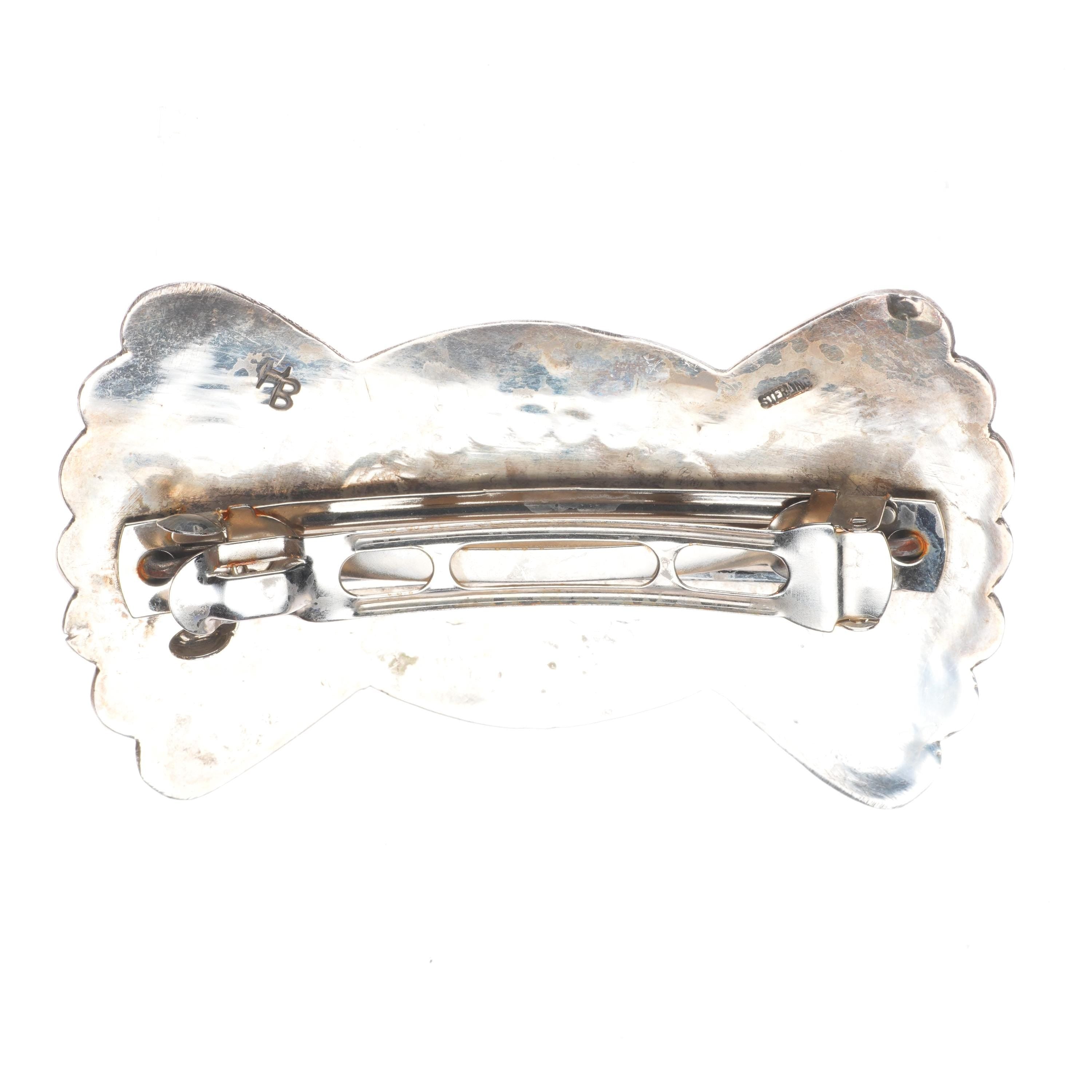 Large Vintage Navajo nicely stamped sterling silver onyx barrette/hair clip. Solid sterling silver tested and guaranteed with weight and measurements in the pictures. No issues, circa last quarter of the 20th century. Clip on back is not sterling.