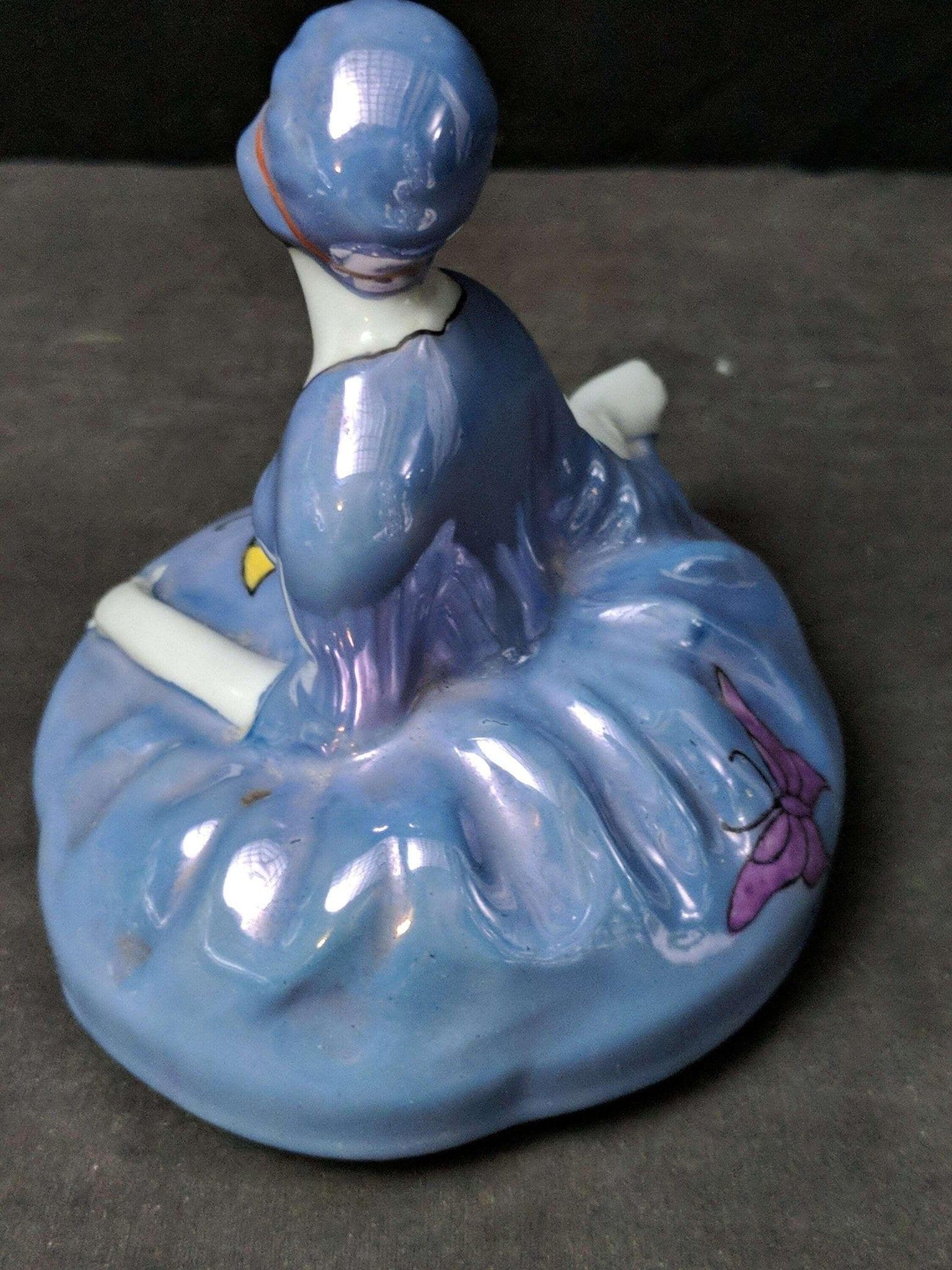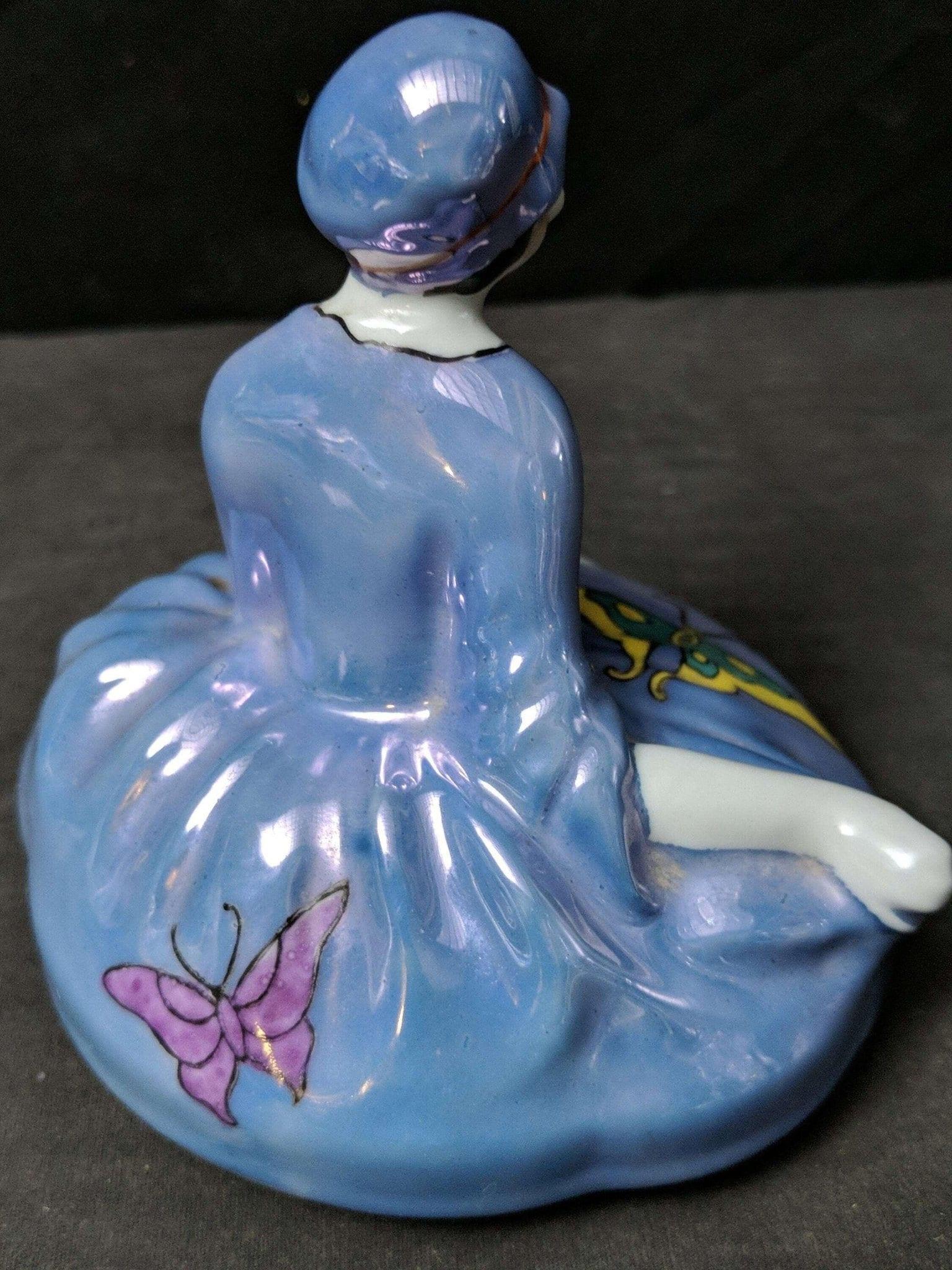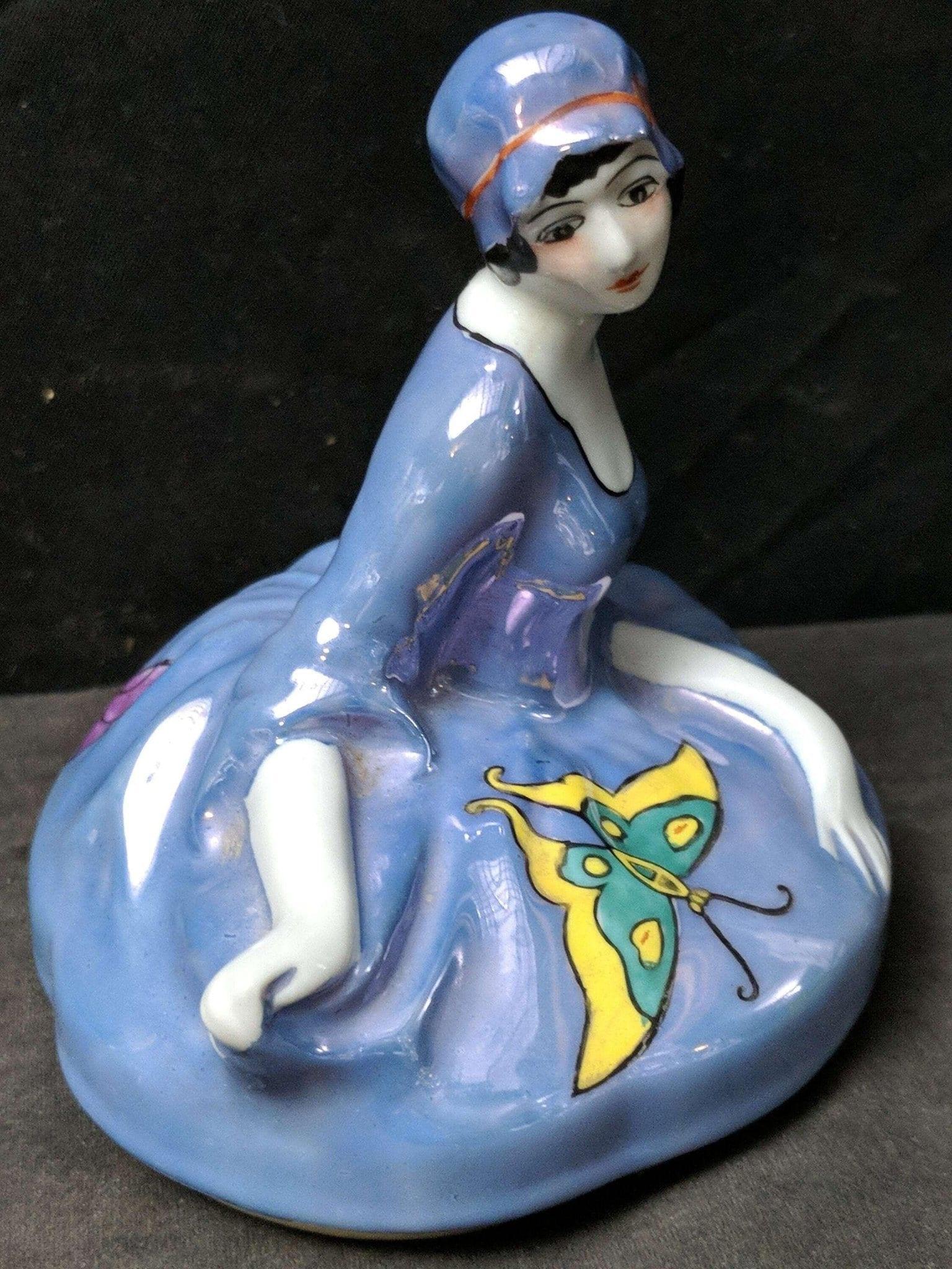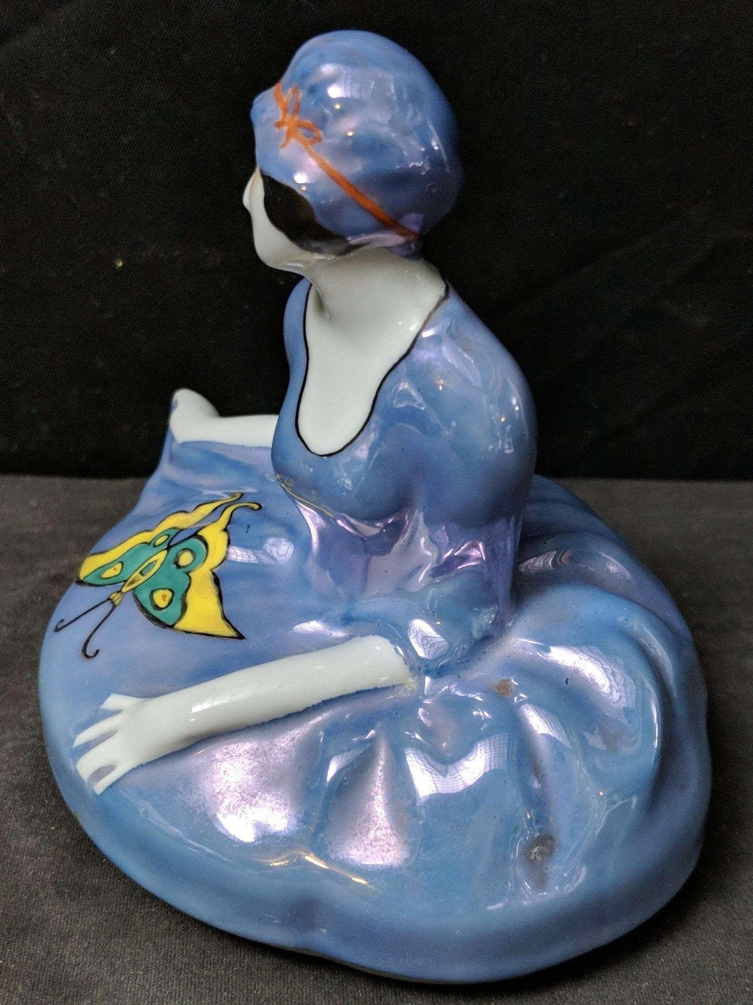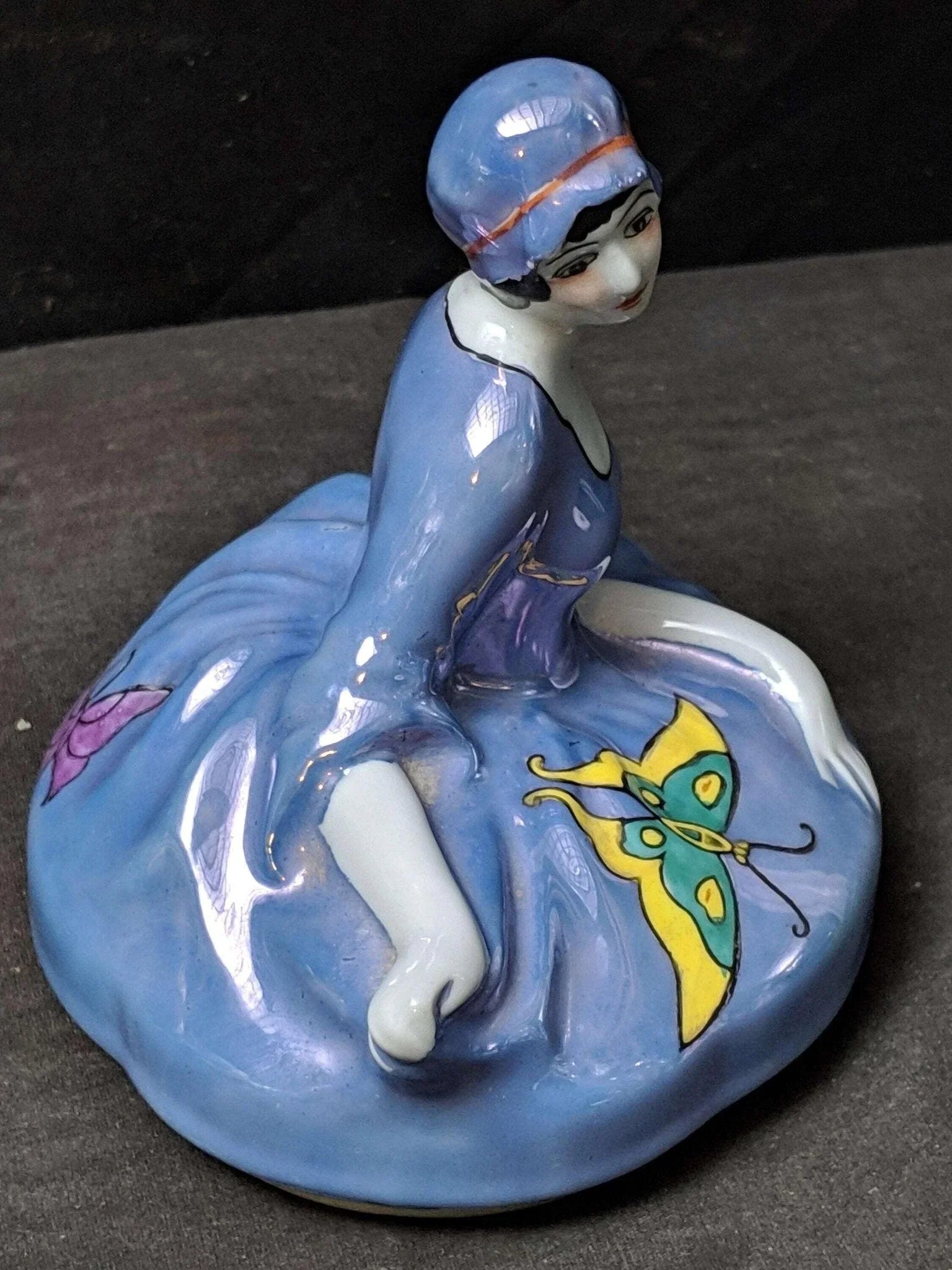 Lid for Figural Noritake Art Deco Powder Jar Woman Flapper Blue Lustre Butterfli