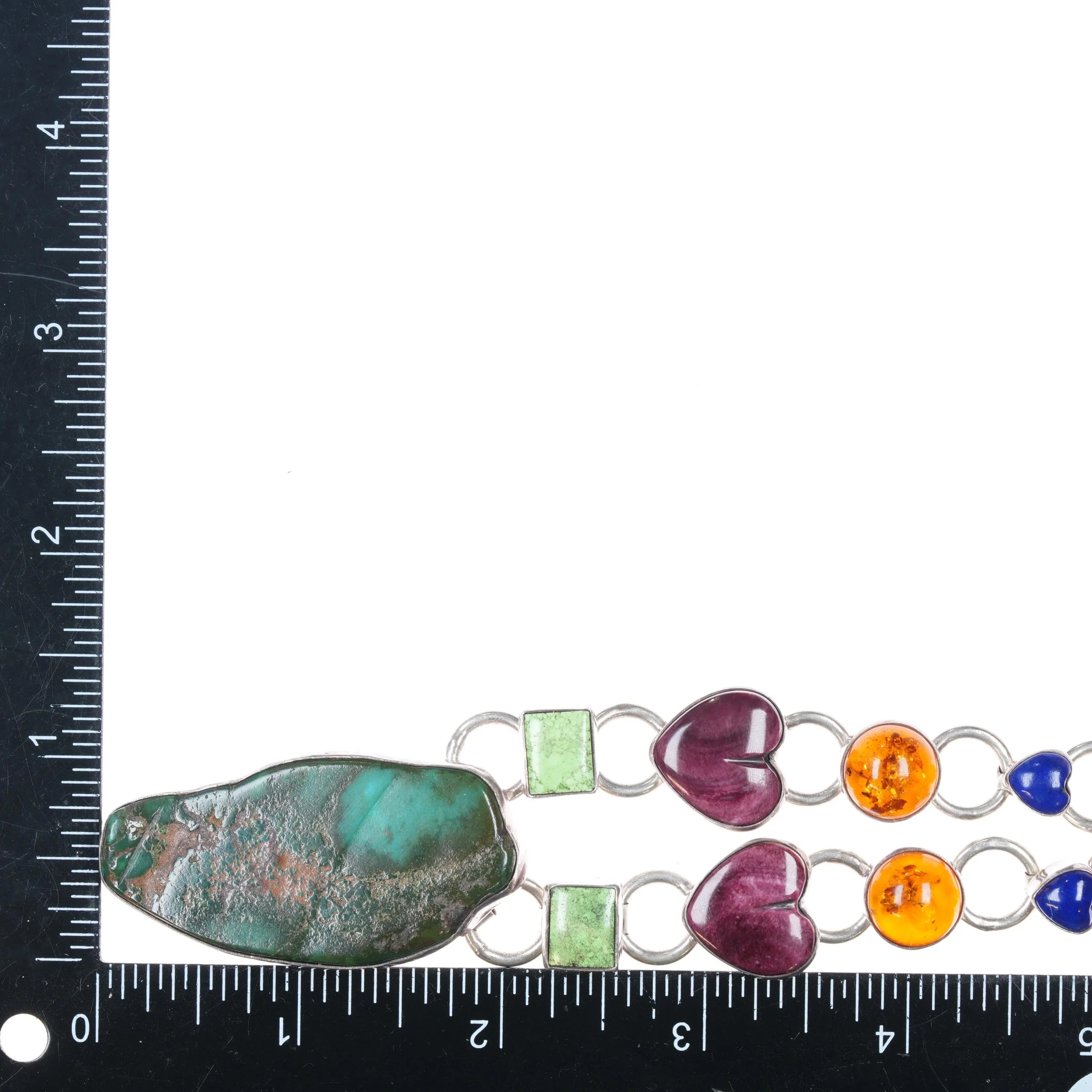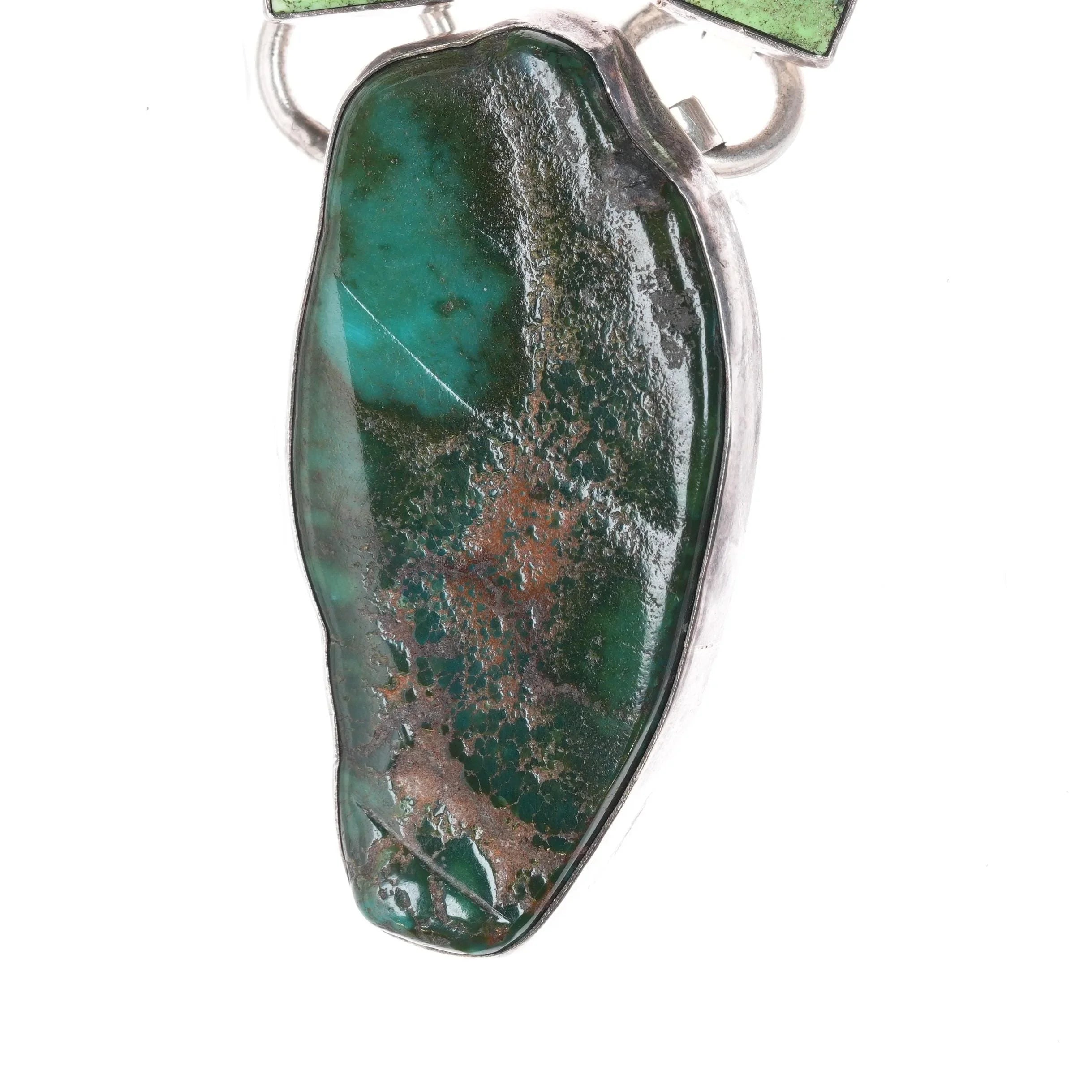 Linda Johnson Navajo sterling silver Royston turquoise, gaspeite hearts necklace