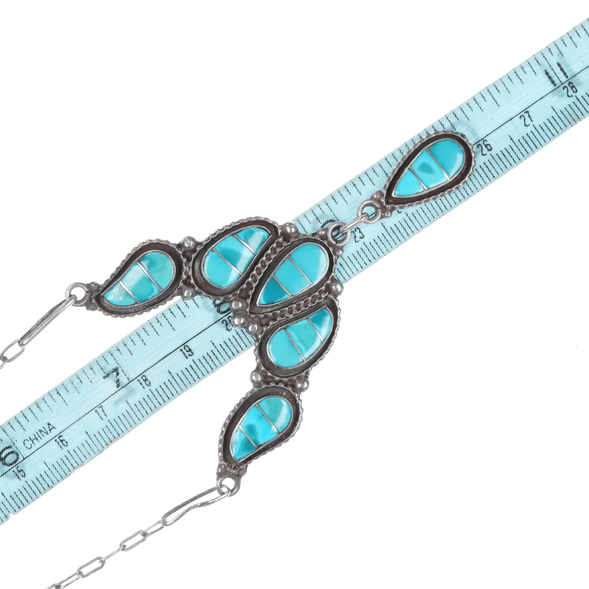Lowsayatee Zuni sterling and turquoise necklace 16" necklace with no issues. Other measurements in pics.