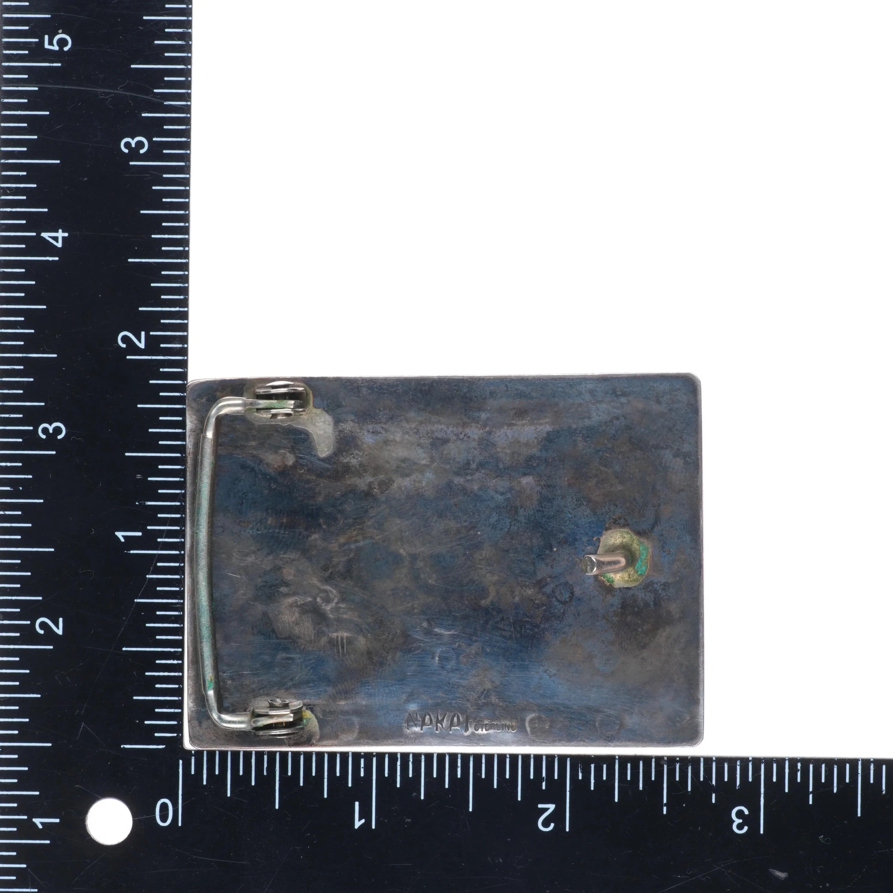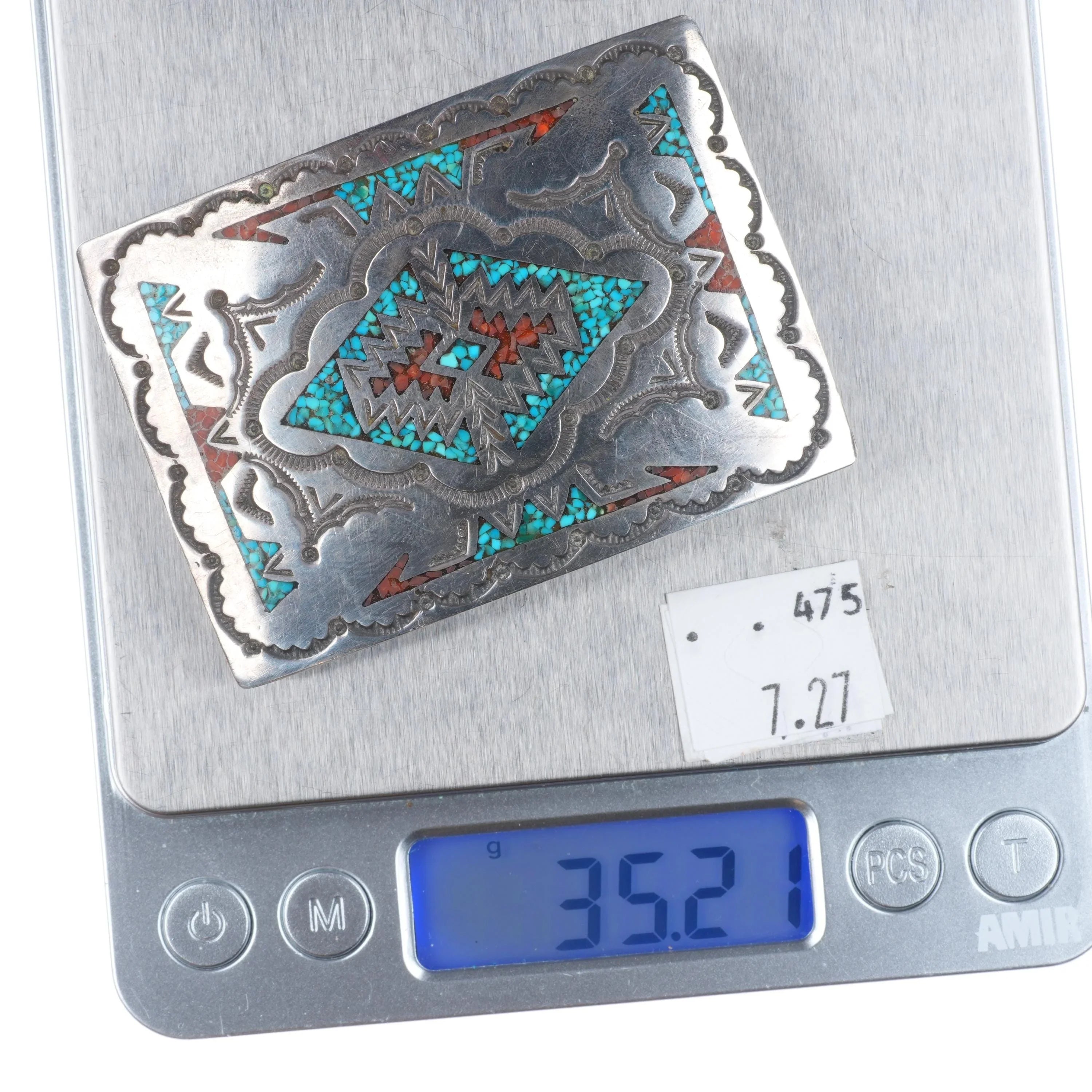 Nakai Navajo sterling silver chip inlay turquoise vintage belt buckle