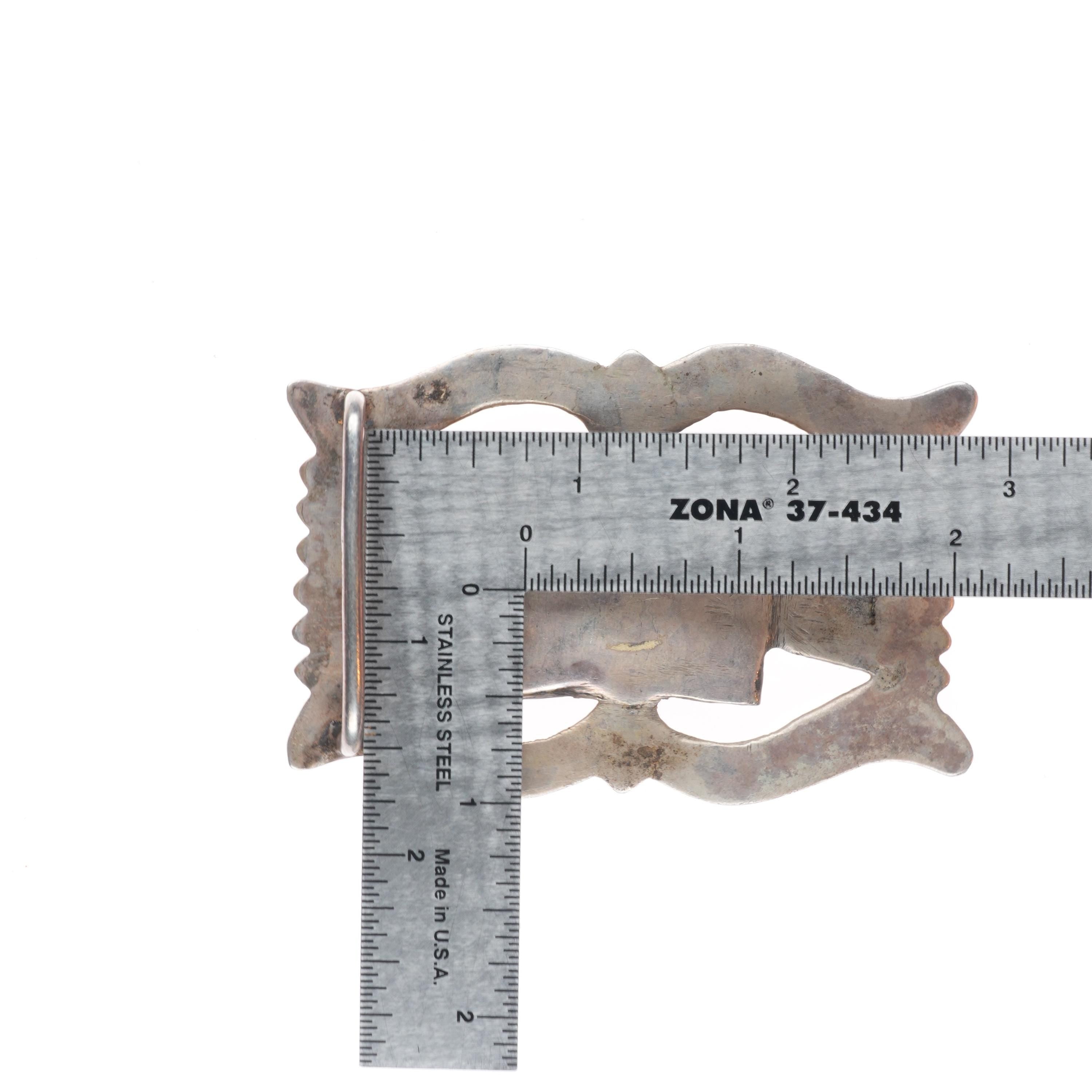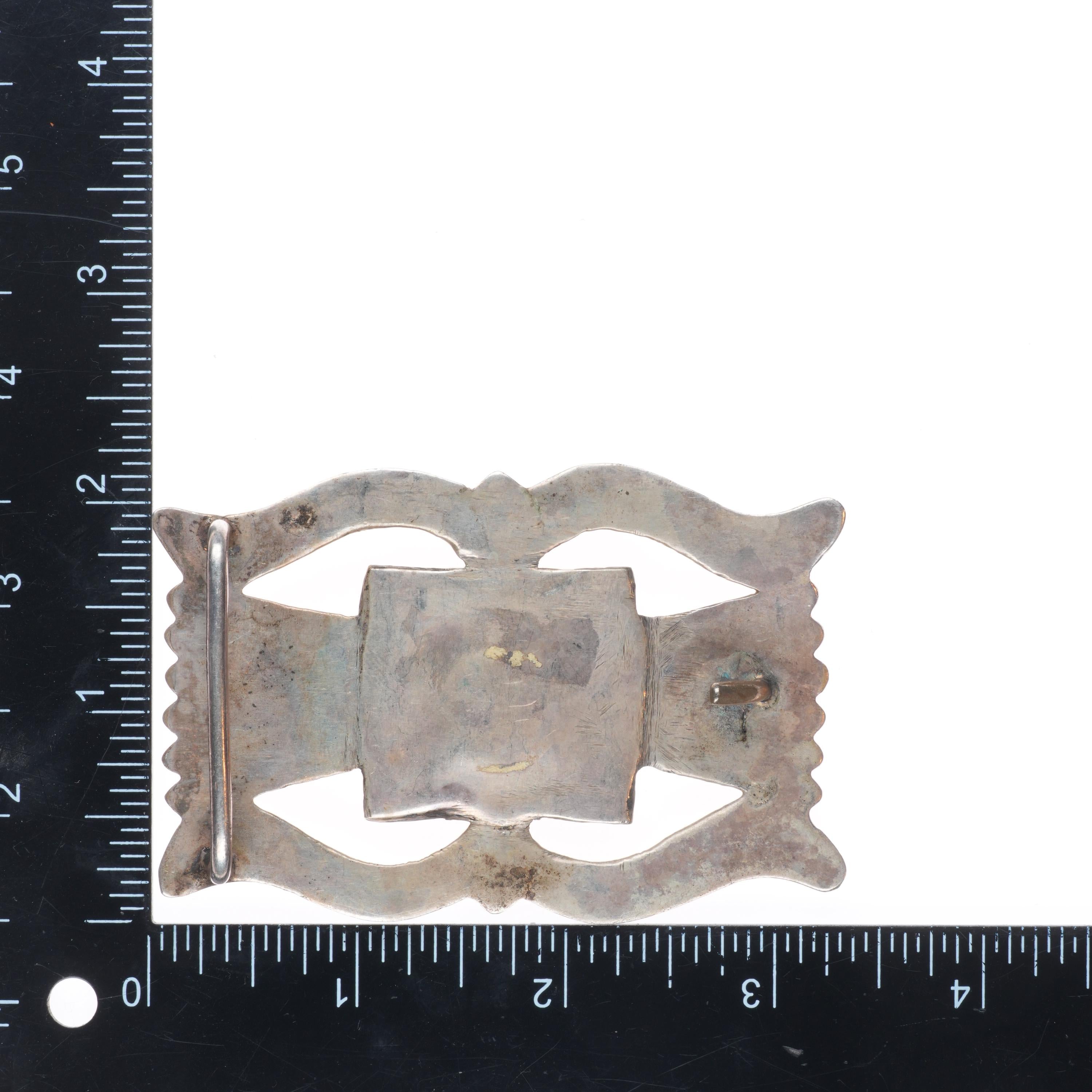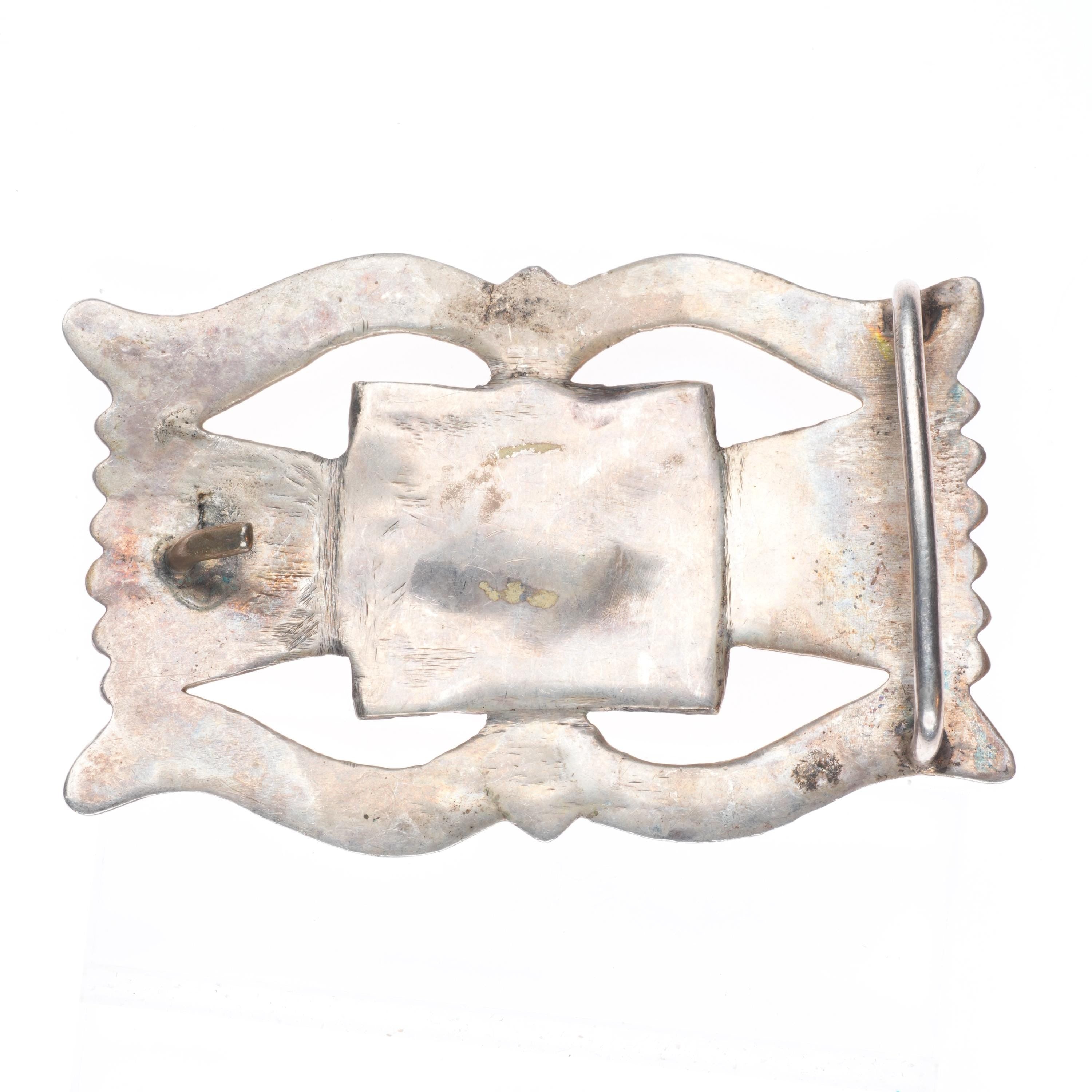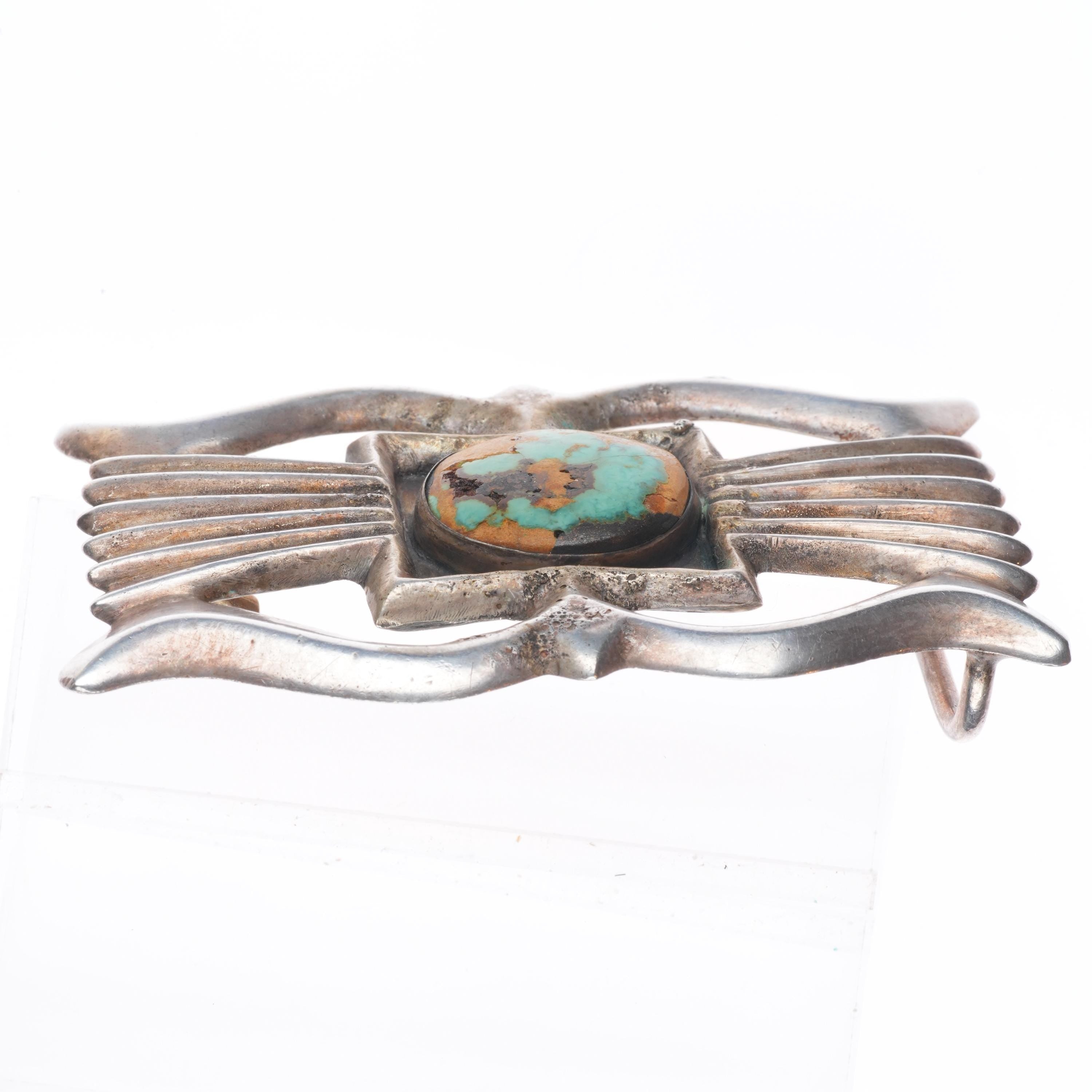 older Vintage Navajo cast sterling silver green turquoise belt buckle