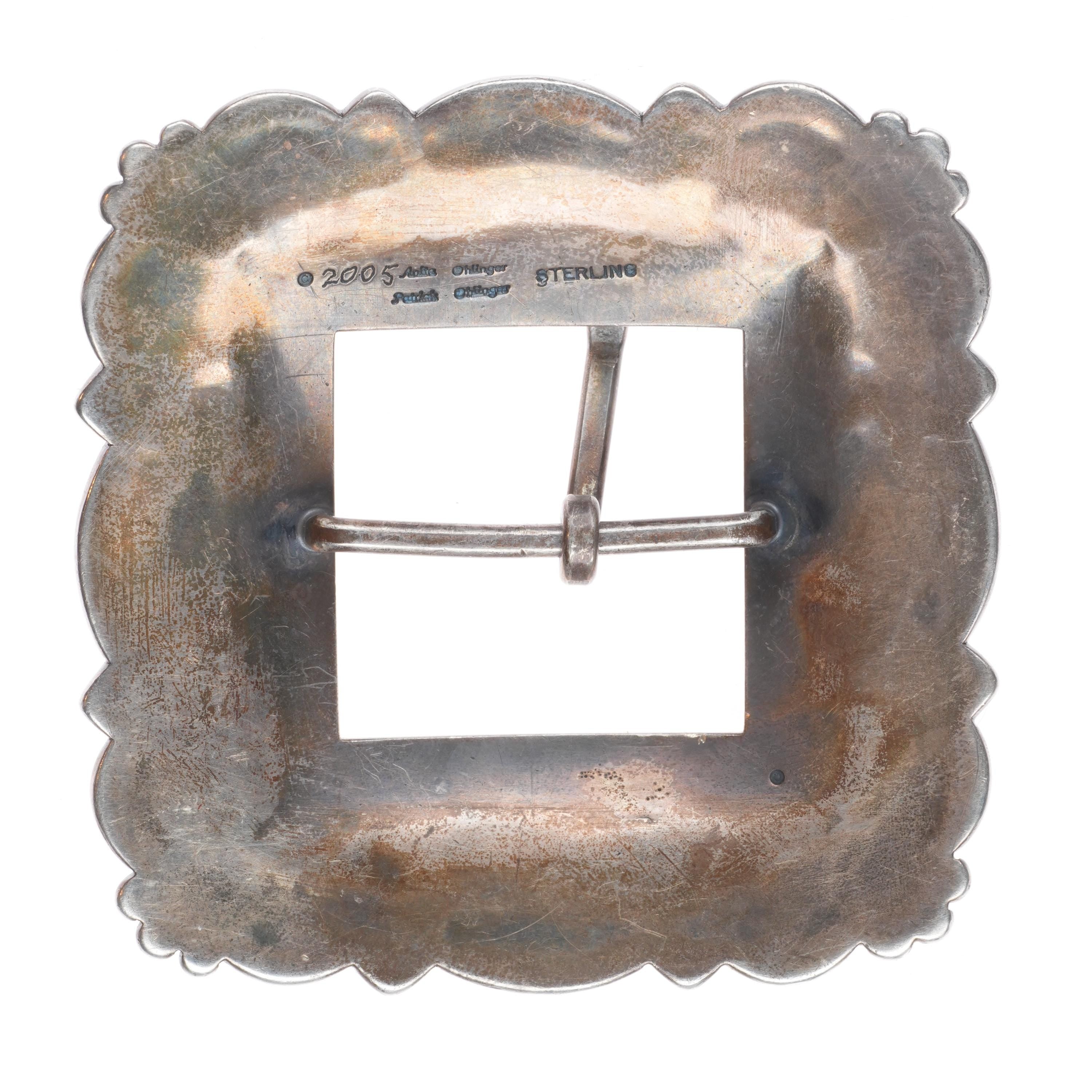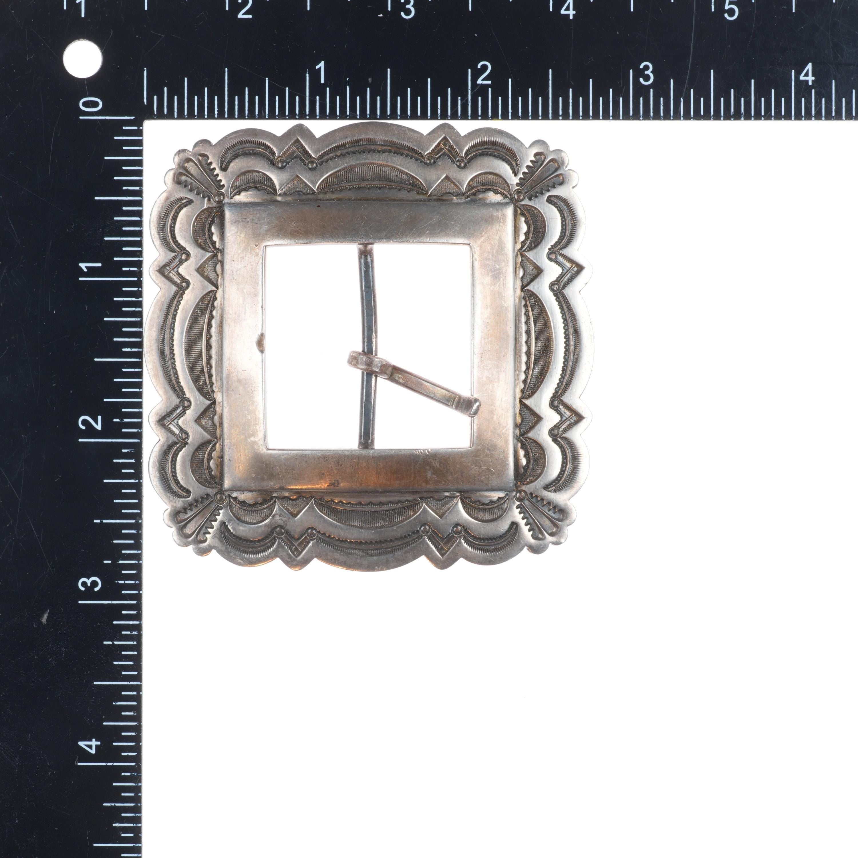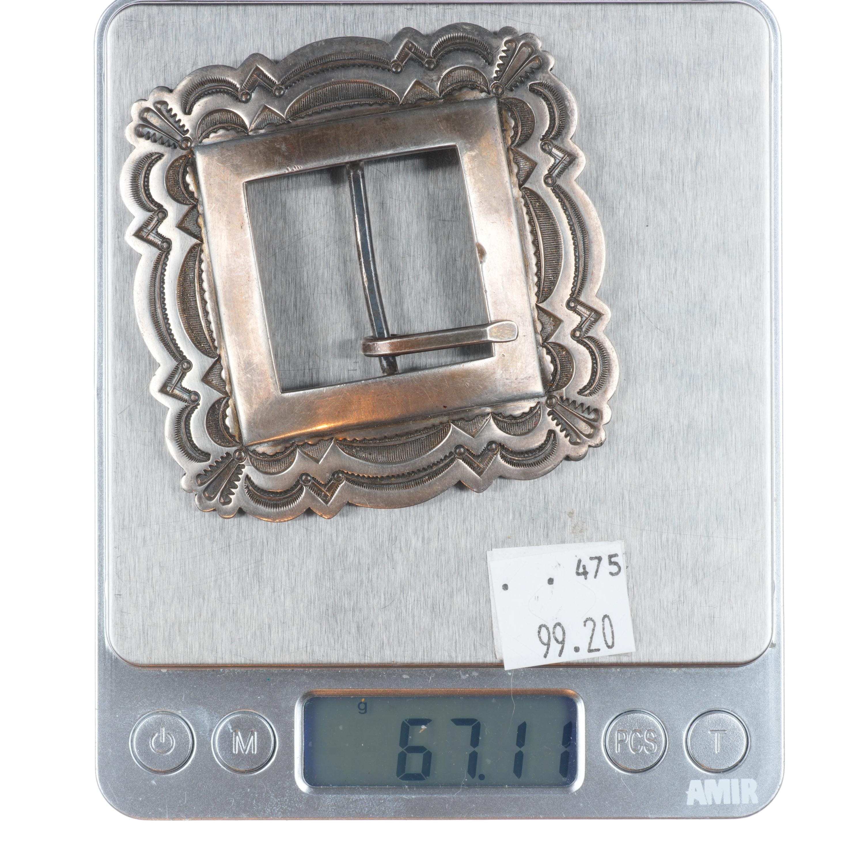 Patrick Ohlinger Southwestern sterling silver stamped belt buckle Navajo style