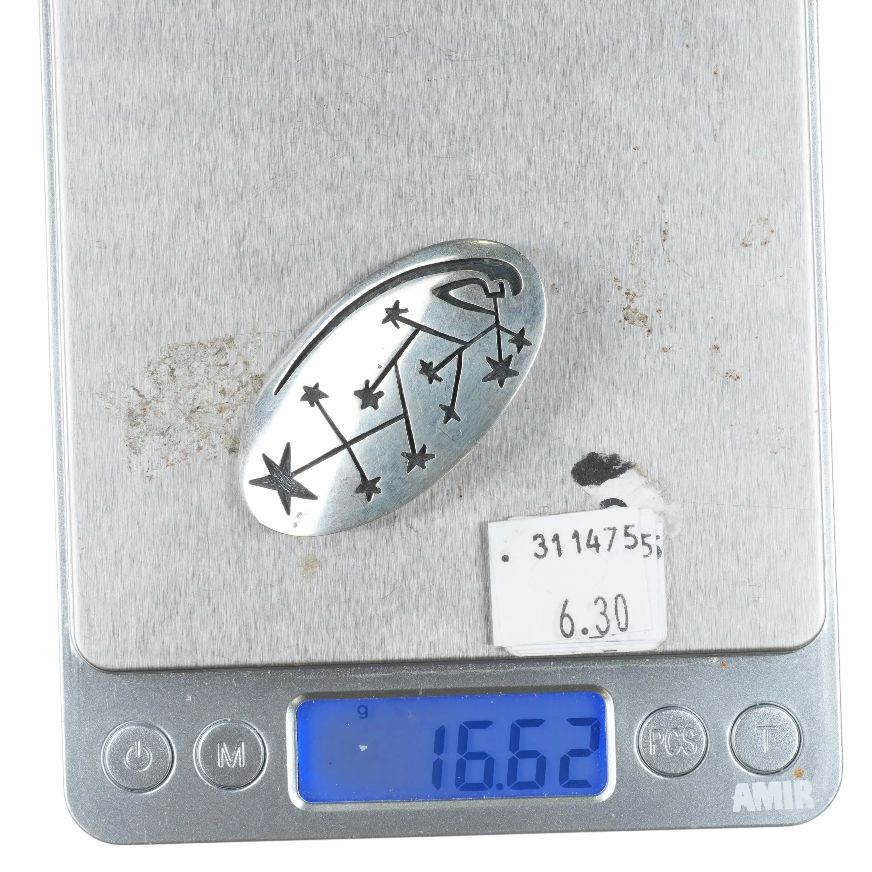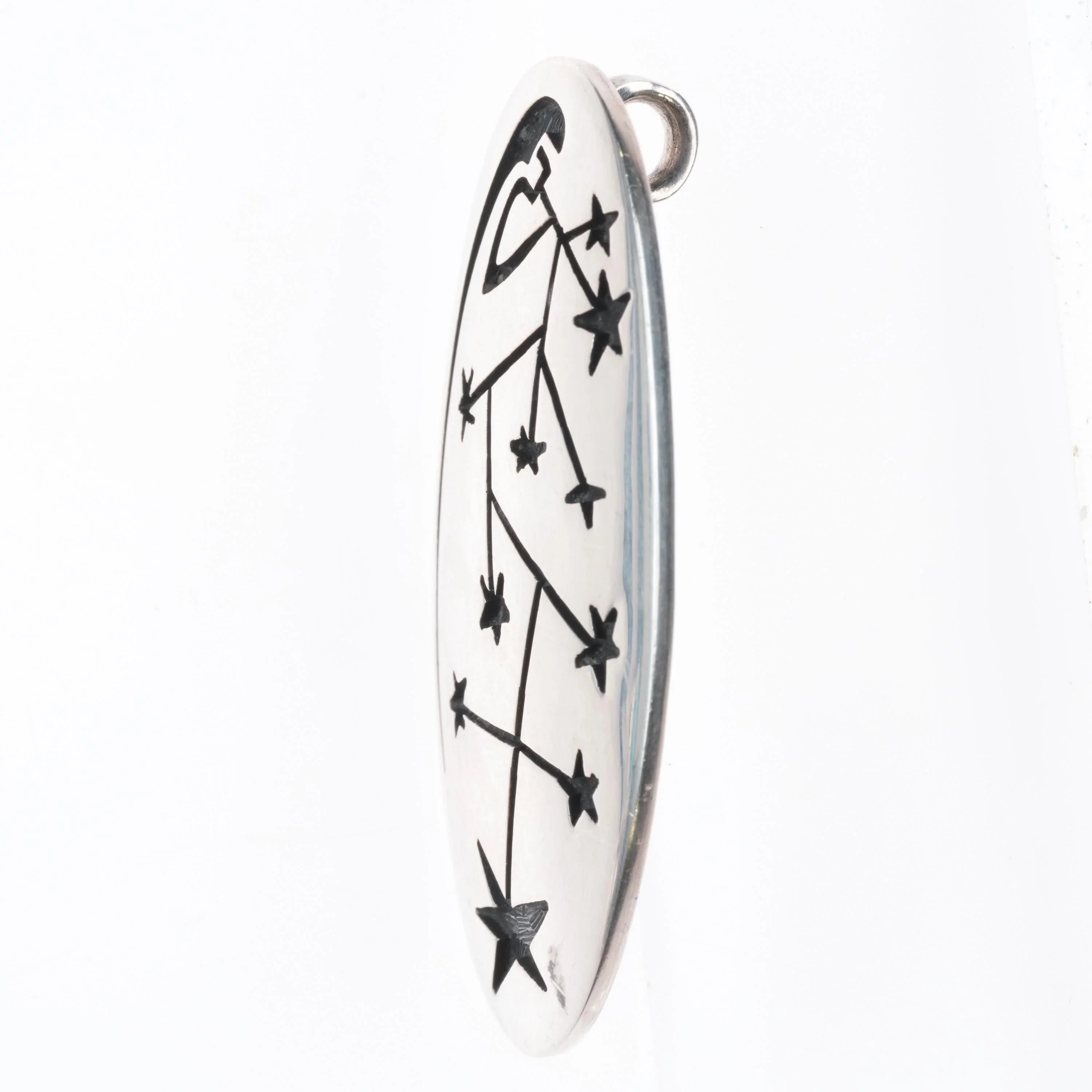 Phillip Honanie Hopi Overlay pendant/pin sterling silver flute player. Solid sterling silver, marked as shown with weight and measurements in the pictures. No damage or significant wear.