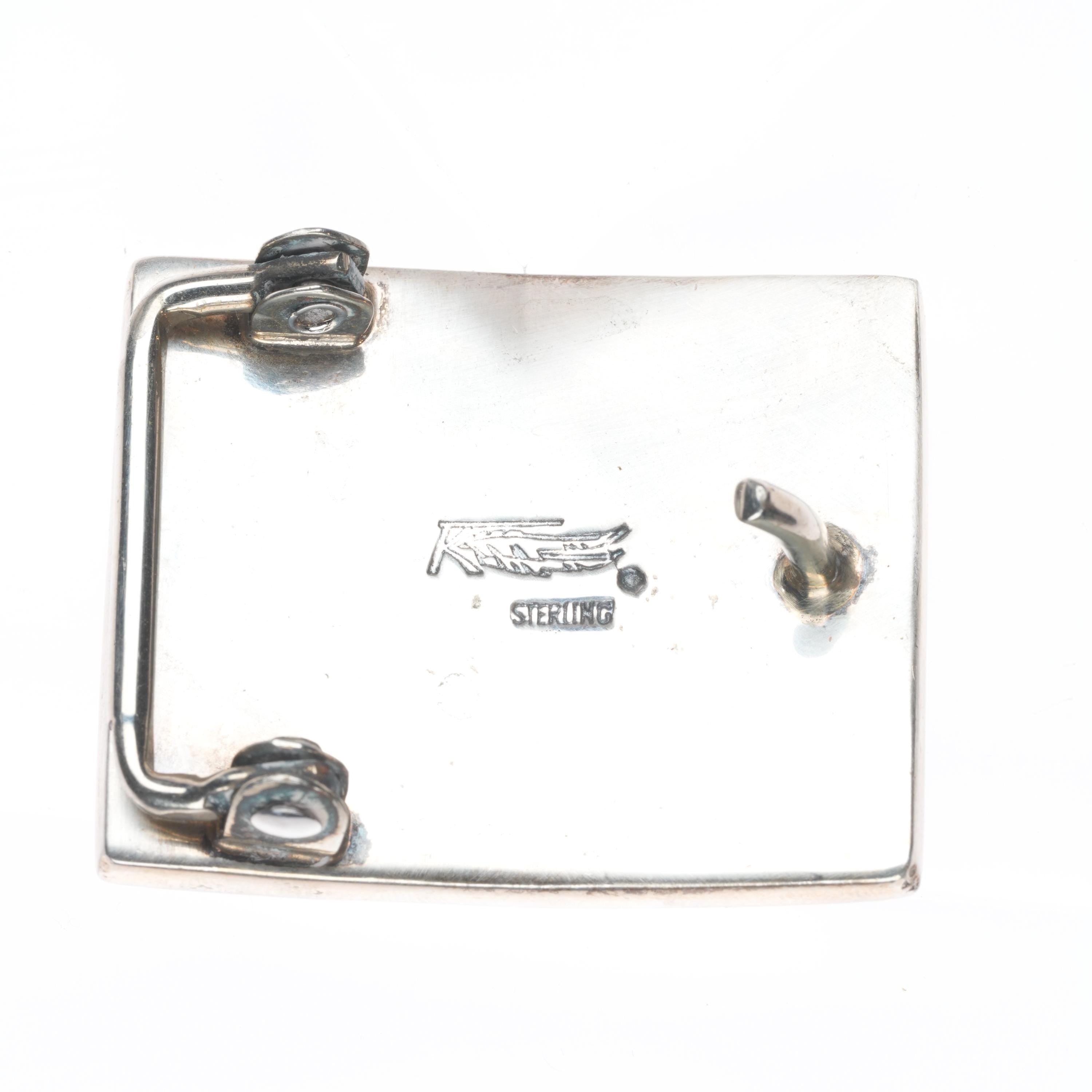 Ray Tracey Knifewing Navajo sterling silver, turquoise, onyx inlay belt buckle. Tested and guaranteed solid sterling silver. Weight and measurements in pictures, circa last quarter of the 20th century. Fits a 1" belt.