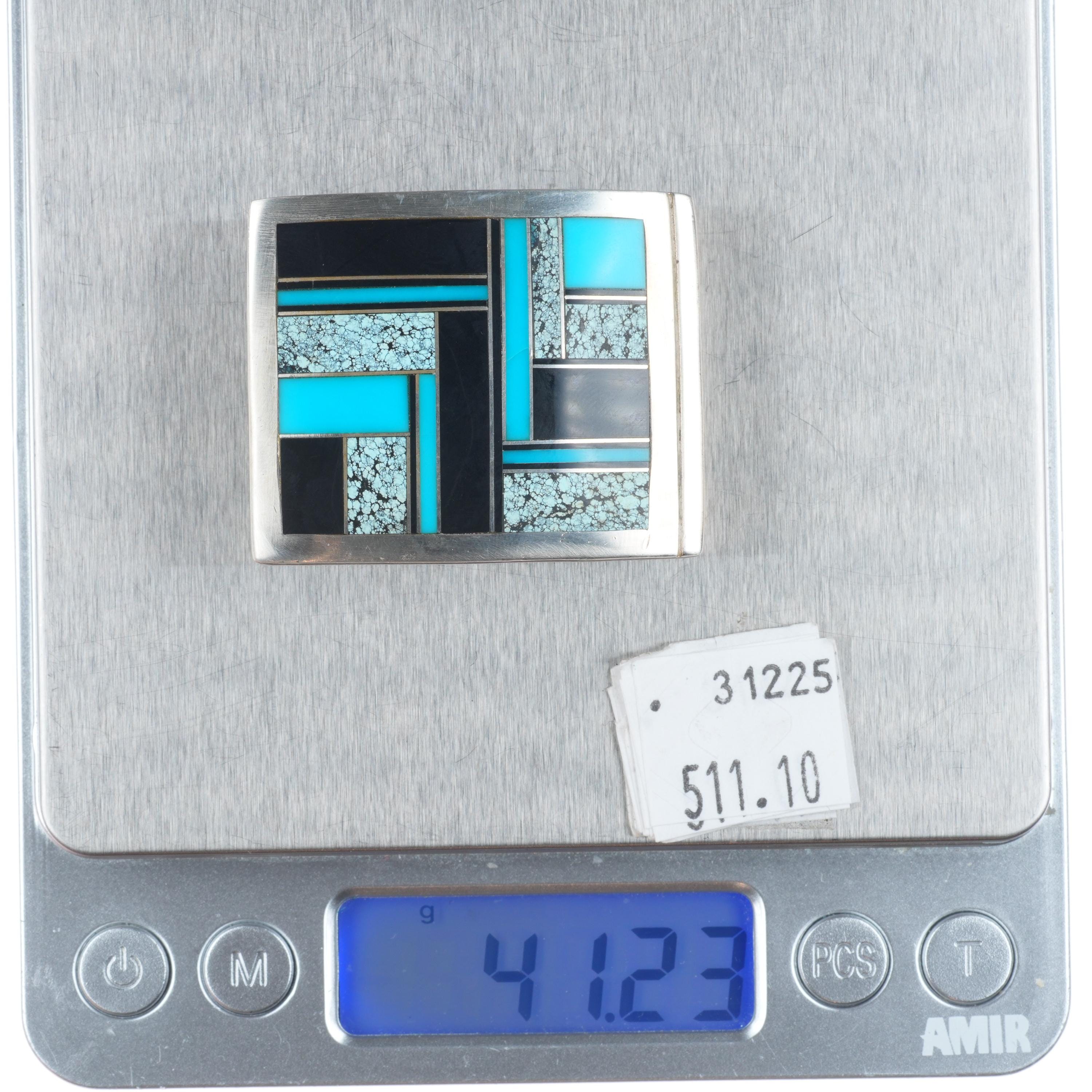 Ray Tracey Knifewing Navajo sterling silver, turquoise, onyx inlay belt buckle