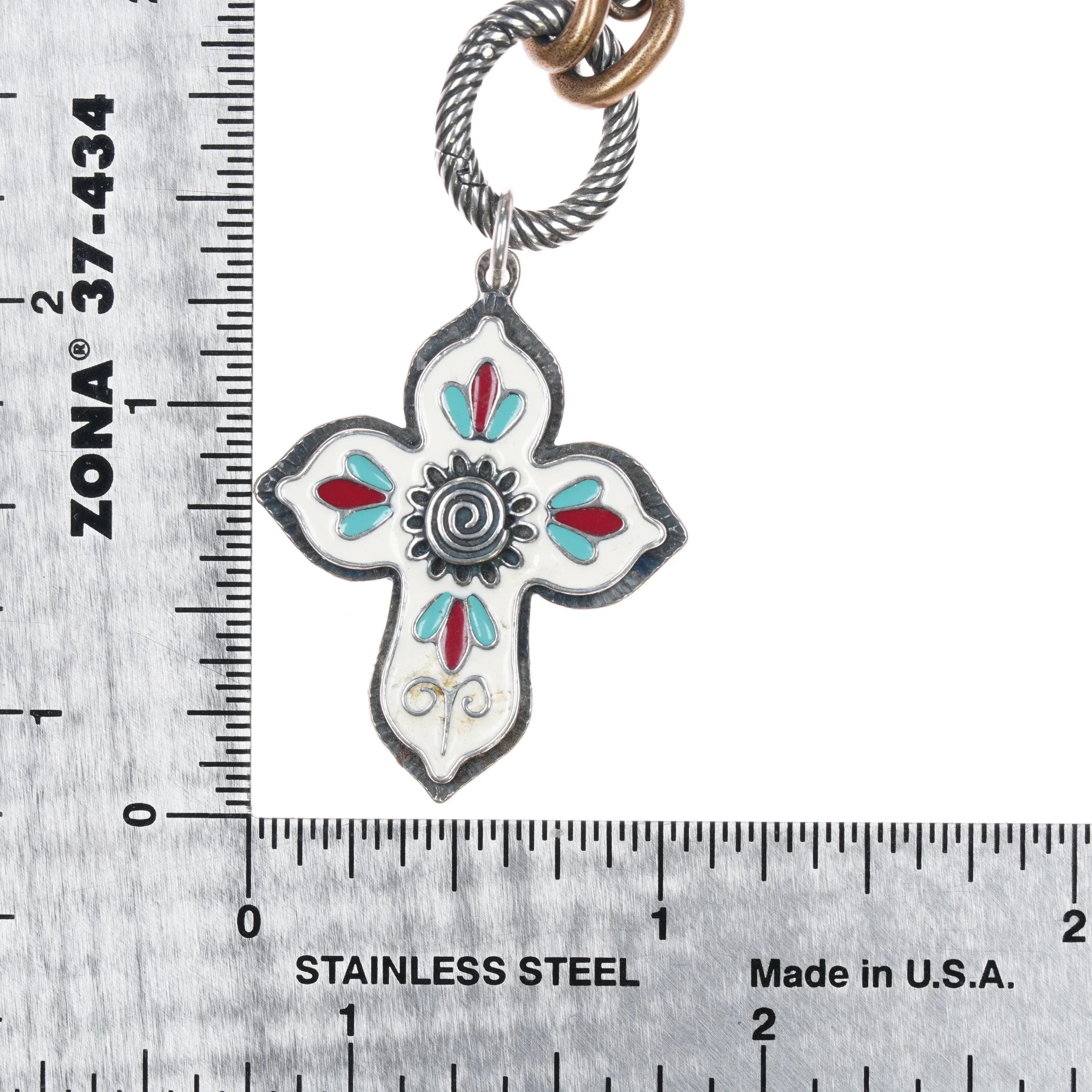 Retired James Avery Enamel Cruz De La Flor Cross pendant 30" necklace sterling silver. Weight and measurements is in the pictures. Selling the exact piece shown in great condition with uncut jump ring.