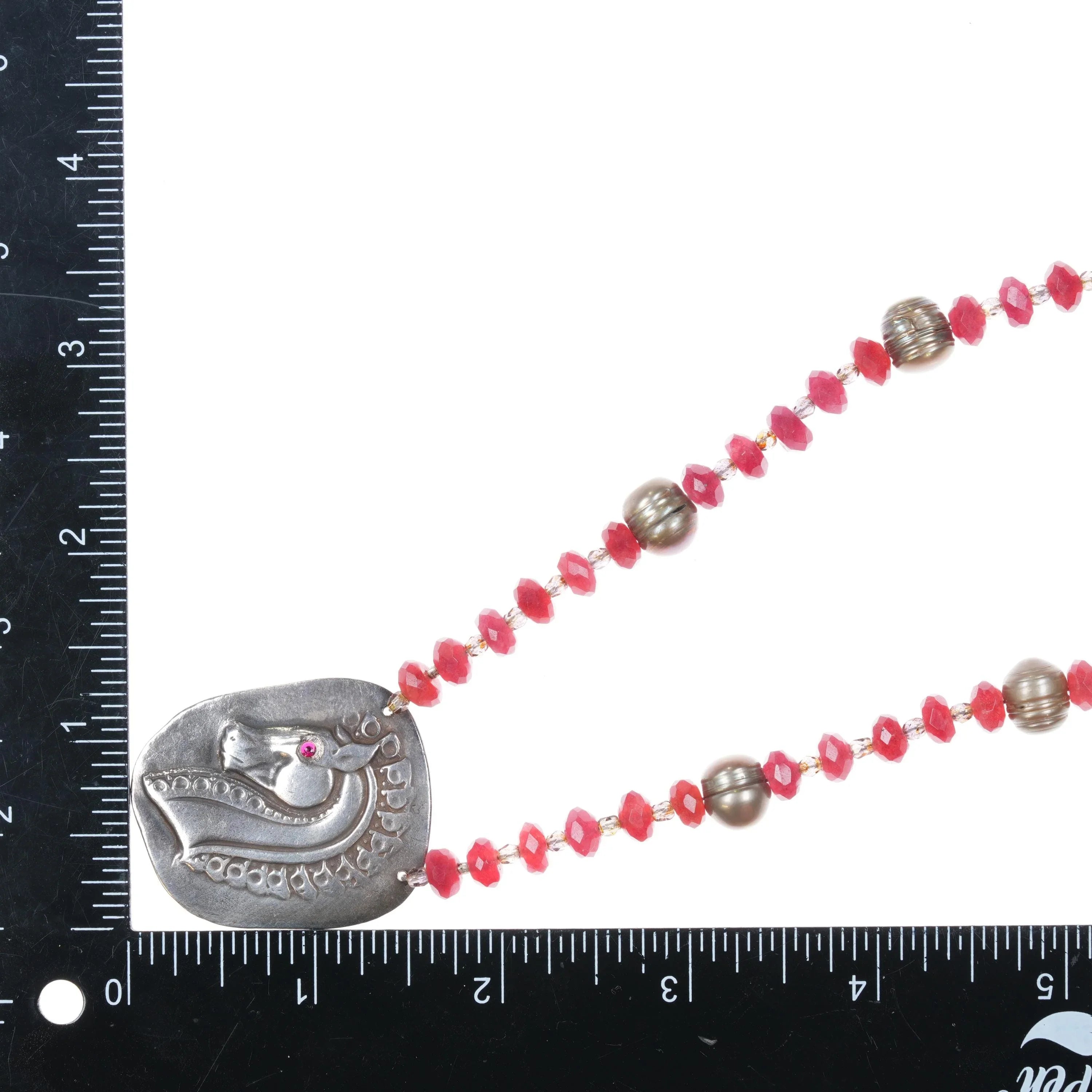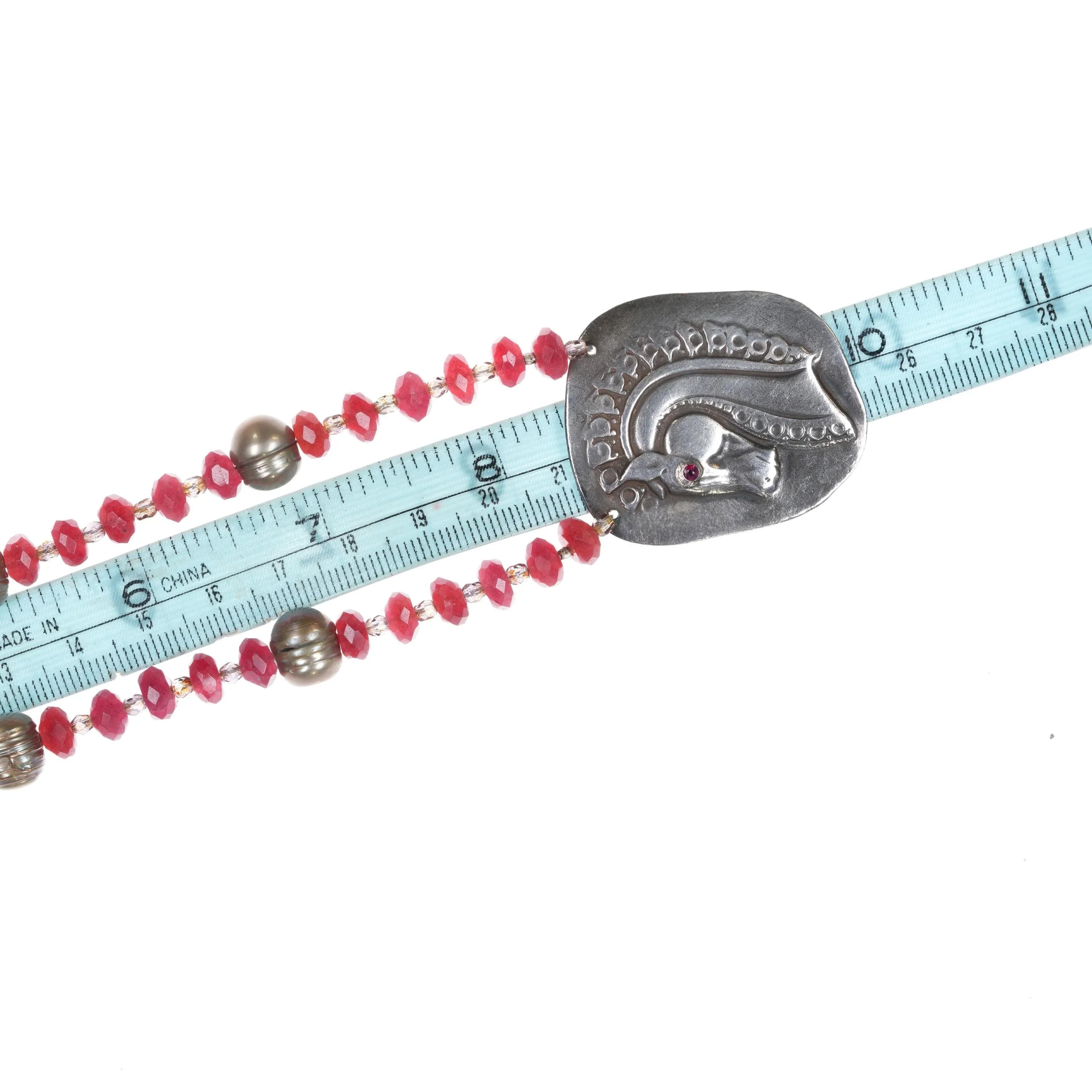 Retro JAC 999 Fine siver Ruby Beads Modernist Horse head necklace sterling