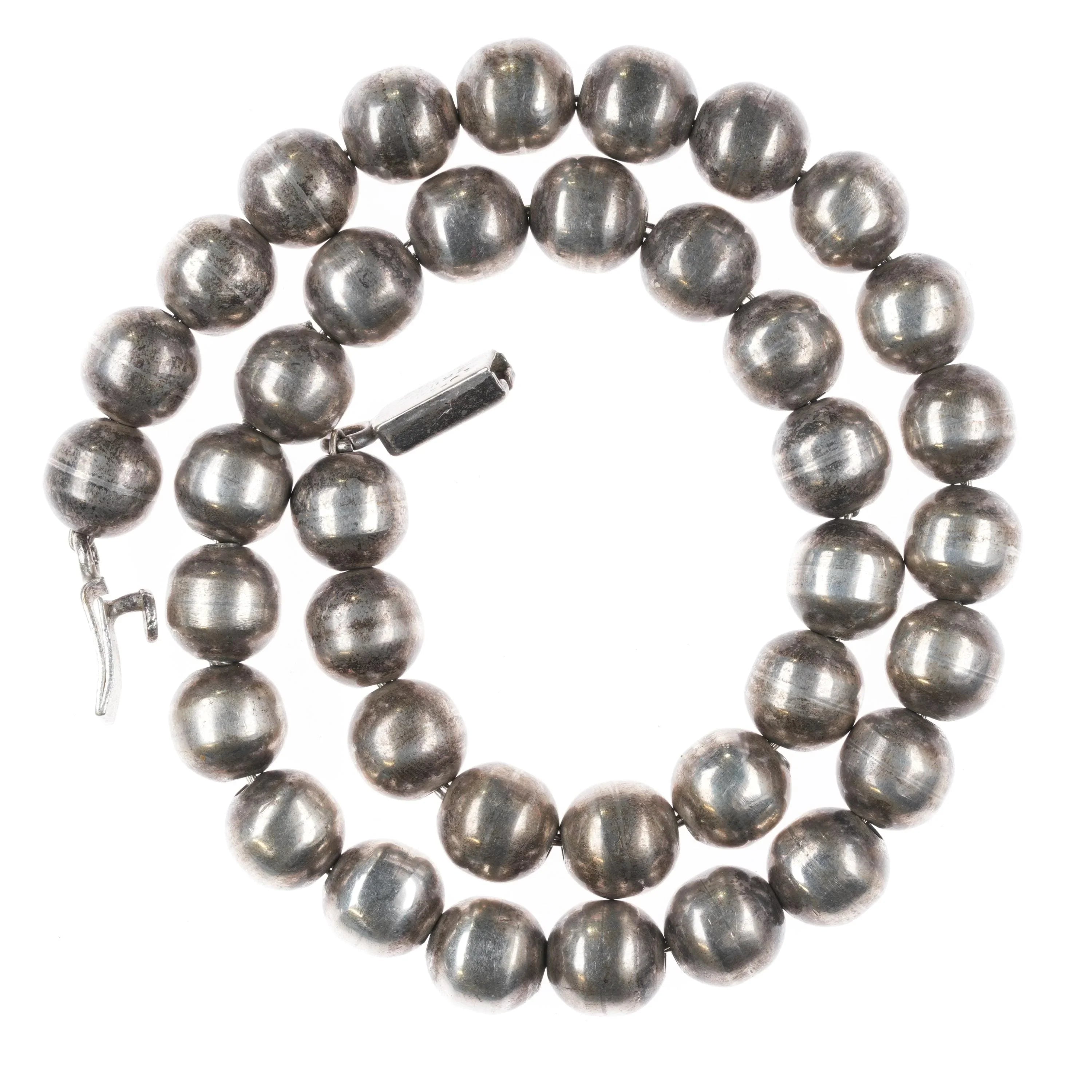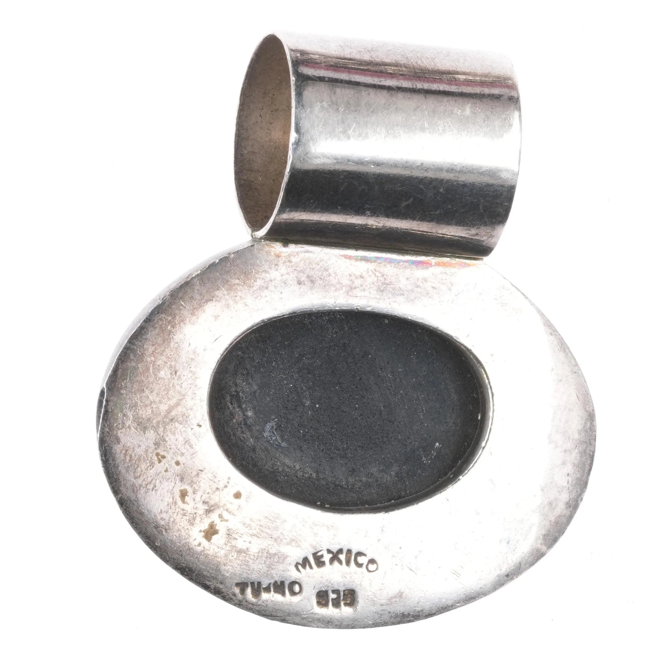 Retro Mexican sterling silver beaded necklace w/ modernist onyx pendant