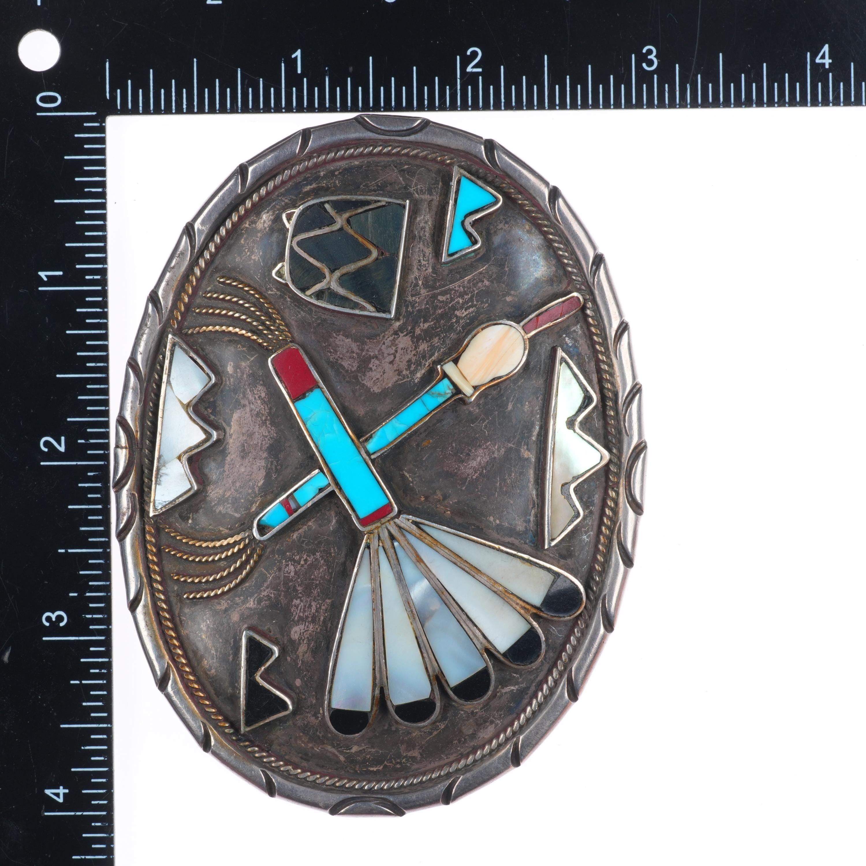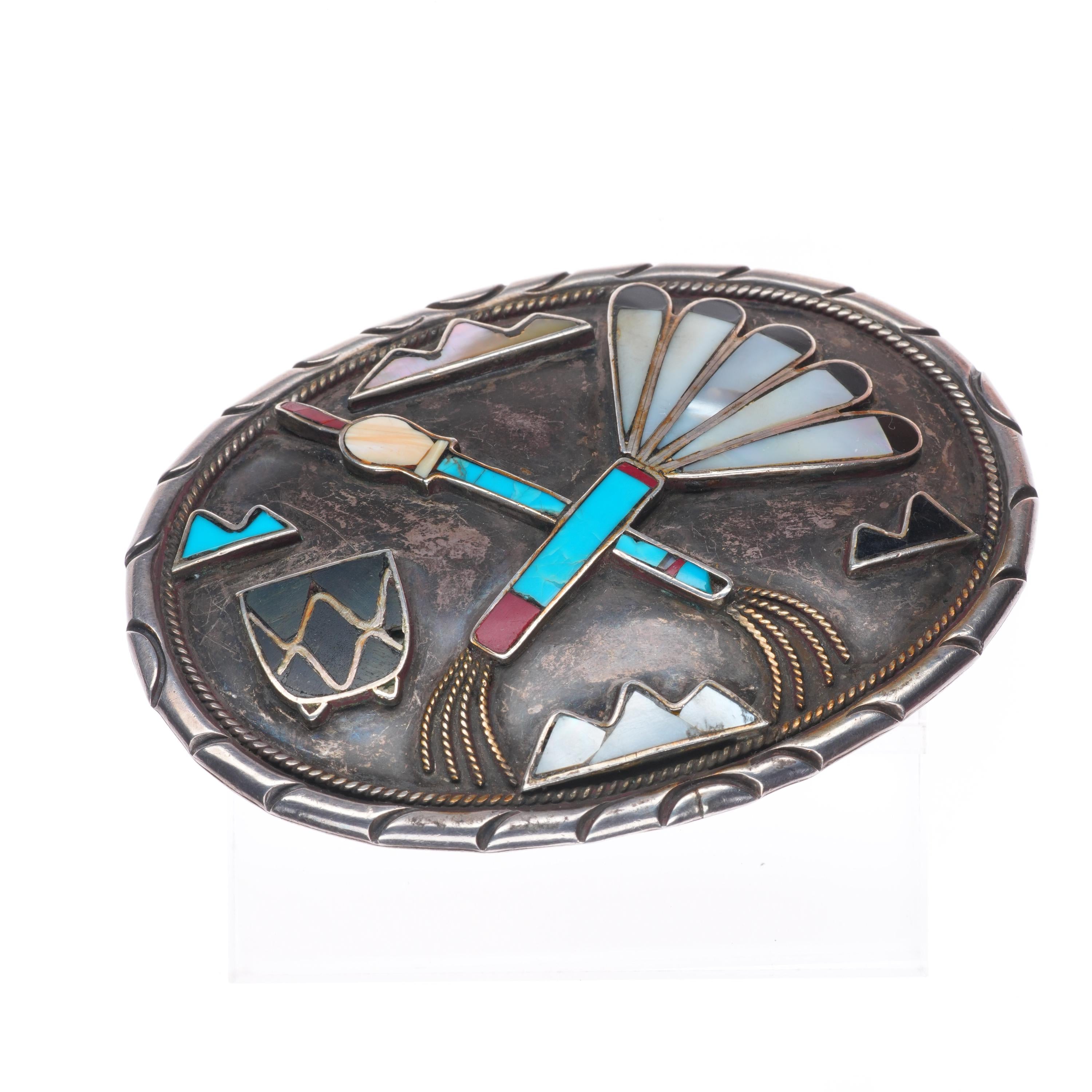 Sibert-Janita Kallestewa Zuni Vintage sterling silver channel inlay belt buckle