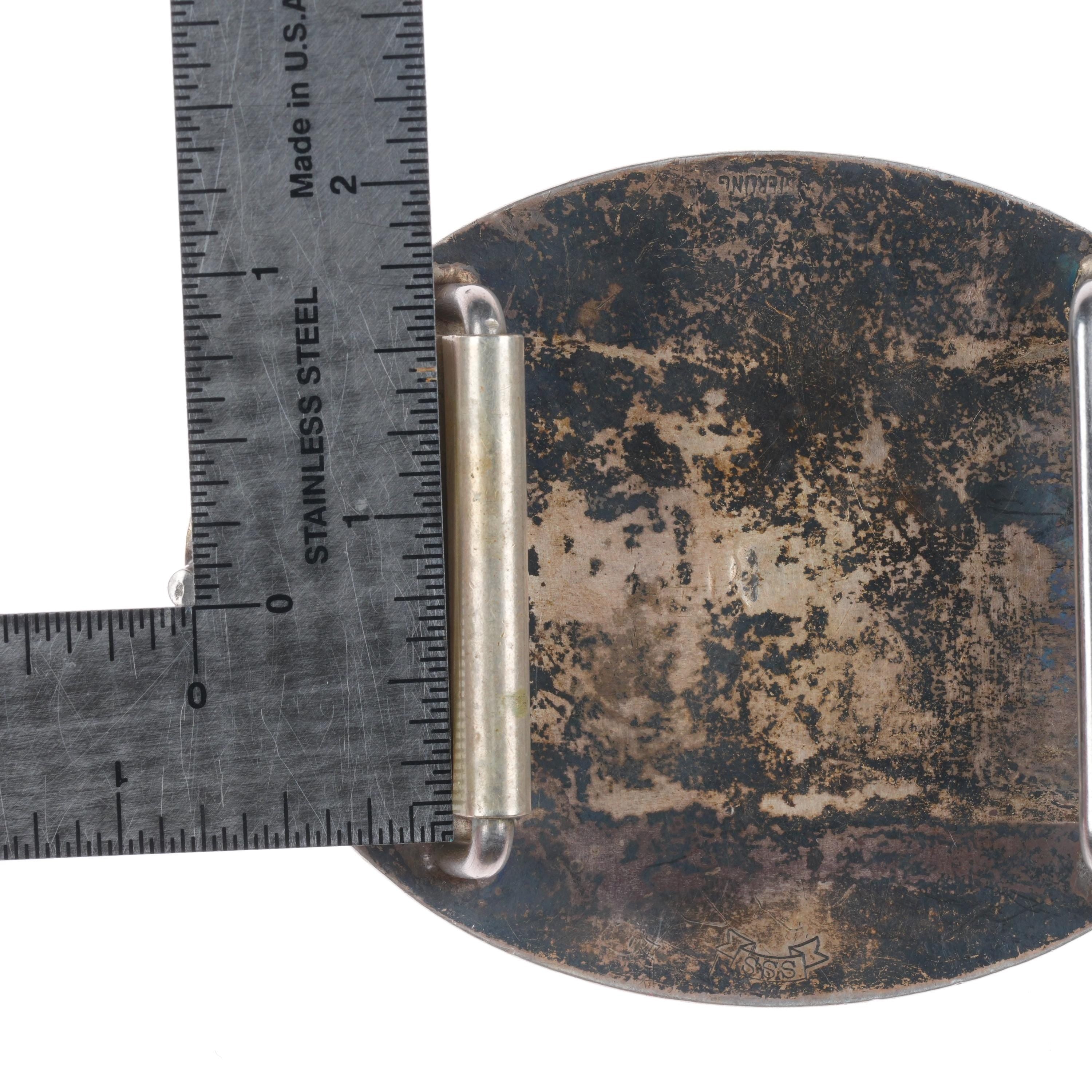 SSS Vintage Southwestern sterling silver horse busts cowboy/cowgirl belt buckle. Fits up to a 1.5" belt. Tested and guaranteed solid sterling silver with weight and measurements in pictures. Fully functional. All items will likely have some age appropriate/expected wear, the older they are the more wear they should have. Circa third quarter of the 20th century..