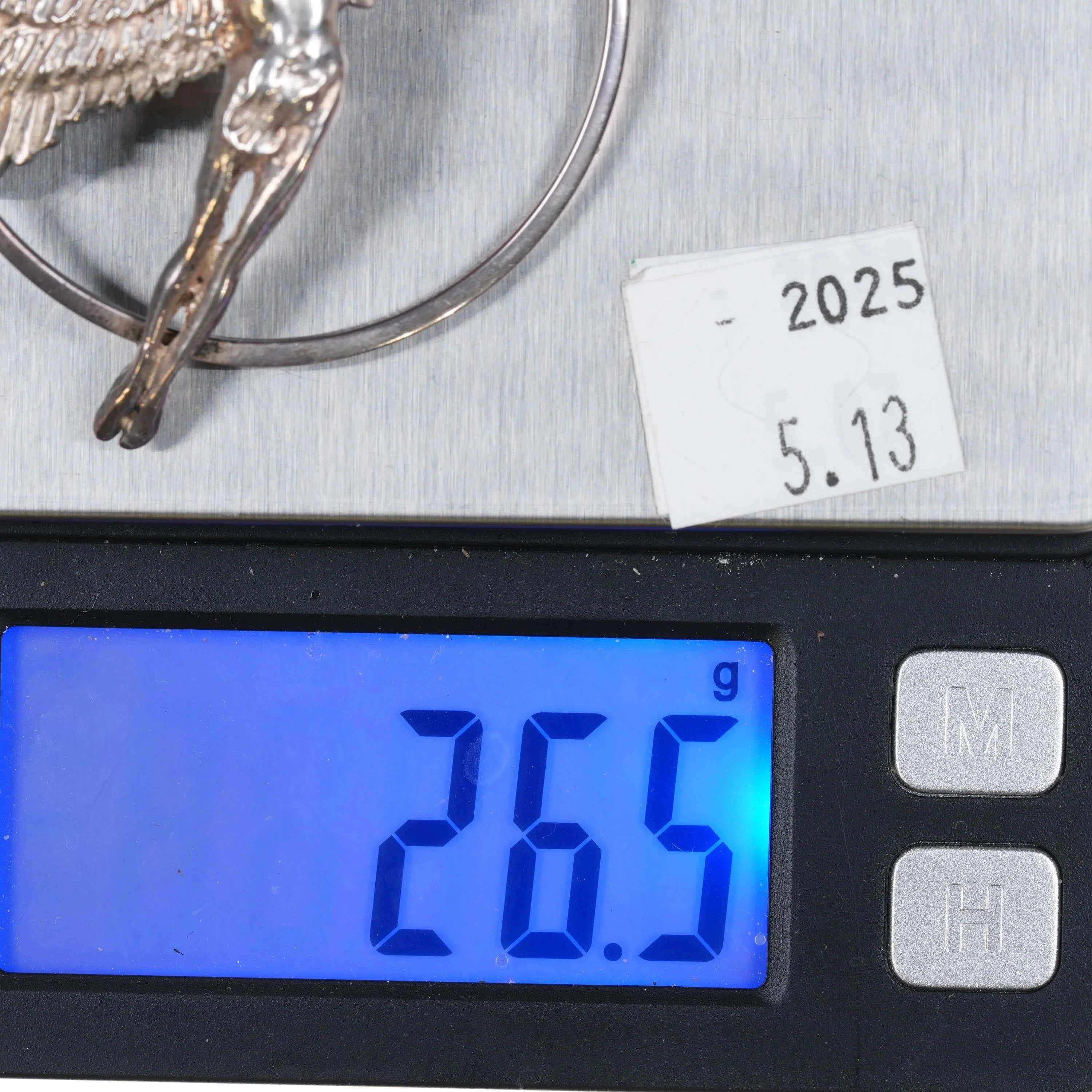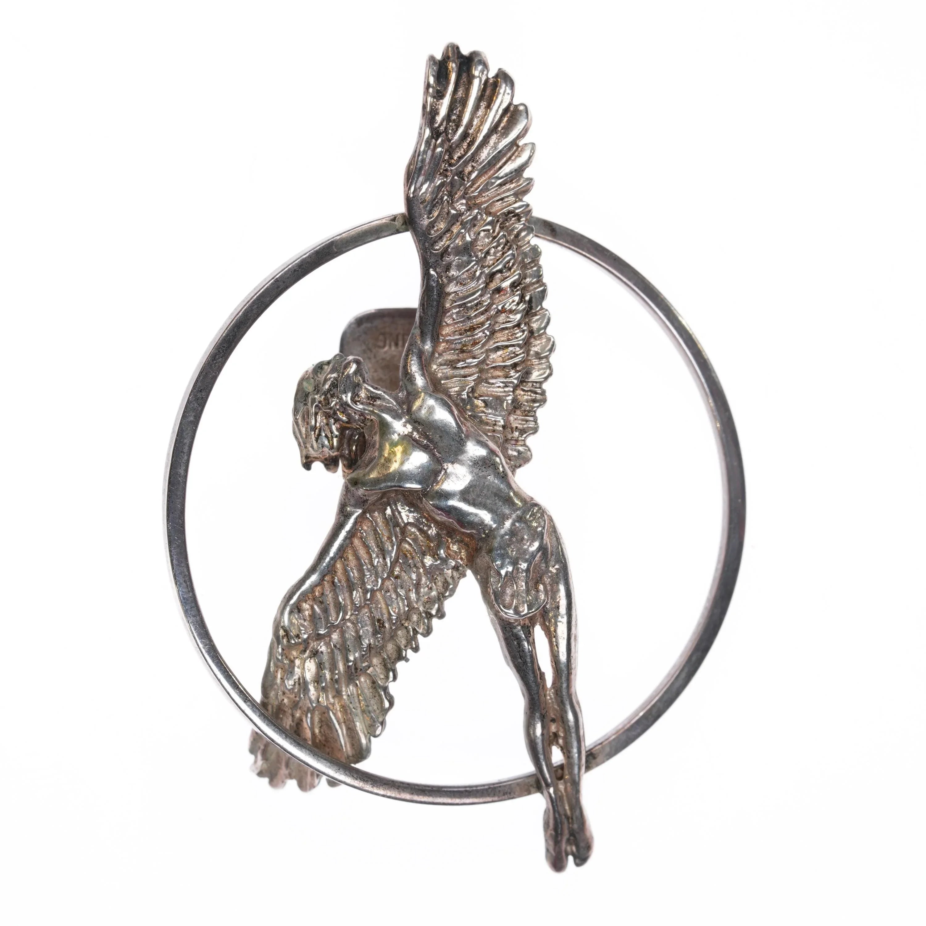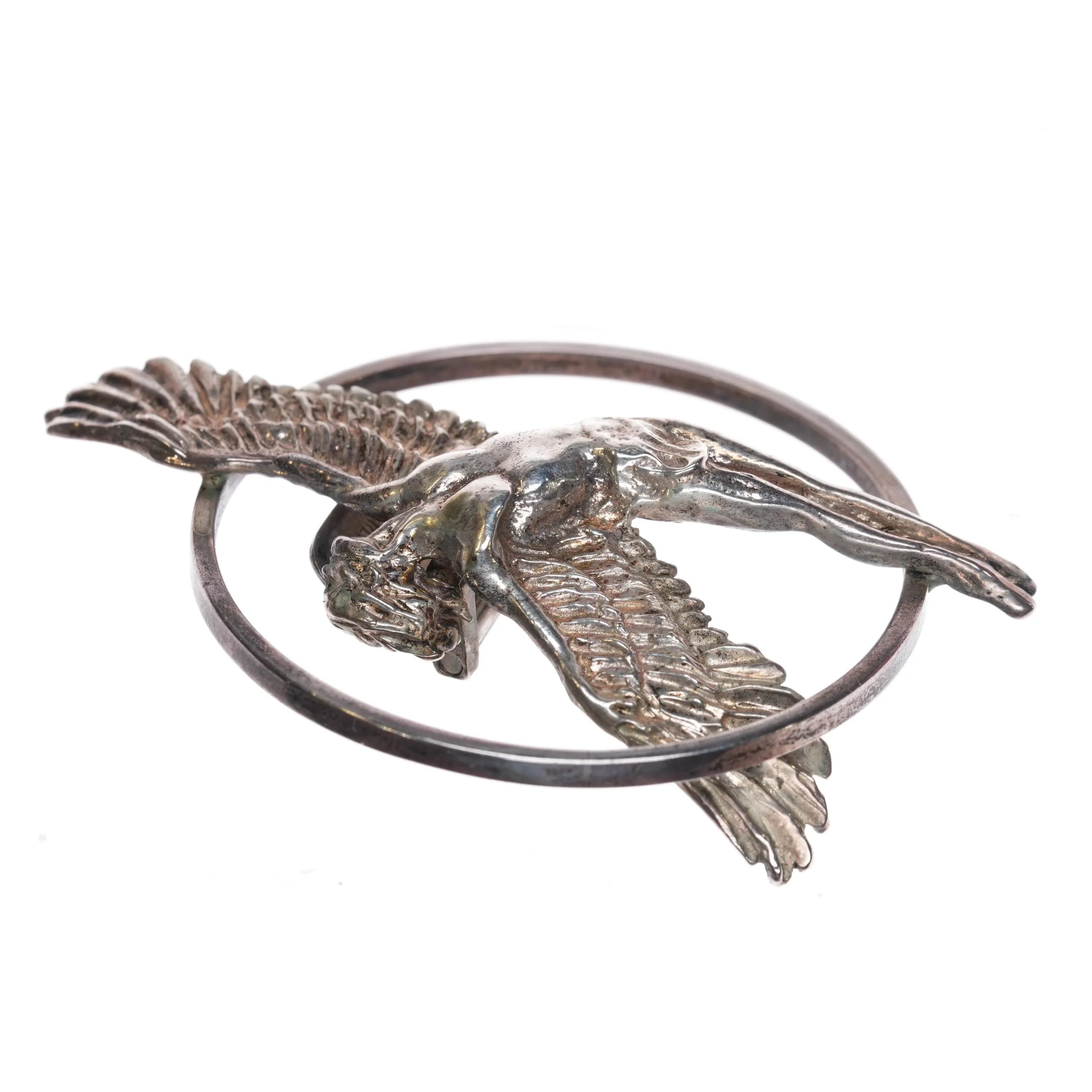 Sterling silver Icarus flying into the sun bolo slide/necklace pendant. Solid sterling no issues. Weight and measurements in pictures. Overall good condition, tested sterling, marked as shown.
