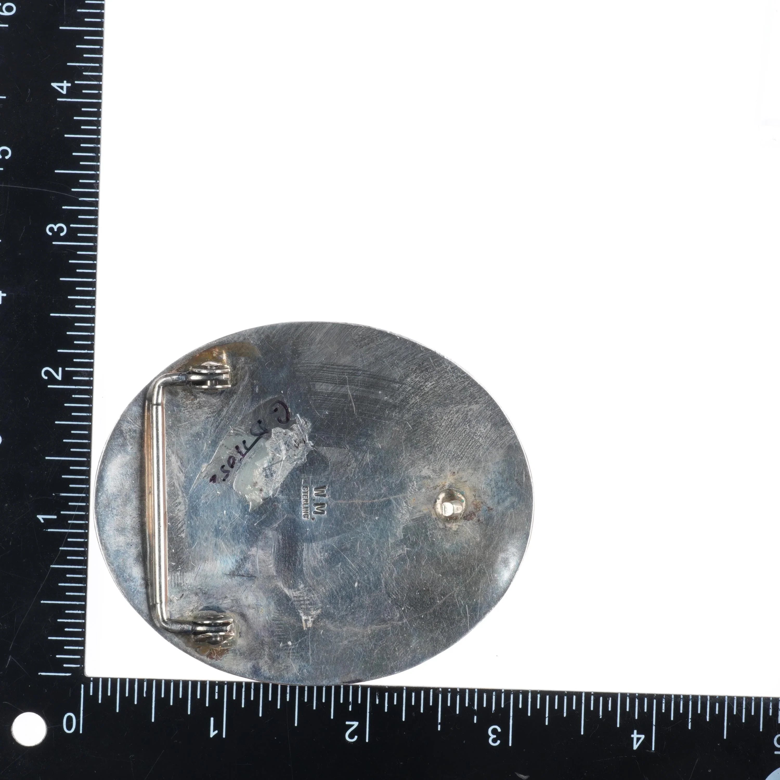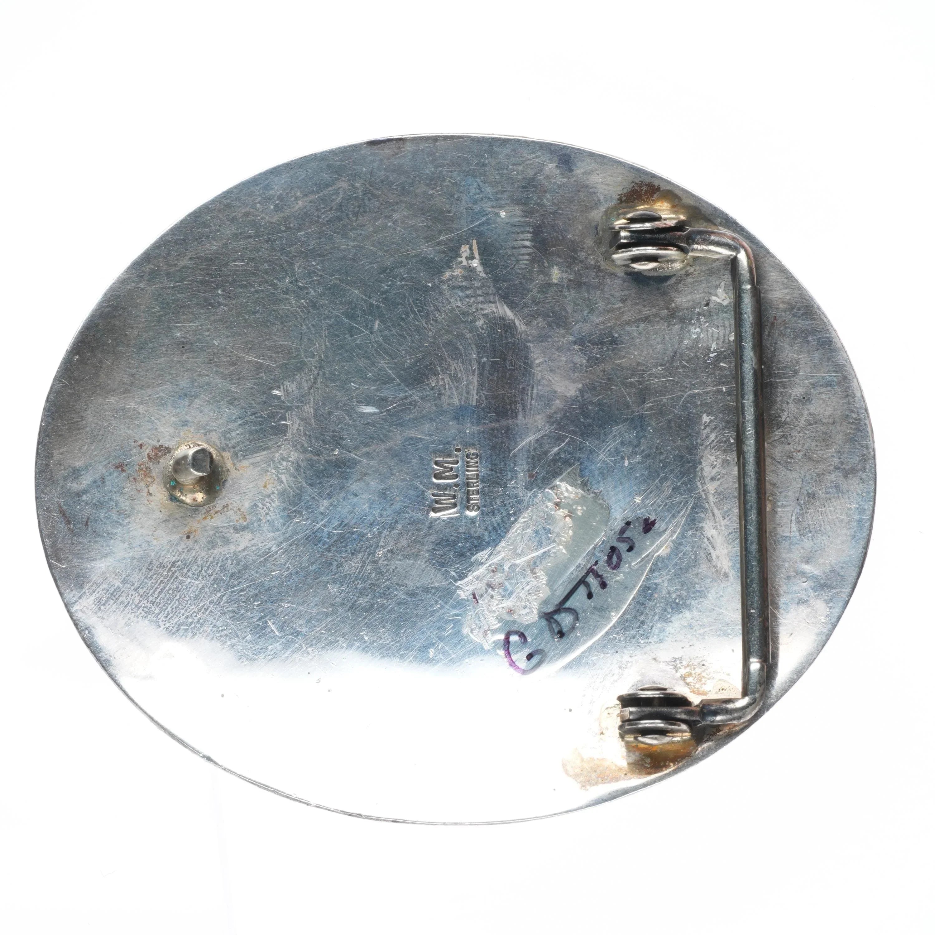 Sterling Silver Navajo ShadowBox Kingman Turquoise Belt Buckle Wilbur Muskett. Fits up to a 1.5" belt. Tested and guaranteed solid sterling silver with weight and measurements in pictures. Fully functional, stones are secure with no damage.. All items will likely have some expected wear, the older they are the more wear they should have. Circa last quarter of the 20th century.