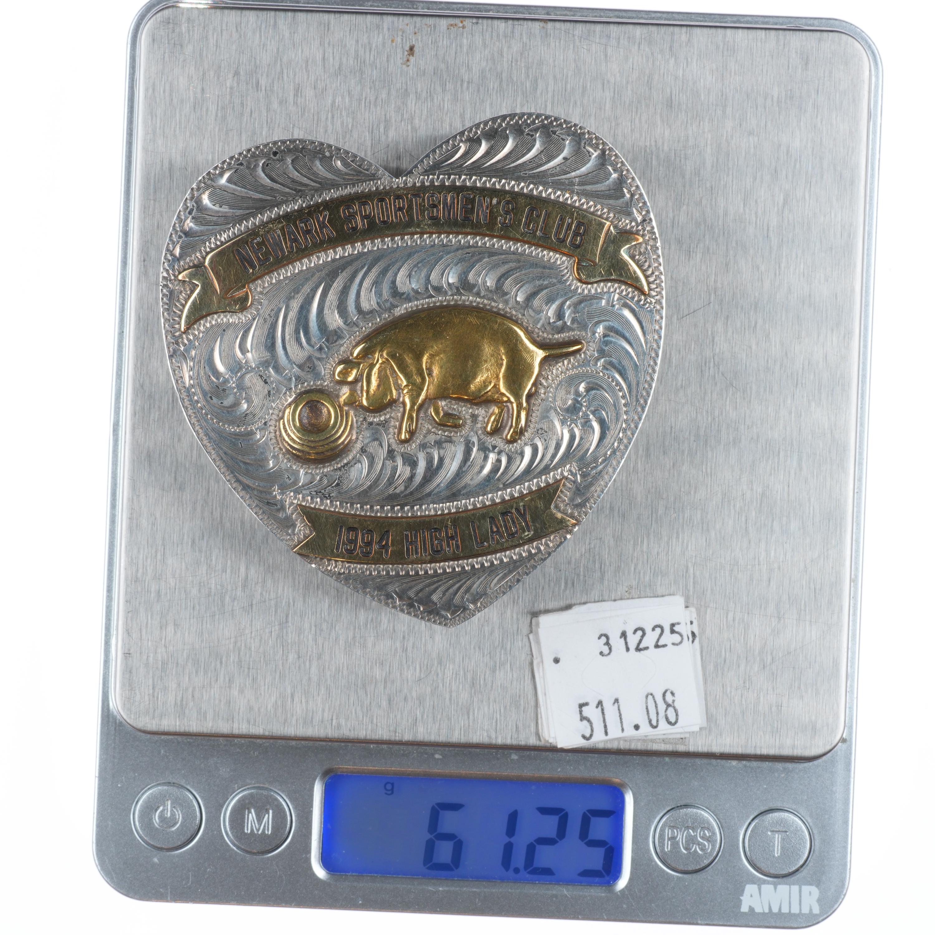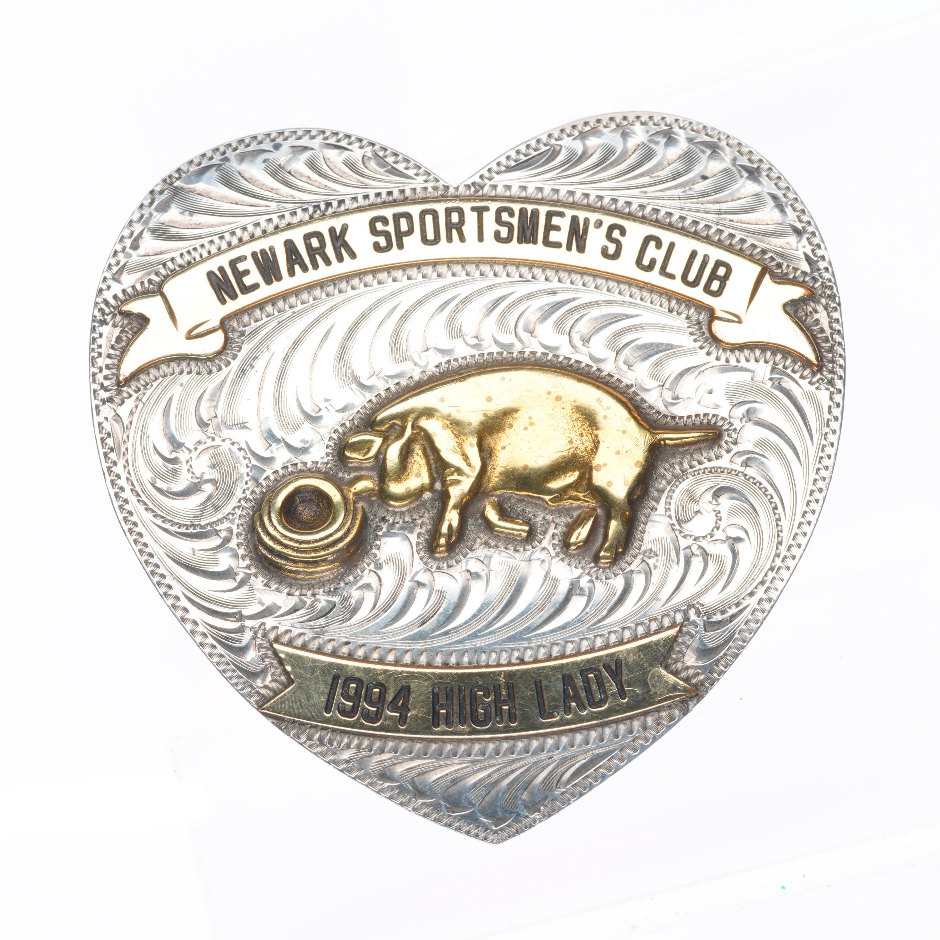 Sterling silver Reno Nevada 1994 High Lady Pig belt buckle Newark Sportmens club