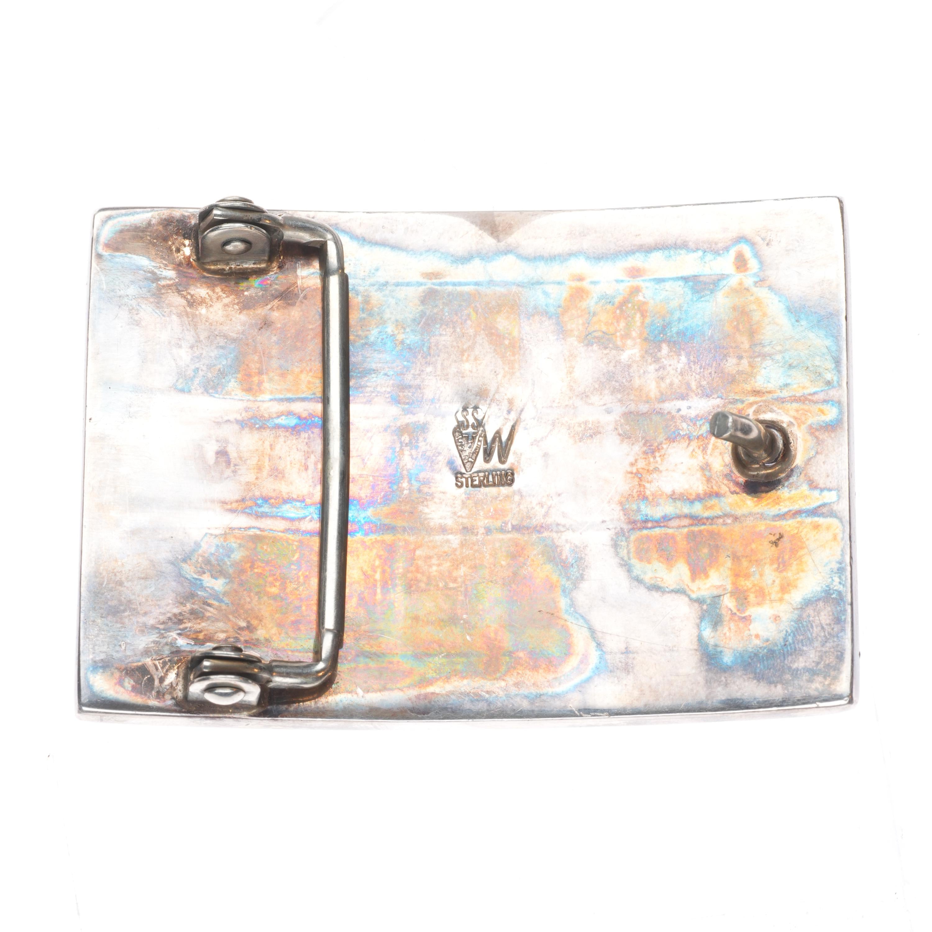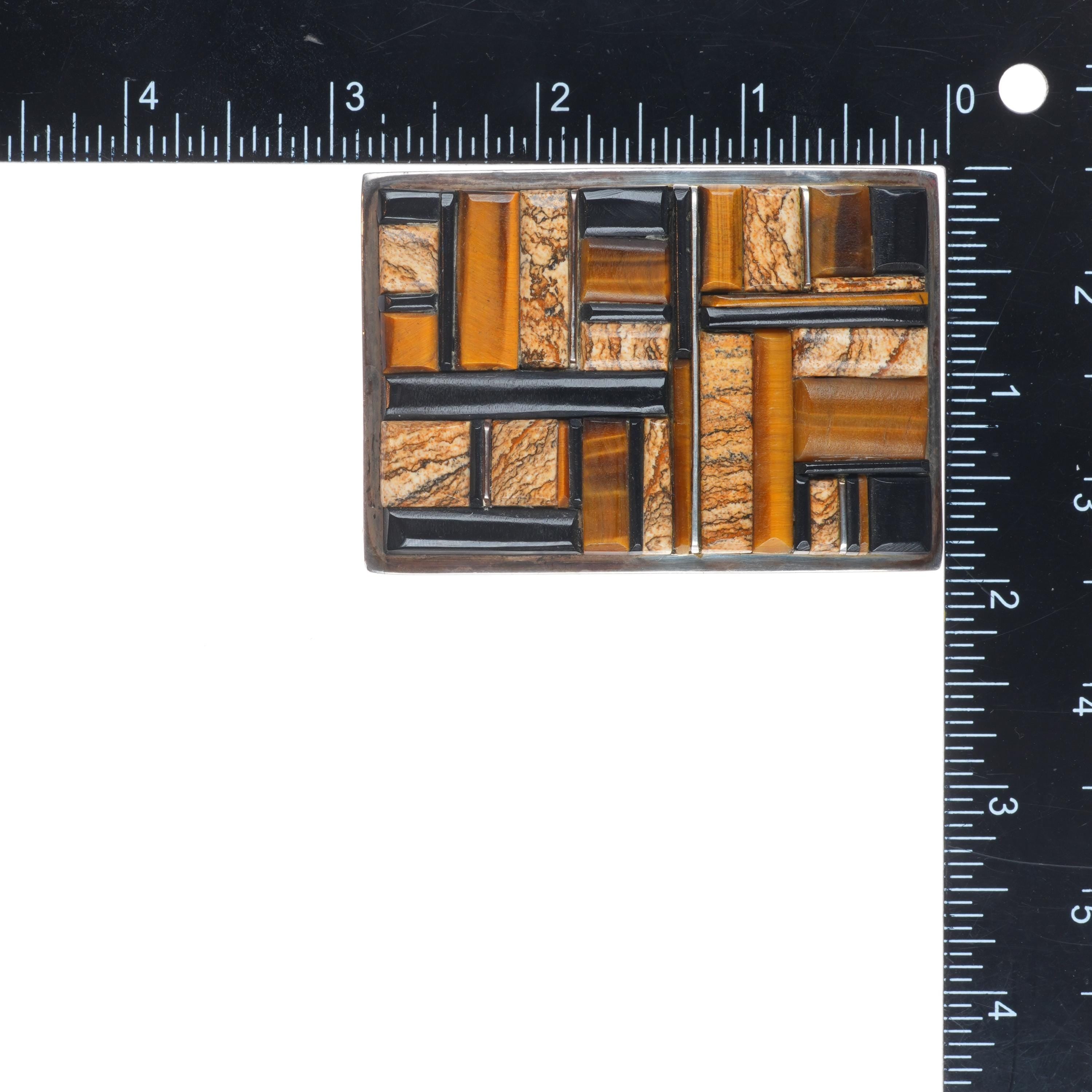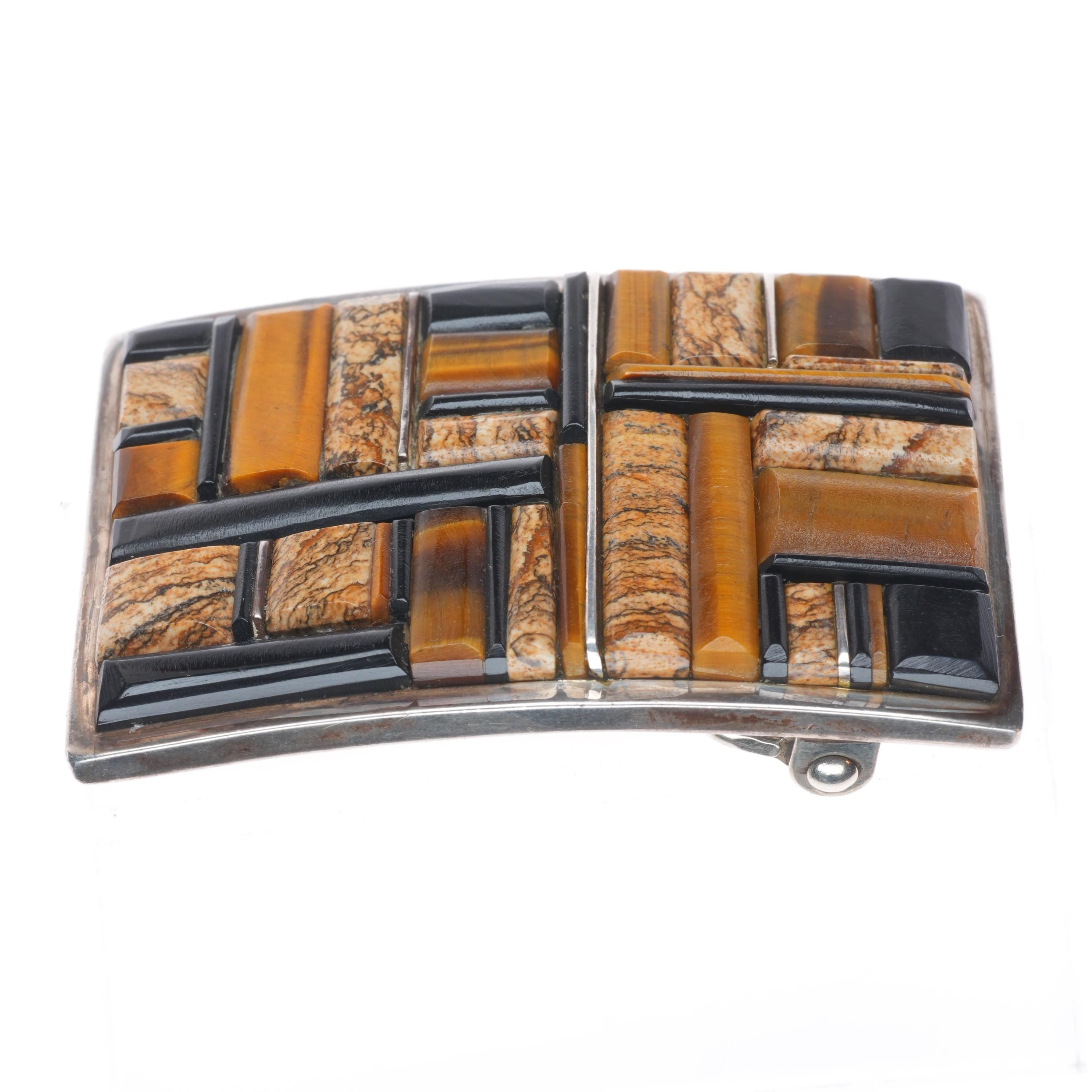 Supersmiths Navajo Black Jade, Tiger's Eye, Petrified wood sterling belt buckle