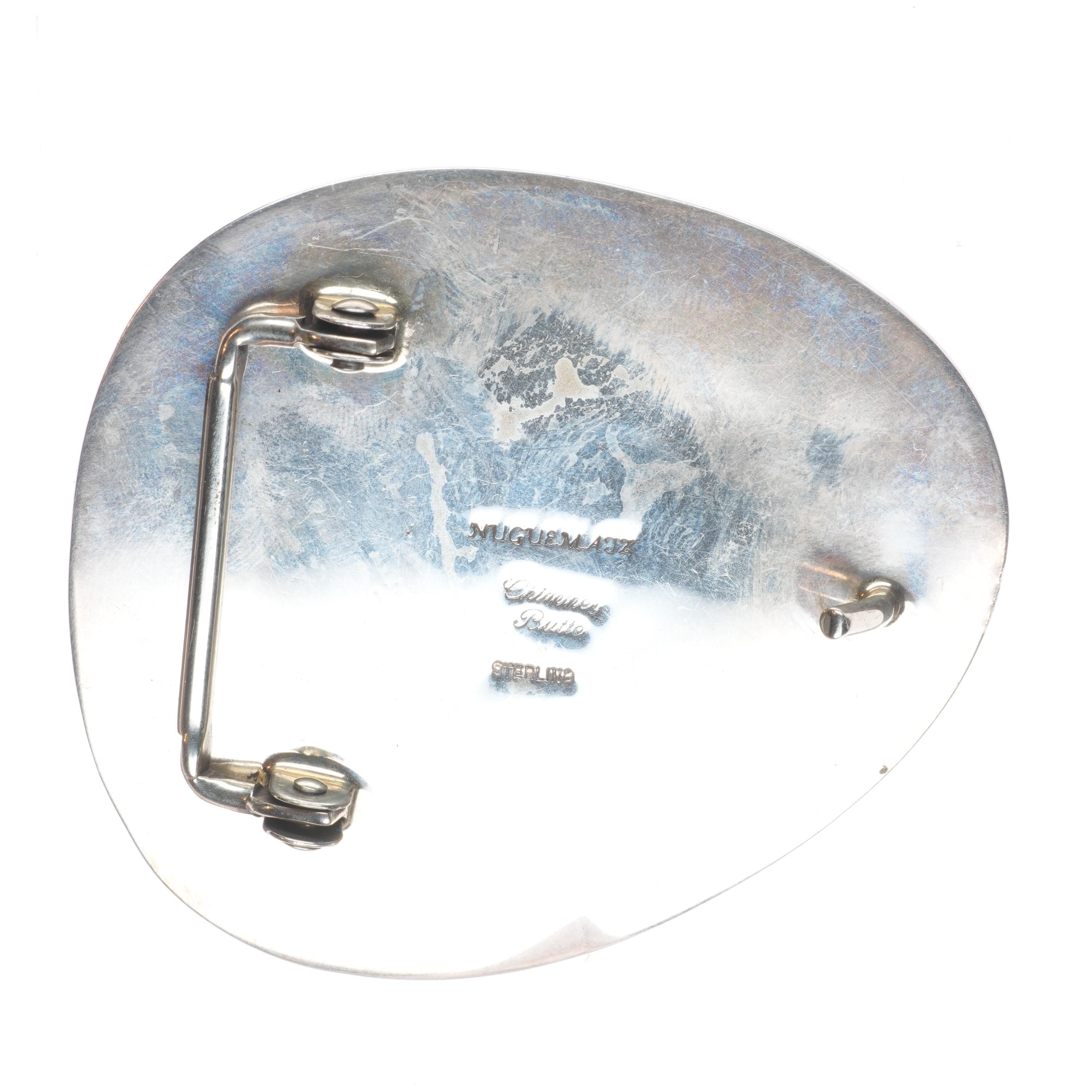 Sylvia Nuguematz Navajo for Chimney Butte Sterling silver Royston turquoise belt buckle Tested and guaranteed solid sterling silver. Weight and measurements in pictures, circa last quarter of the 20th century. Fits a 1.25" belt.