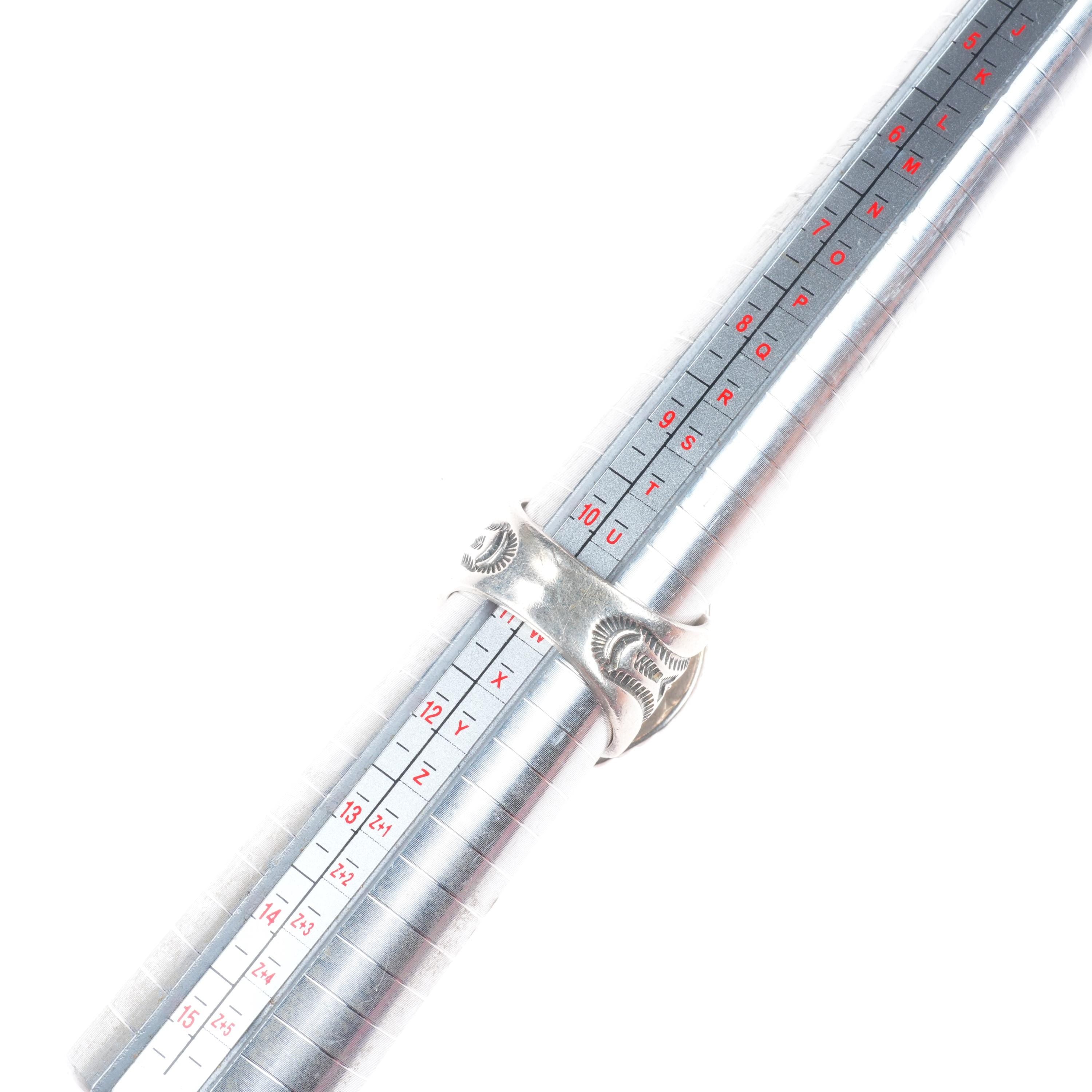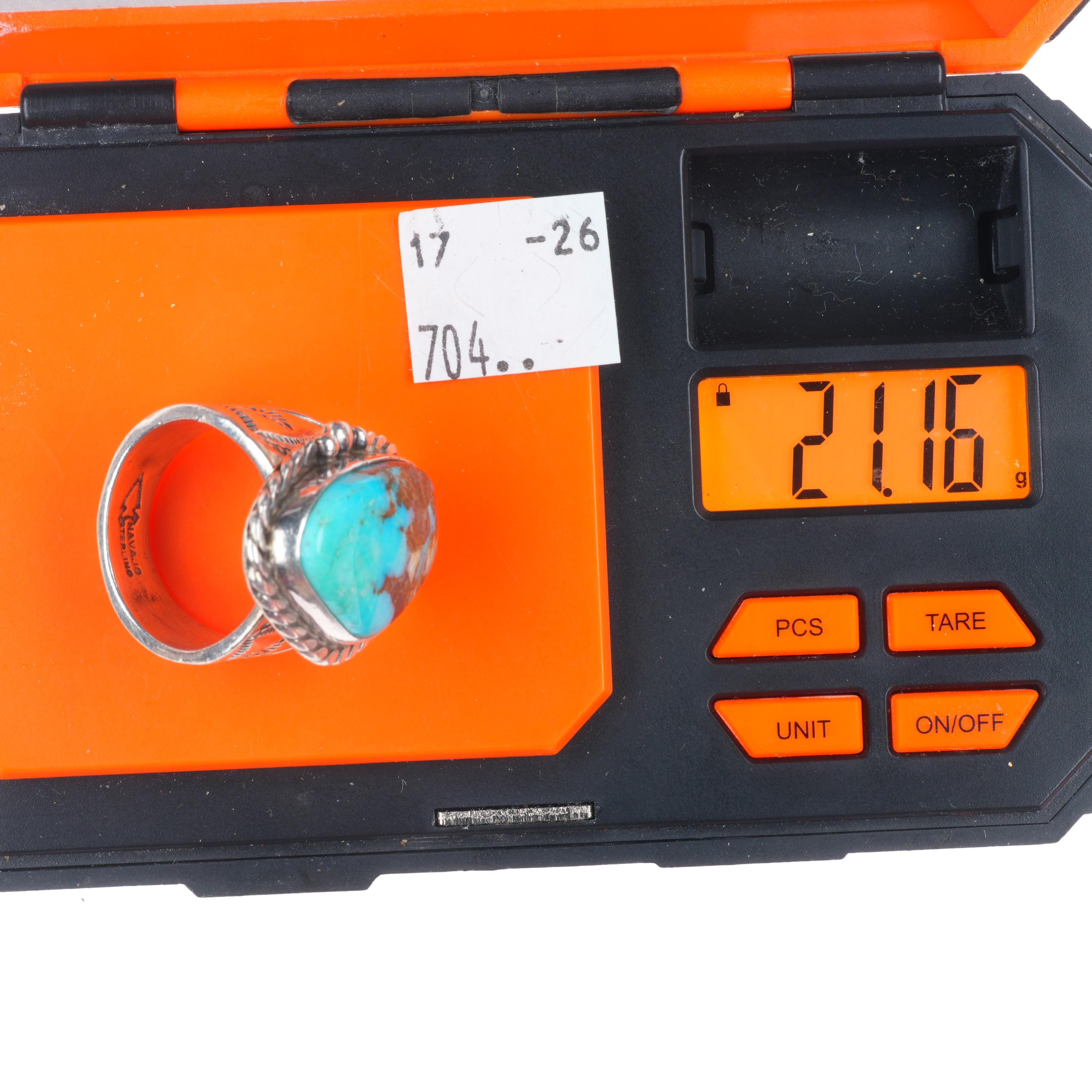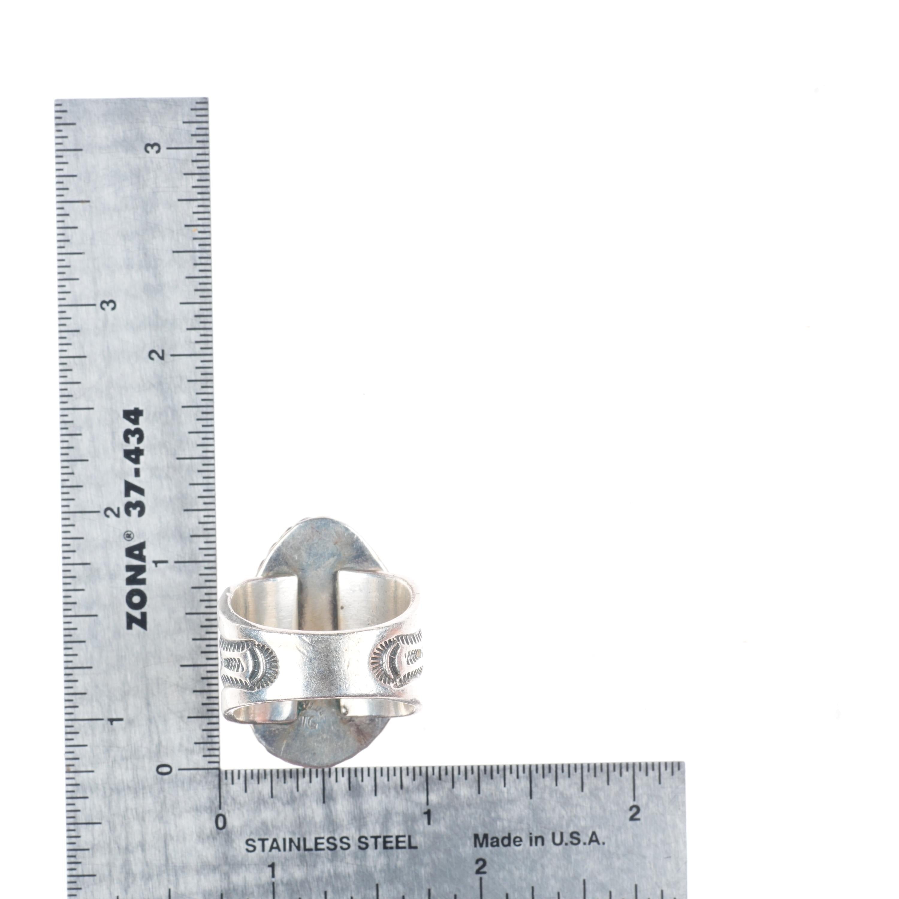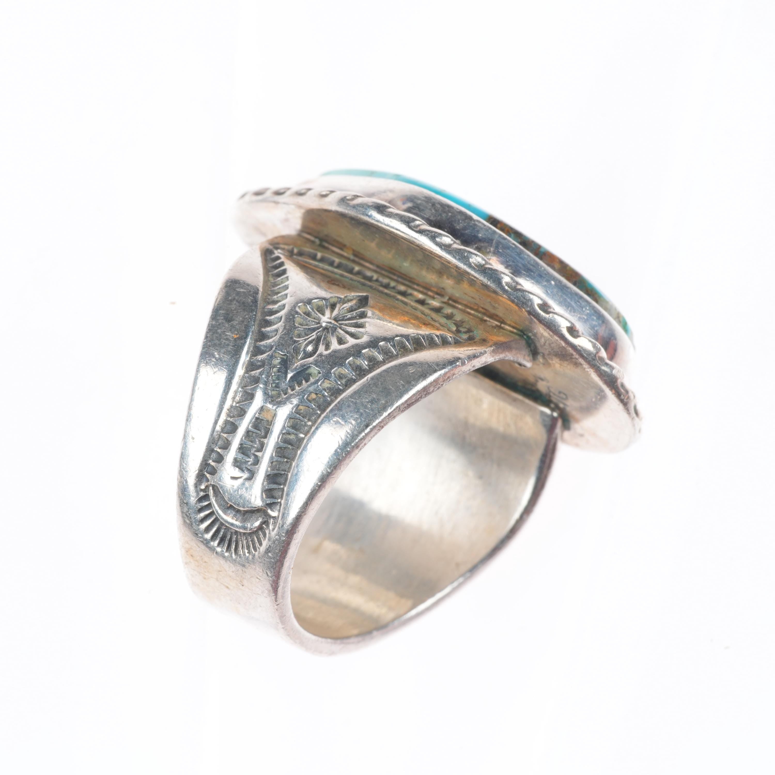 sz11 Jim Williams/Tony Garcia Navajo sterling silver Royston turquoise ring. Tested and guaranteed solid sterling silver, circa last quarter of the 20th century. Some expected wear, weight and measurements in pictures. Shank marked with Jim Williams' Navajo hallmark, Top under bezel marked by Tony Garcia Navajo.