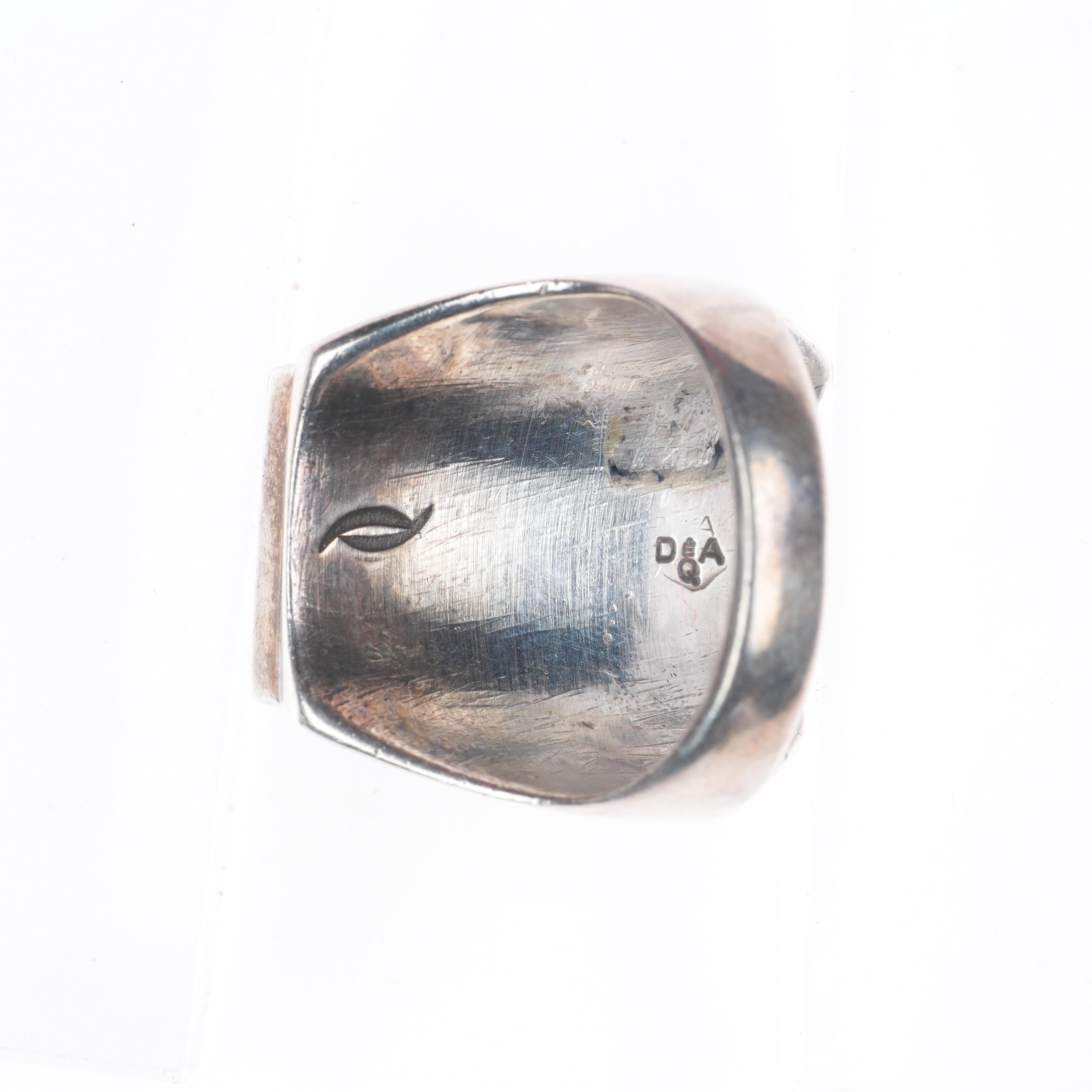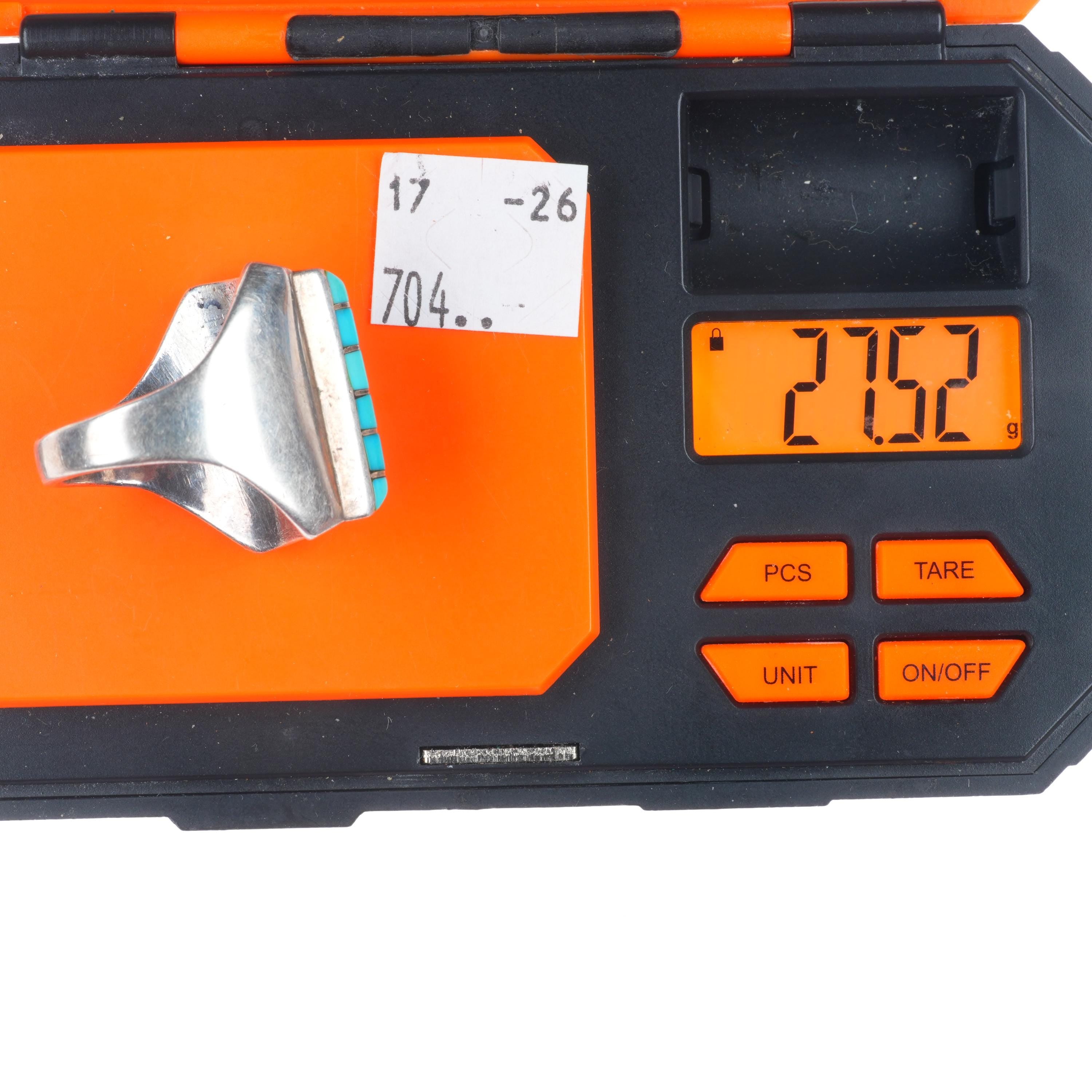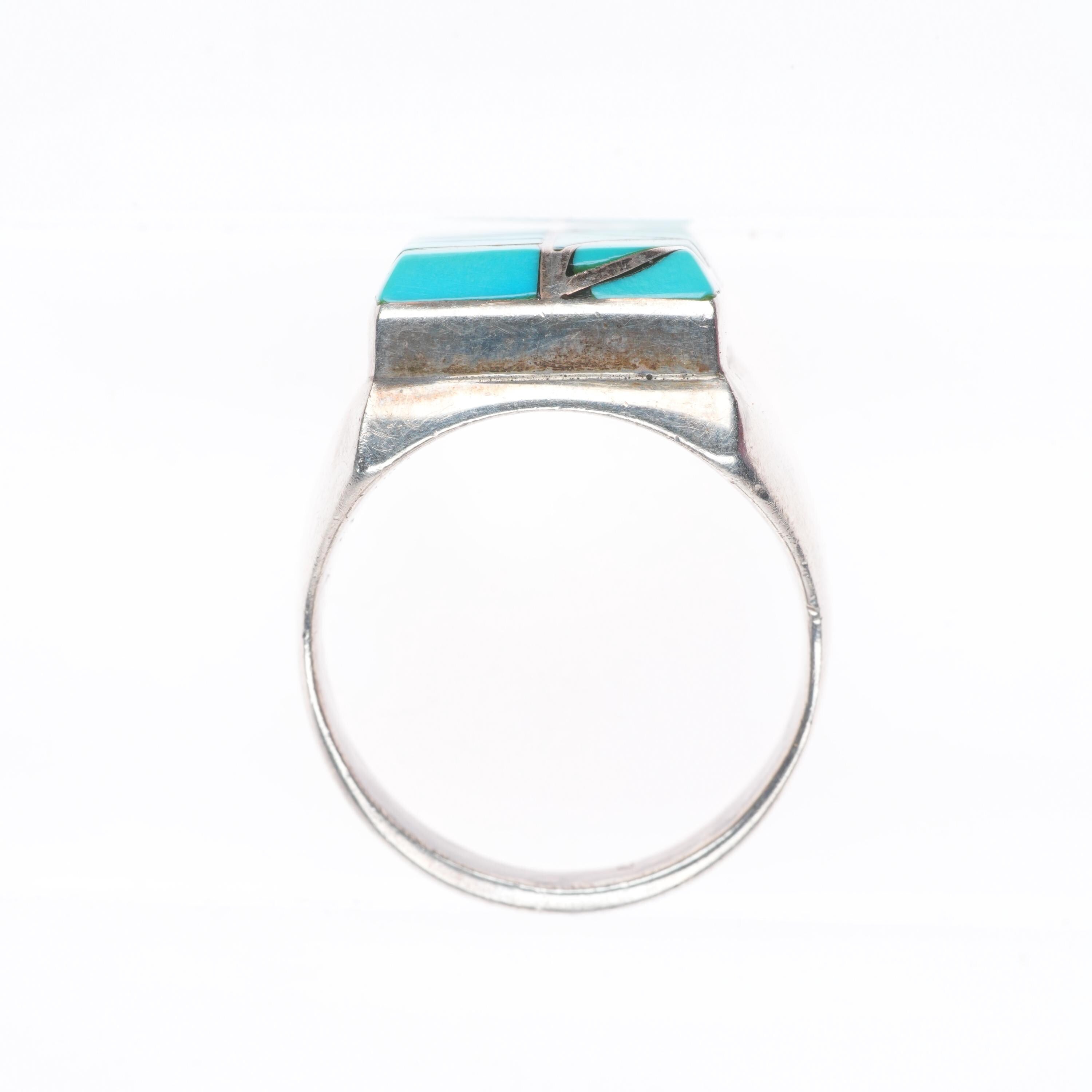 sz12 Heavy Vintage Dickie & Amy Quandelacy sterling silver inlay turquoise ring. Tested and guaranteed solid sterling silver, circa third quarter of the 20th century. Some expected wear, weight and measurements in pictures.