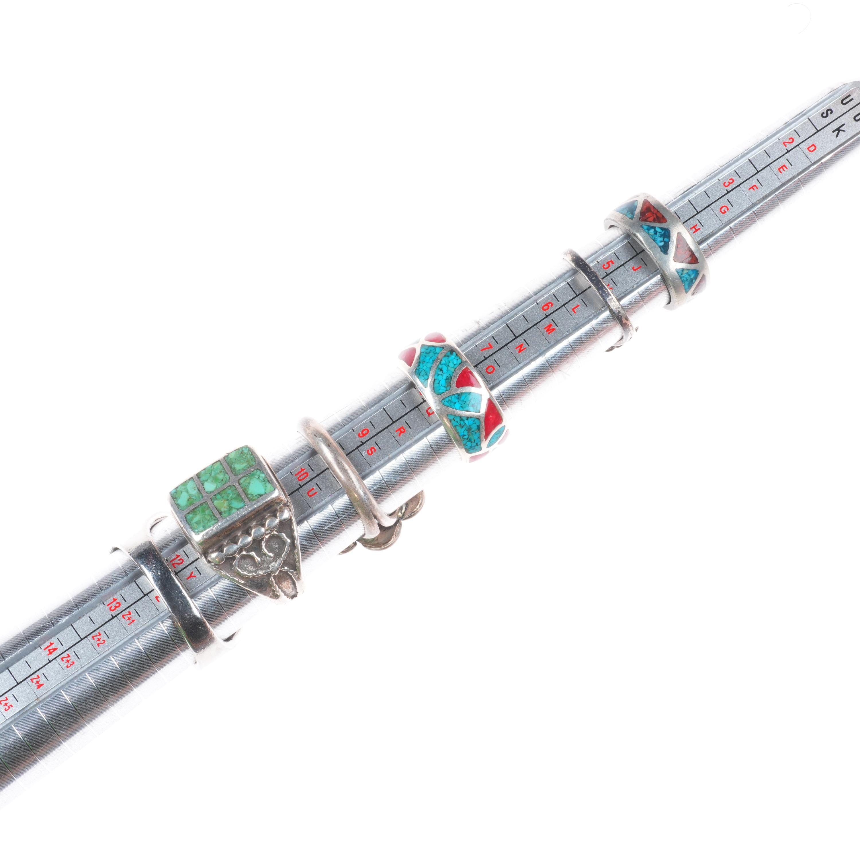 sz3-12 vintage Navajo/Zuni/southwestern style sterling silver turquoise ring lot. Nice ring lot from the last half of the 20th century.