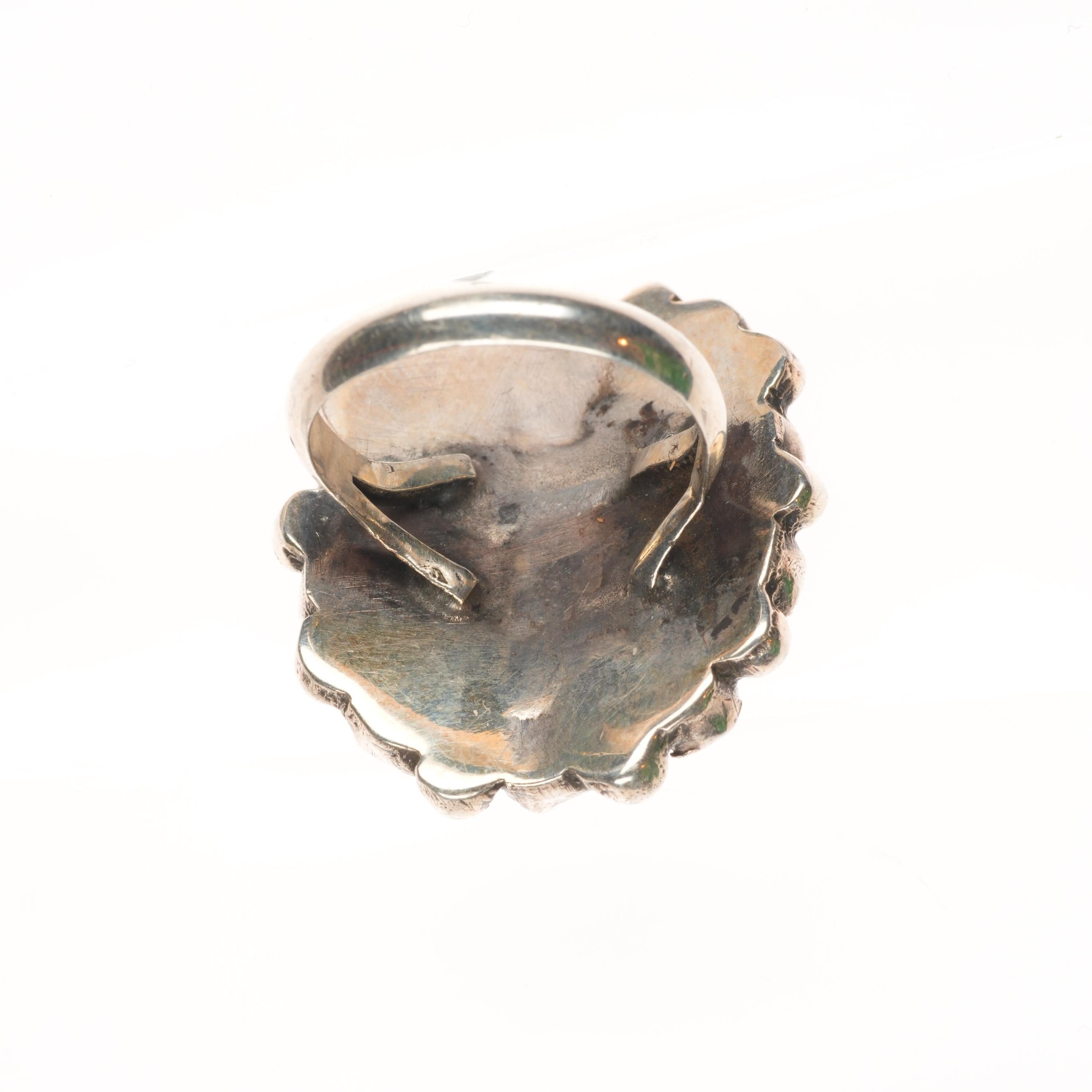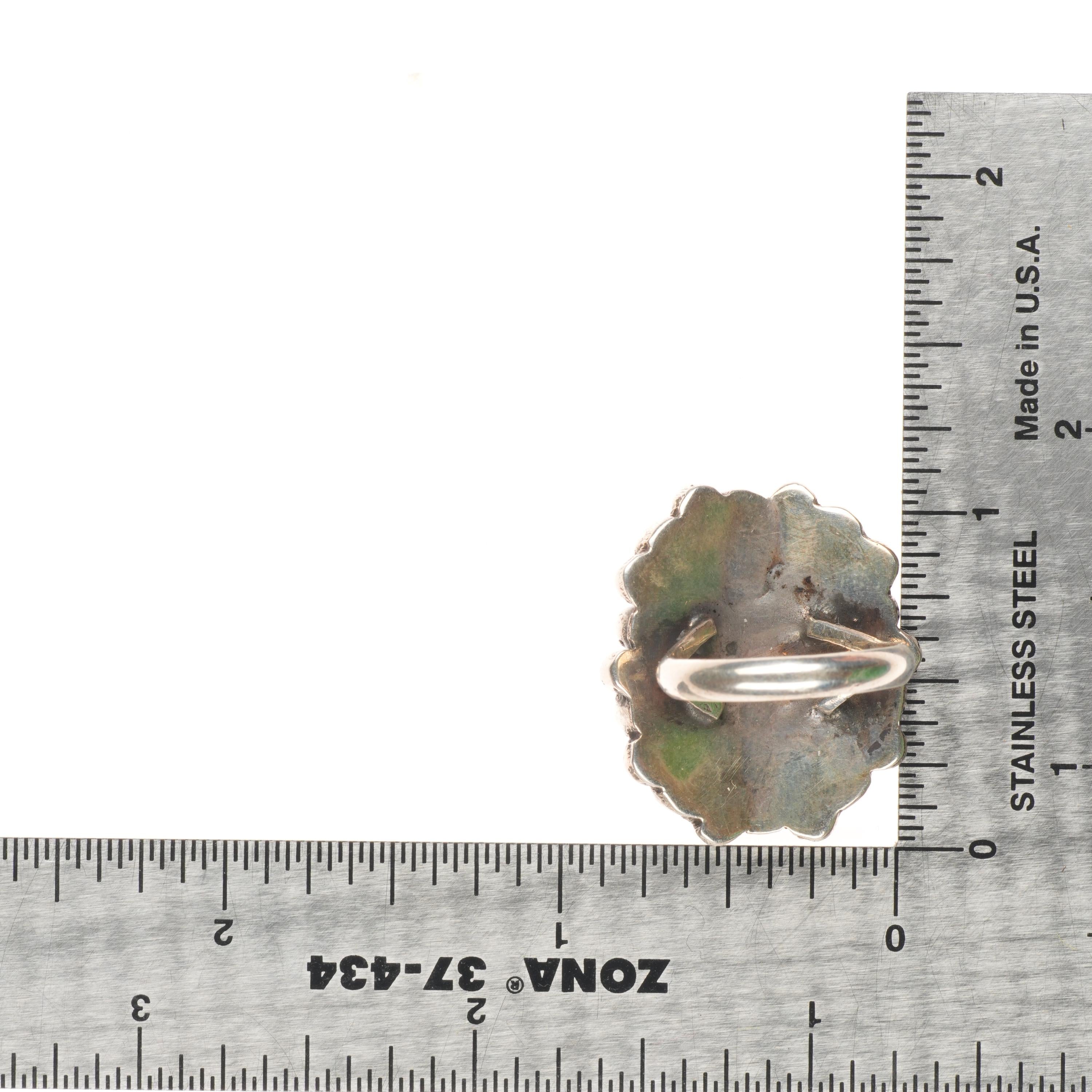 sz6.5 Vintage Zuni natural turquoise cluster ring sterling silver 40's-50's
