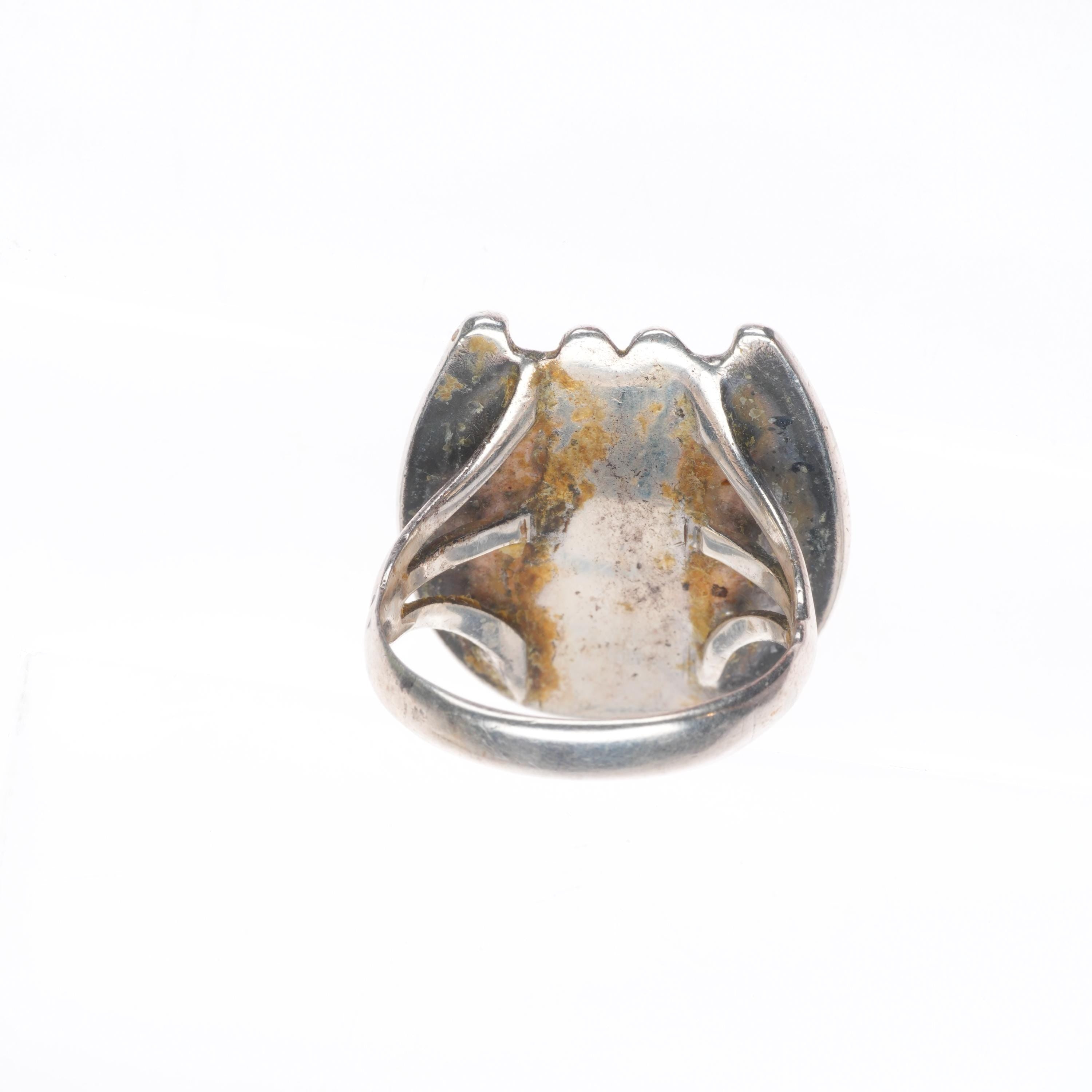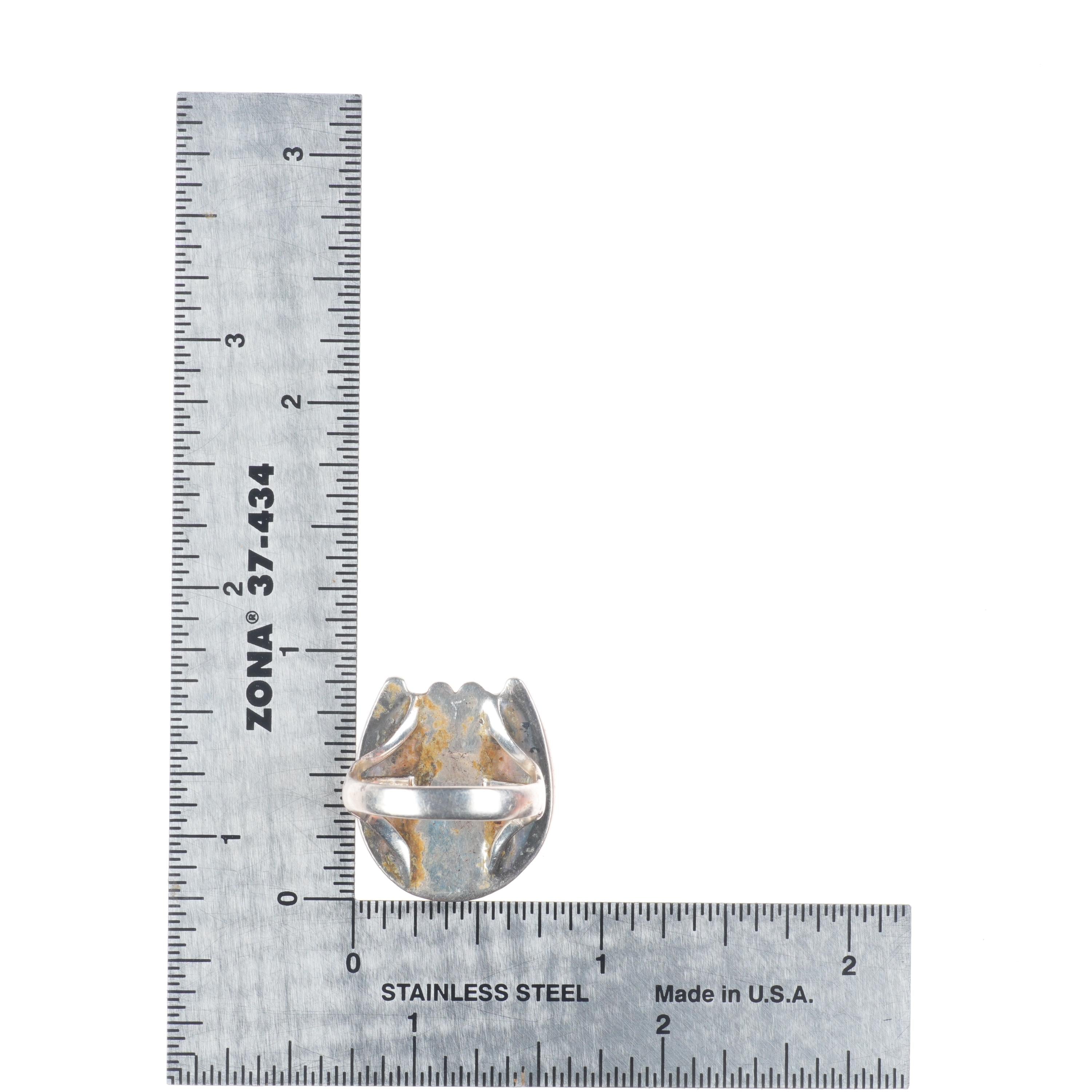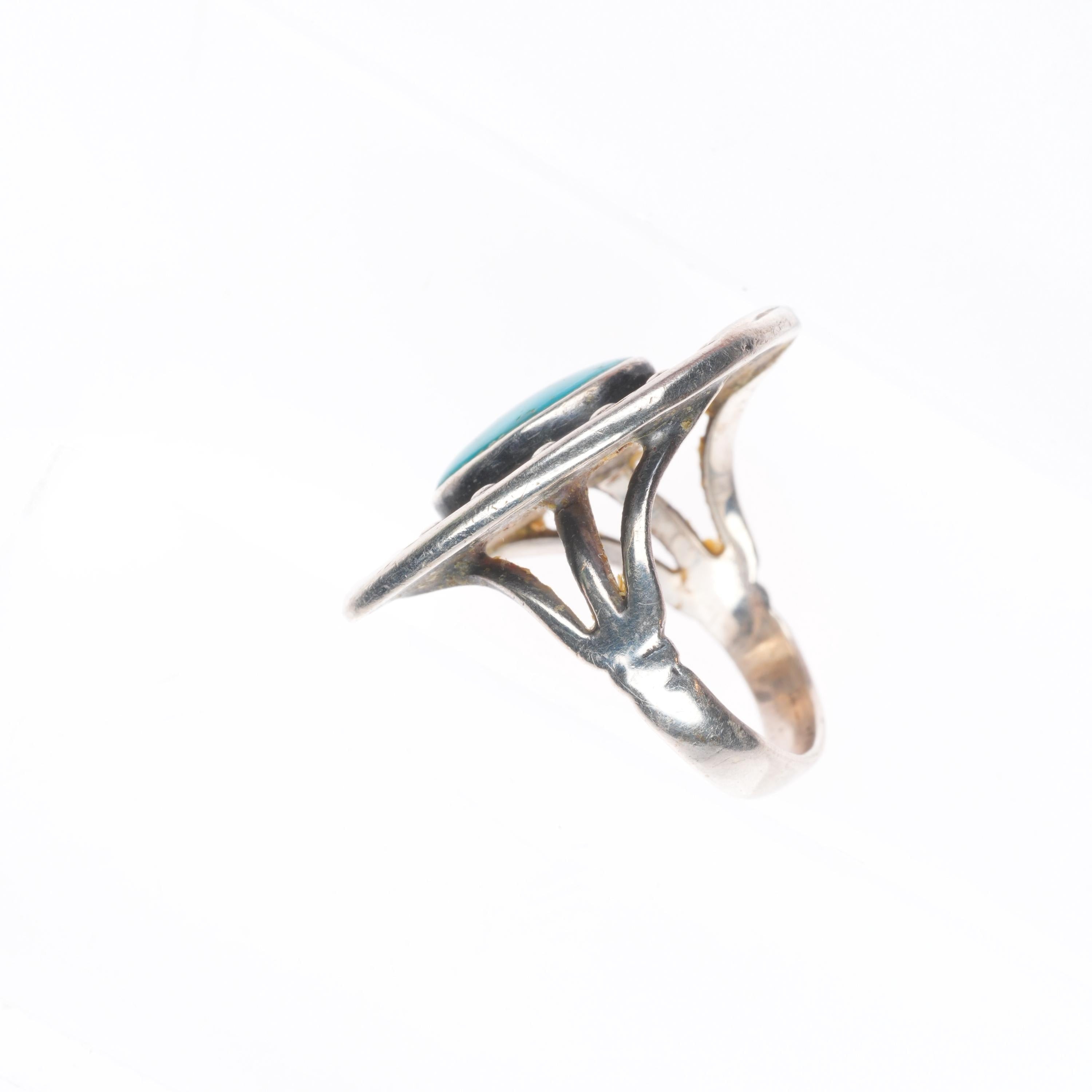 sz6 Vintage Navajo sterling silver horseshoe ring with nice turquoise