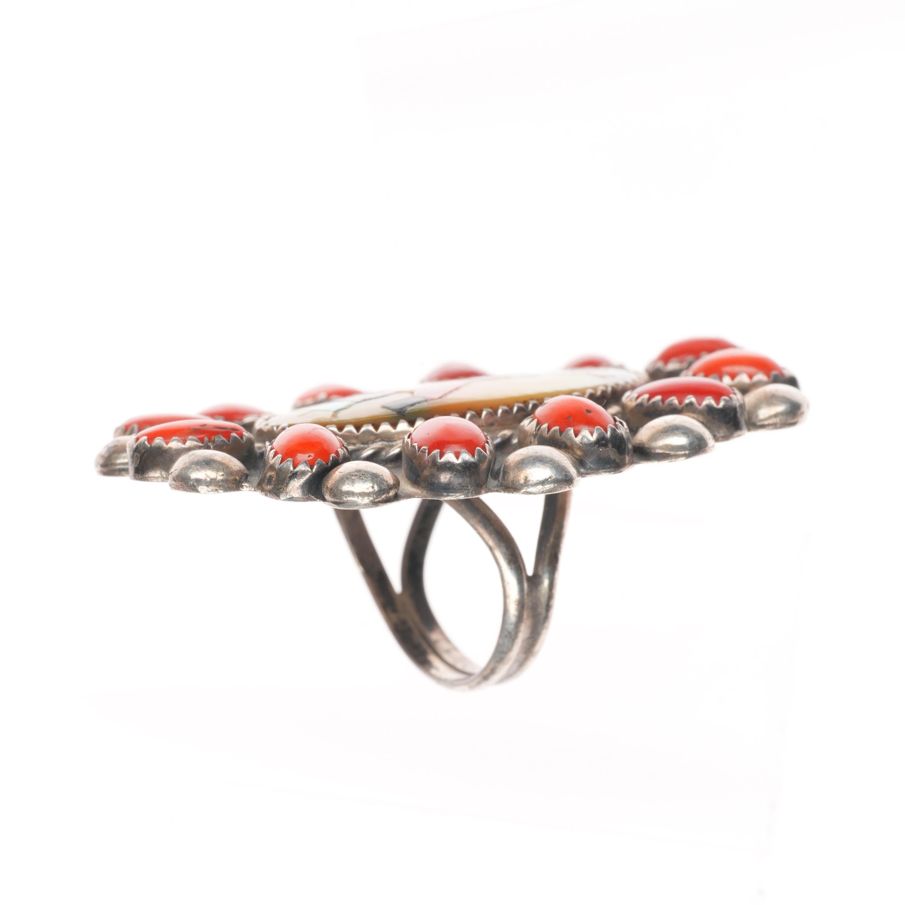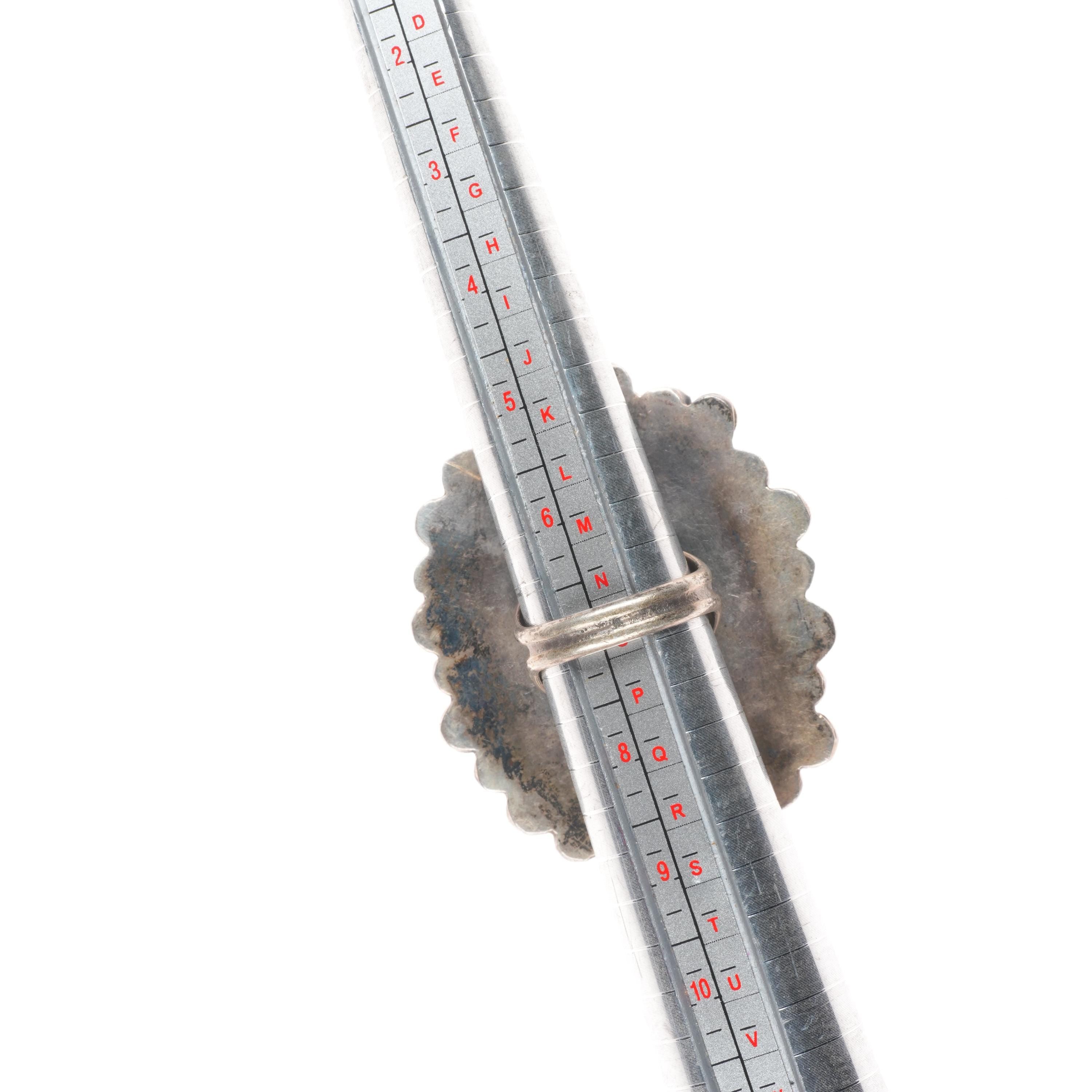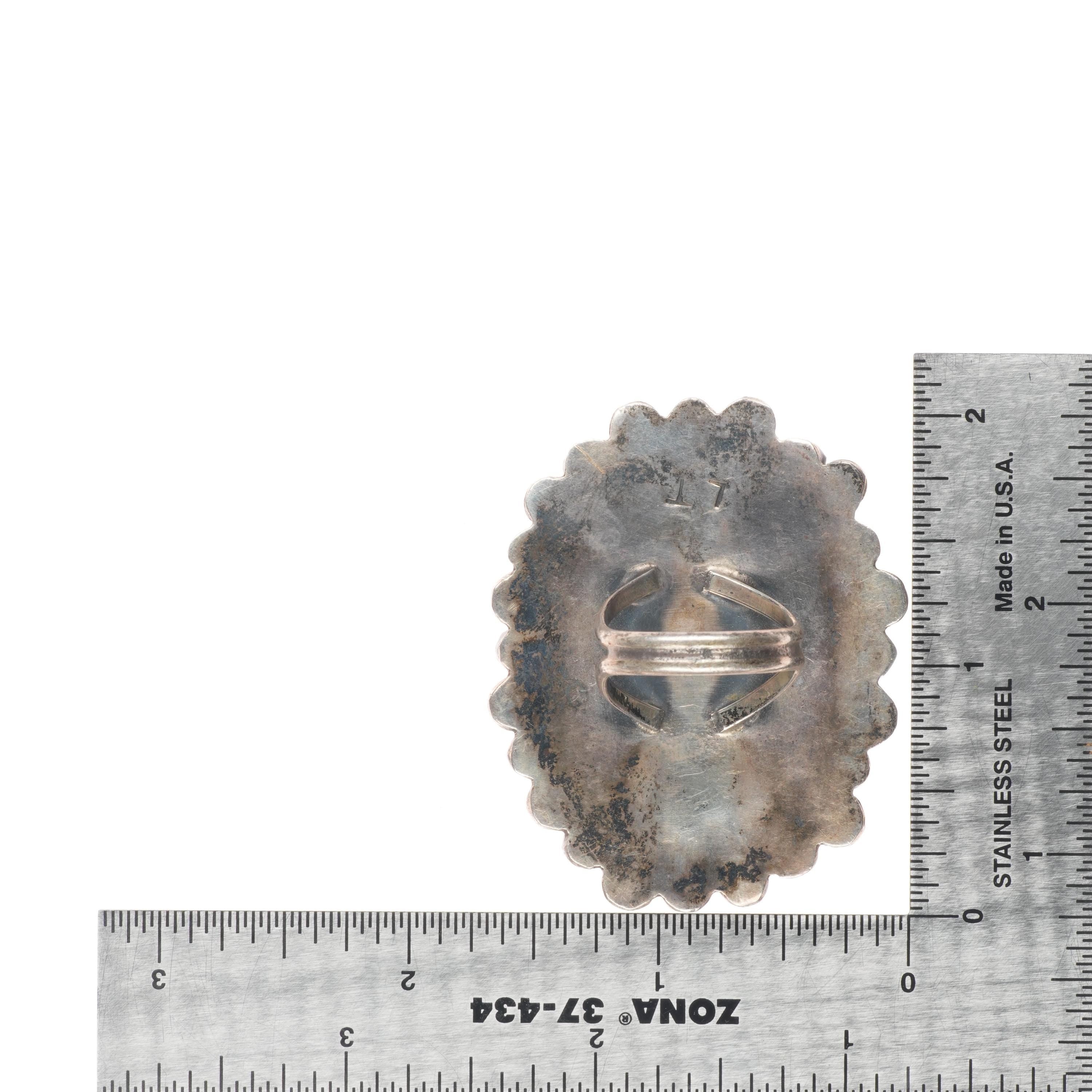 sz7 Vintage Zuni sterling silver Ghan Dancer turquoise cluster ring LT