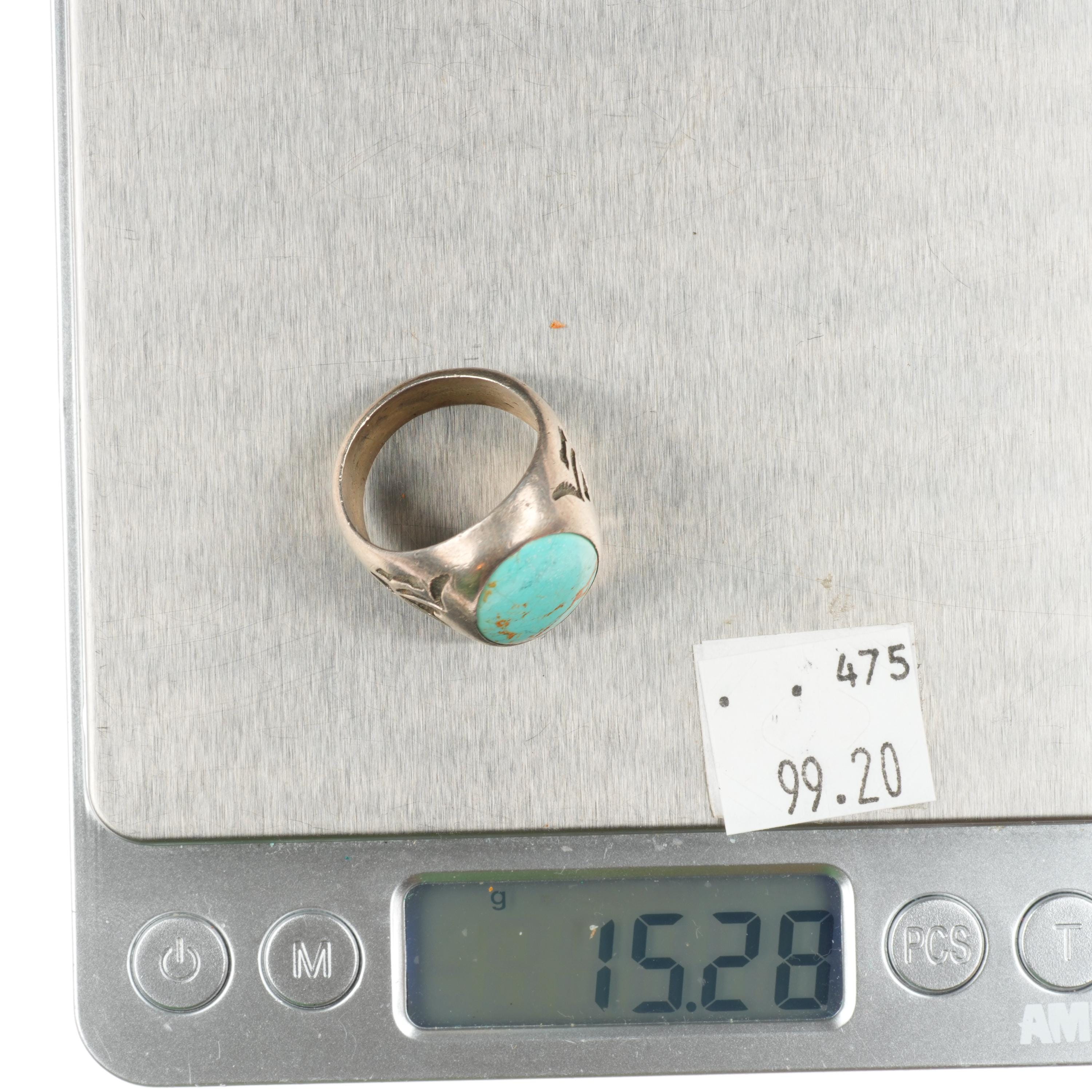 sz8.75 Vintage Bell Trading Post sterling silver turquoise Navajo stamped ring. Tested and guaranteed solid sterling silver. Nice ring from the third quarter of the 20th century. Some expected wear, weight and measurements in pictures.