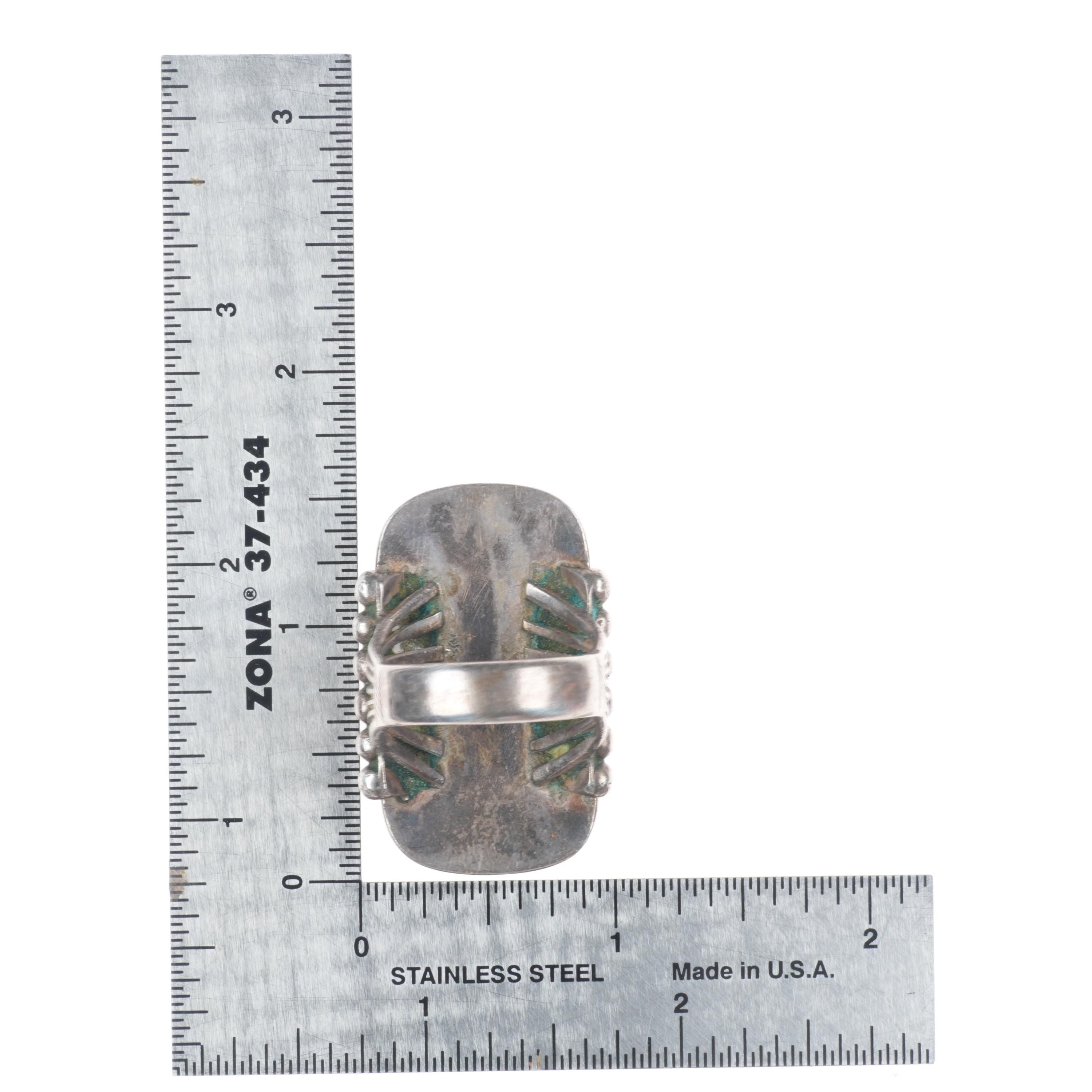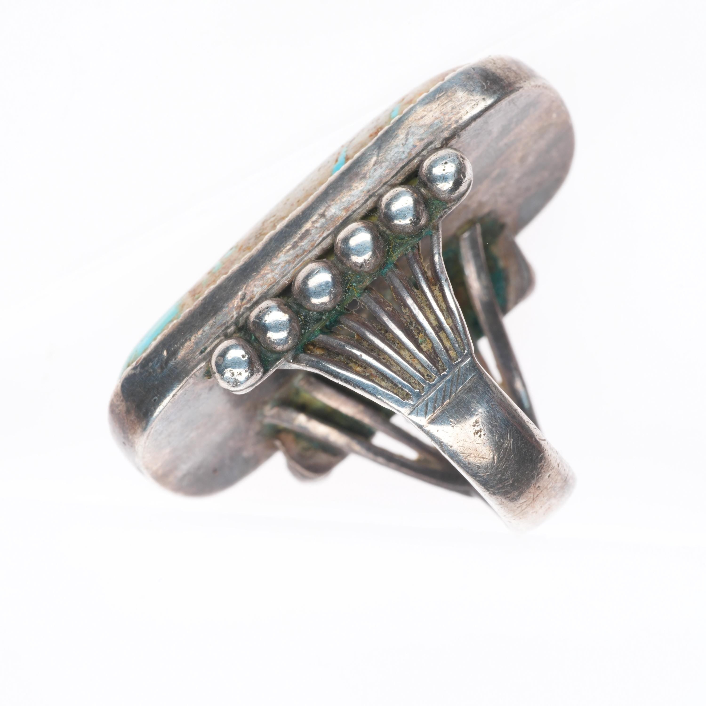 sz9 Big vintage c1940's Navajo sterling silver boulder turquoise large ring. Tested and guaranteed solid sterling silver, circa second quarter of the 20th century. Some expected wear, weight and measurements in pictures.