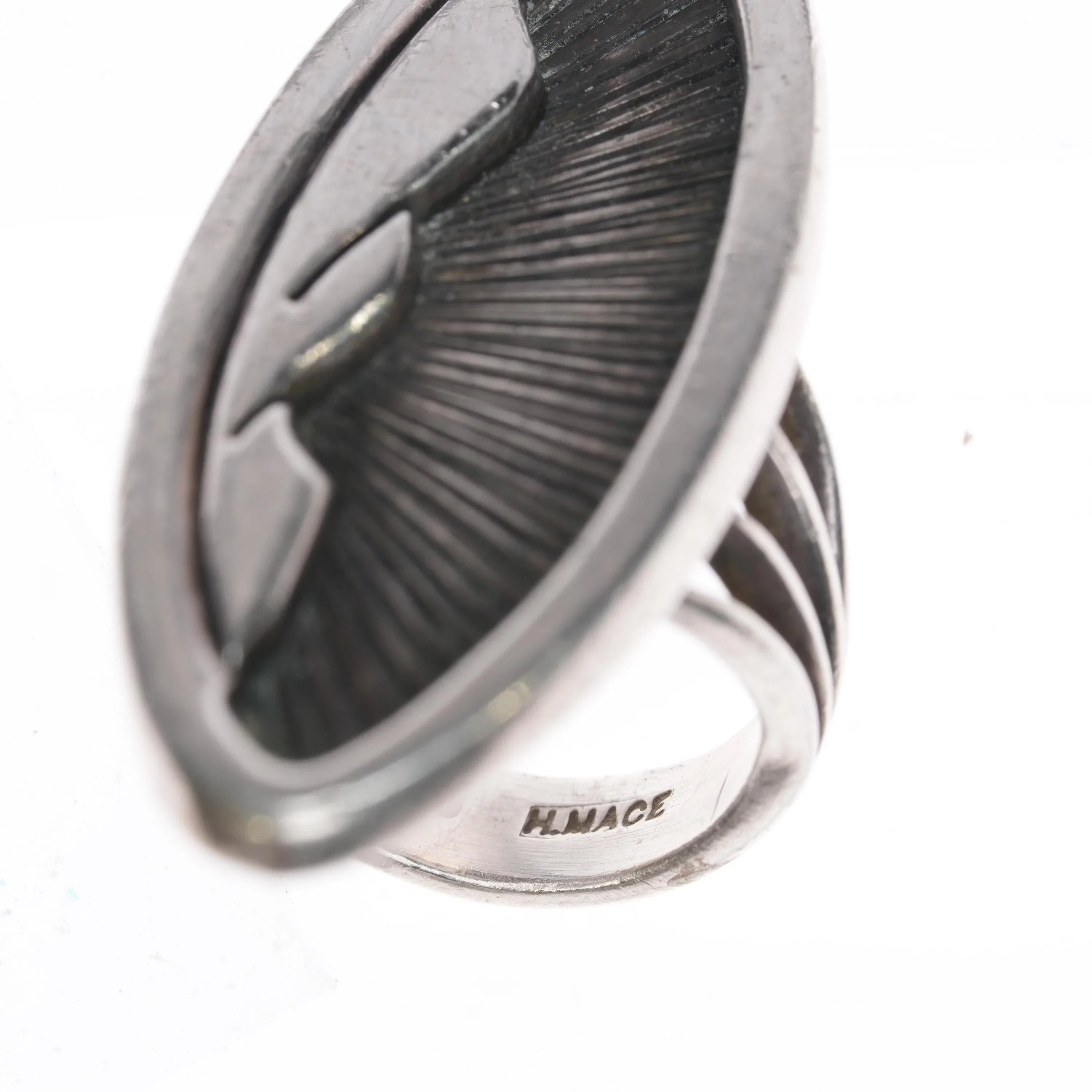 sz9 Harvey Mace Navajo silver ring. Solid sterling silver, weight and measurements in pictures. Vintage or pre-owned item in good condition with some expected wear as shown in the pictures. Items with significant wear are not offered by me online unless they are extremely old/rare and still desirable in that condition by collectors.